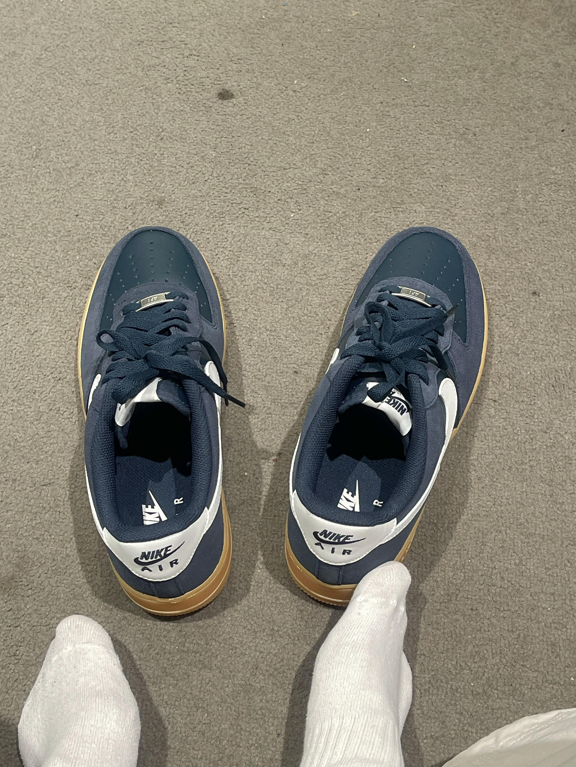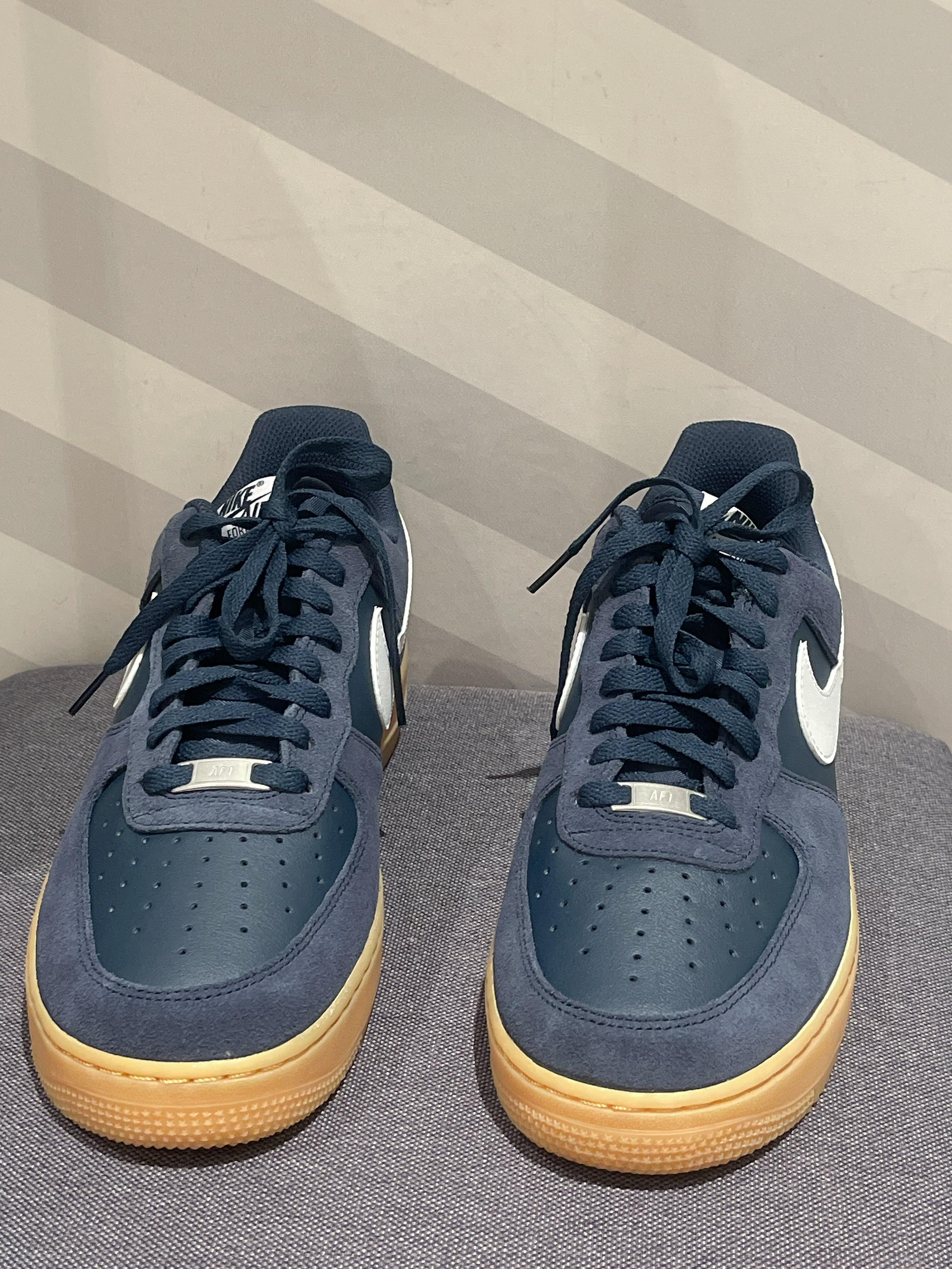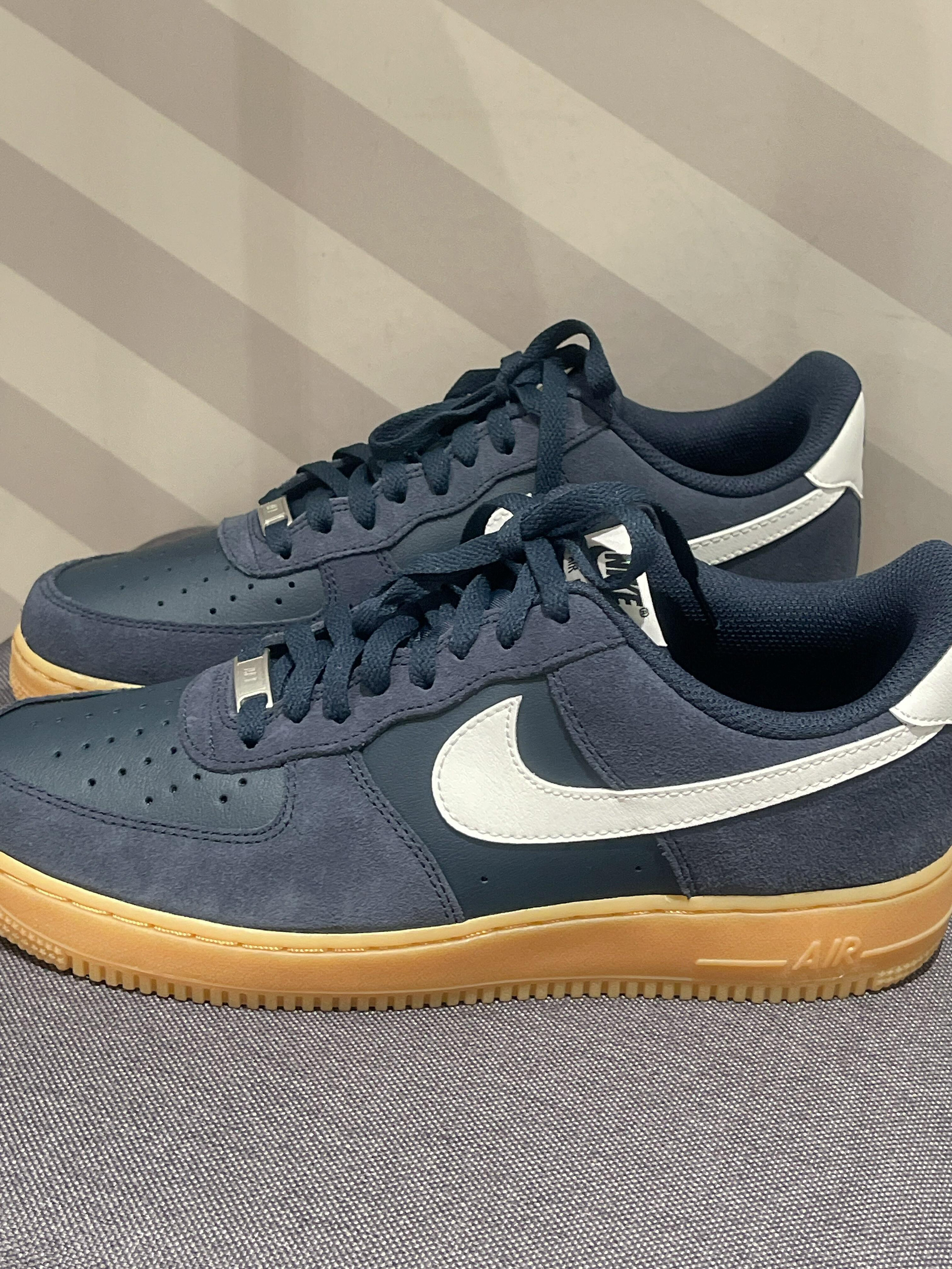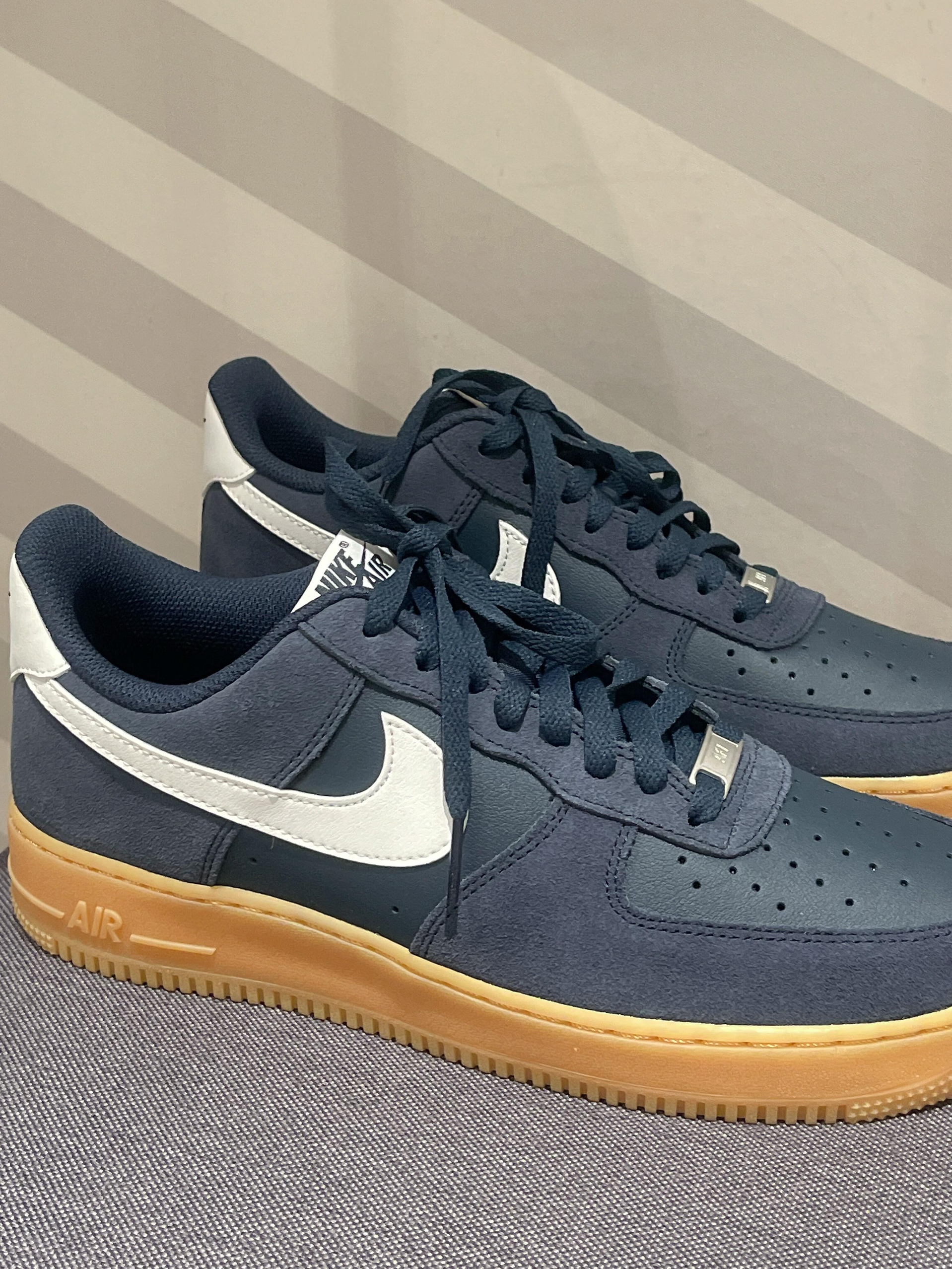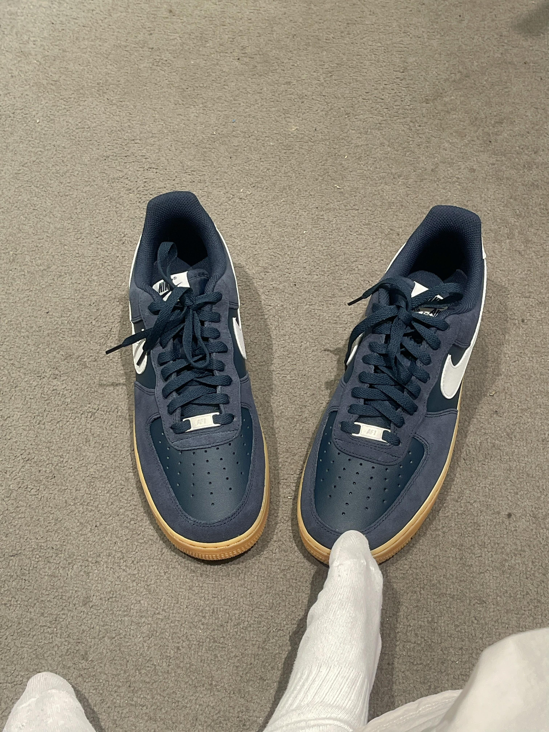 Nike Air Force 1舒适轻便防滑耐磨低帮板鞋男女同款蓝色藏蓝色麂皮和皮面,搭配姜黄橡胶底~复古又耐脏,尺码正常。