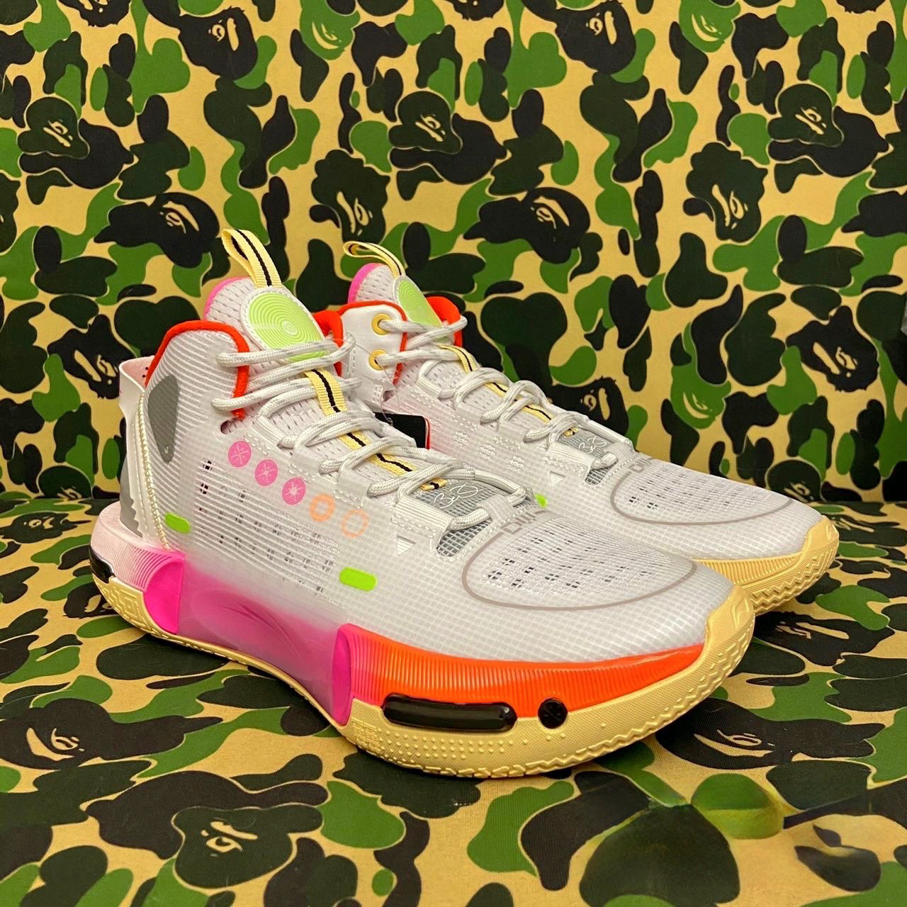 李宁 闪击11 磁场配色 鞋如其名,外形十分有速度感,超大的李宁logo占据了一整个鞋面超拉风。 配置方面专为突破性球员量身定制,鞋面采用了束紧环抱系统,更好的包裹前后掌和足弓。 终极的设计进一步升级,首先是一整块全掌内置䨻科技,外面在由全掌LIGHT FOAM PLUS做为框架包裹。最外层是360度环绕式PROBAR LOC+HEEL LOC 科技的結合体。在后跟处又镶嵌了另外一块䨻科技。后掌双...