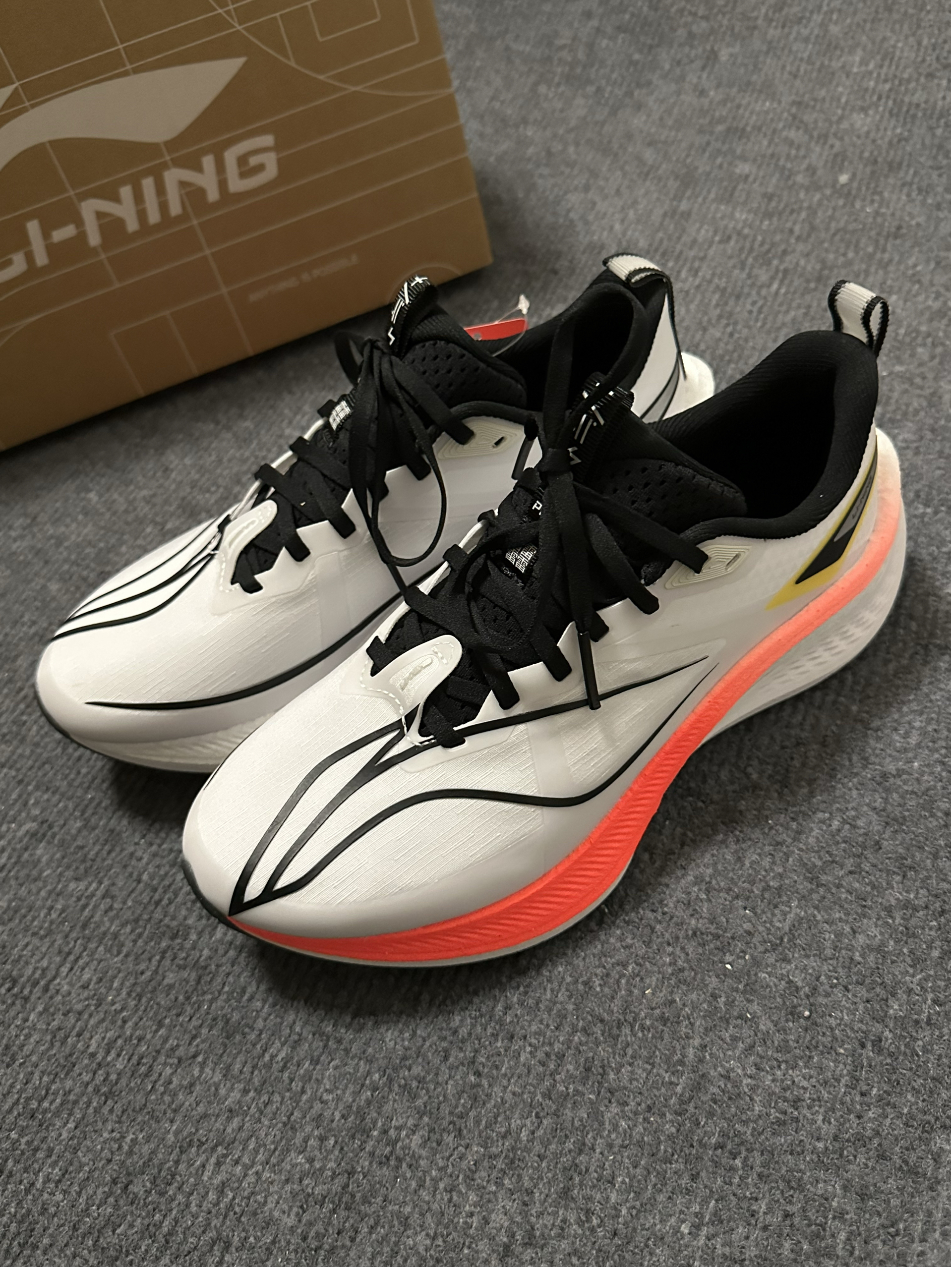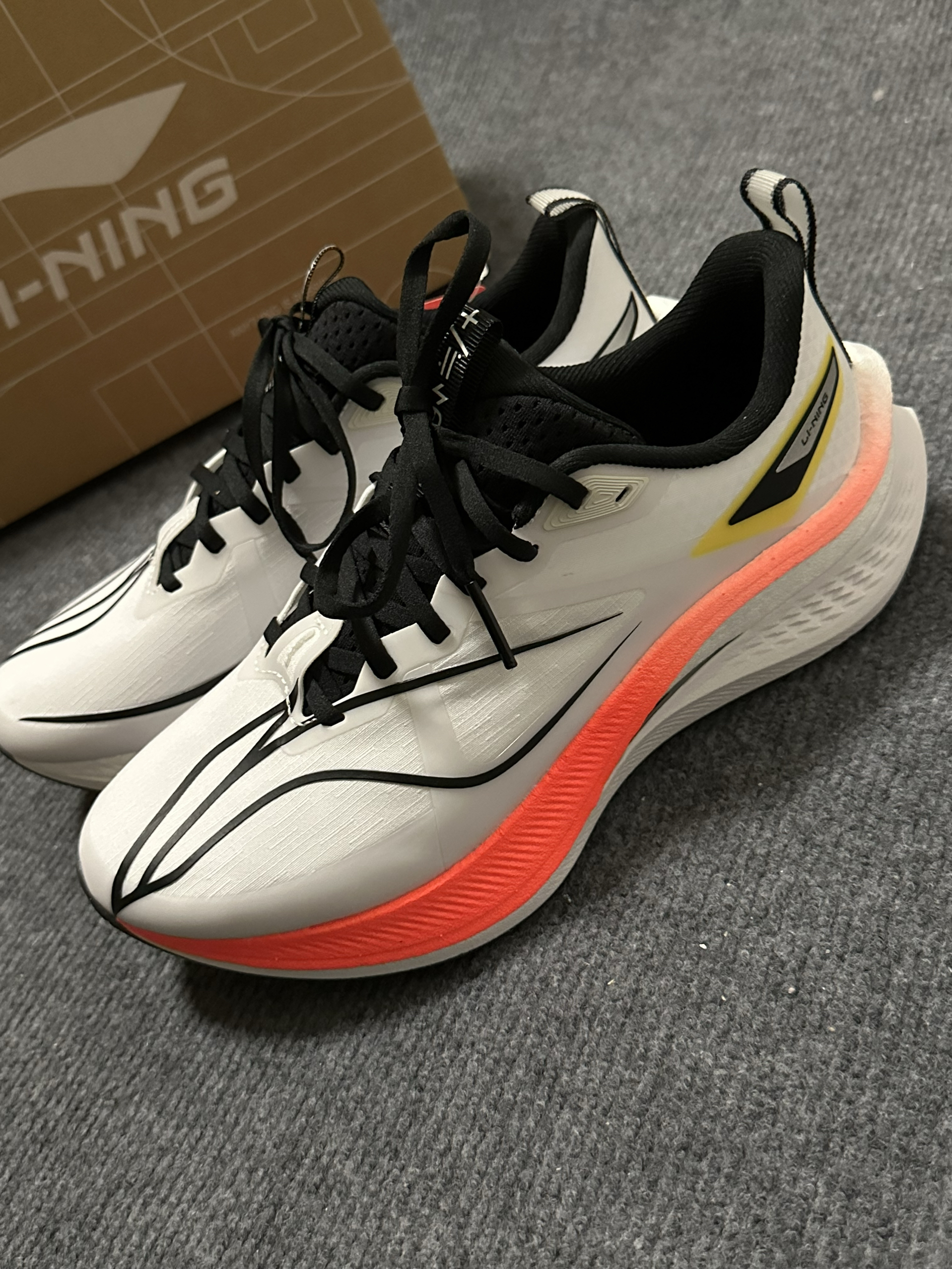 哈喽大家好!今天给大家分享一款竞速跑鞋! 说起李宁大家并不陌生 不管是销量还是性能方面都非常出色 䨻科技加持让运动更具活力 🌟🌟首先聊一聊它的舒适度❓ 上脚包裹性很好 缓震回弹效果显著 梭织鞋面不闷脚透气性较好 足弓支撑和脚掌的契合度也是相当贴合 尺码不偏正码正拍即可! 🌟🌟颜值与配色 配色上来说橙白色调活力感还是很足的 鞋身logo线条设计流畅大方略显飞驰感 个人还是很喜欢的🧡 宝子们喜欢的,又...