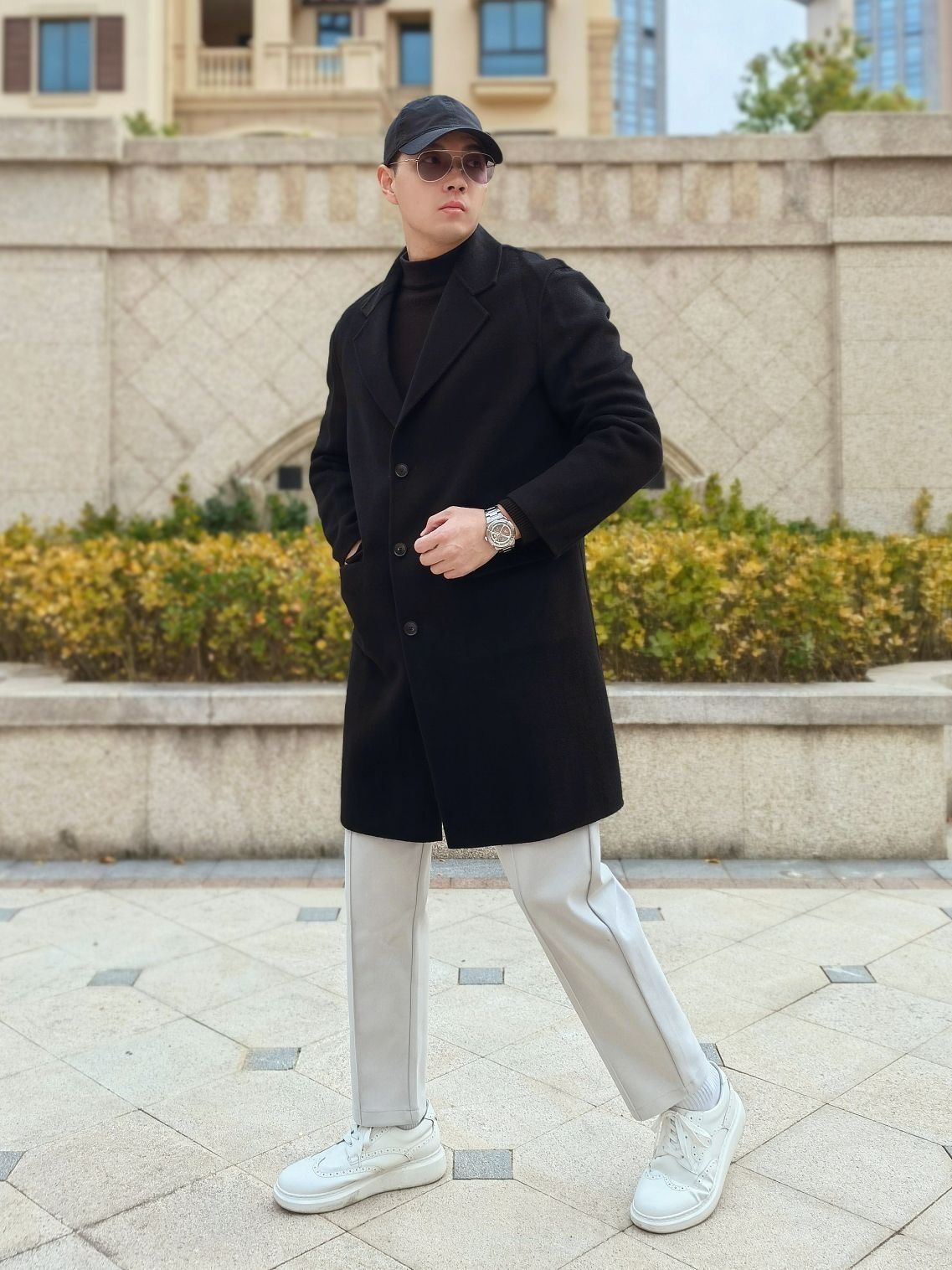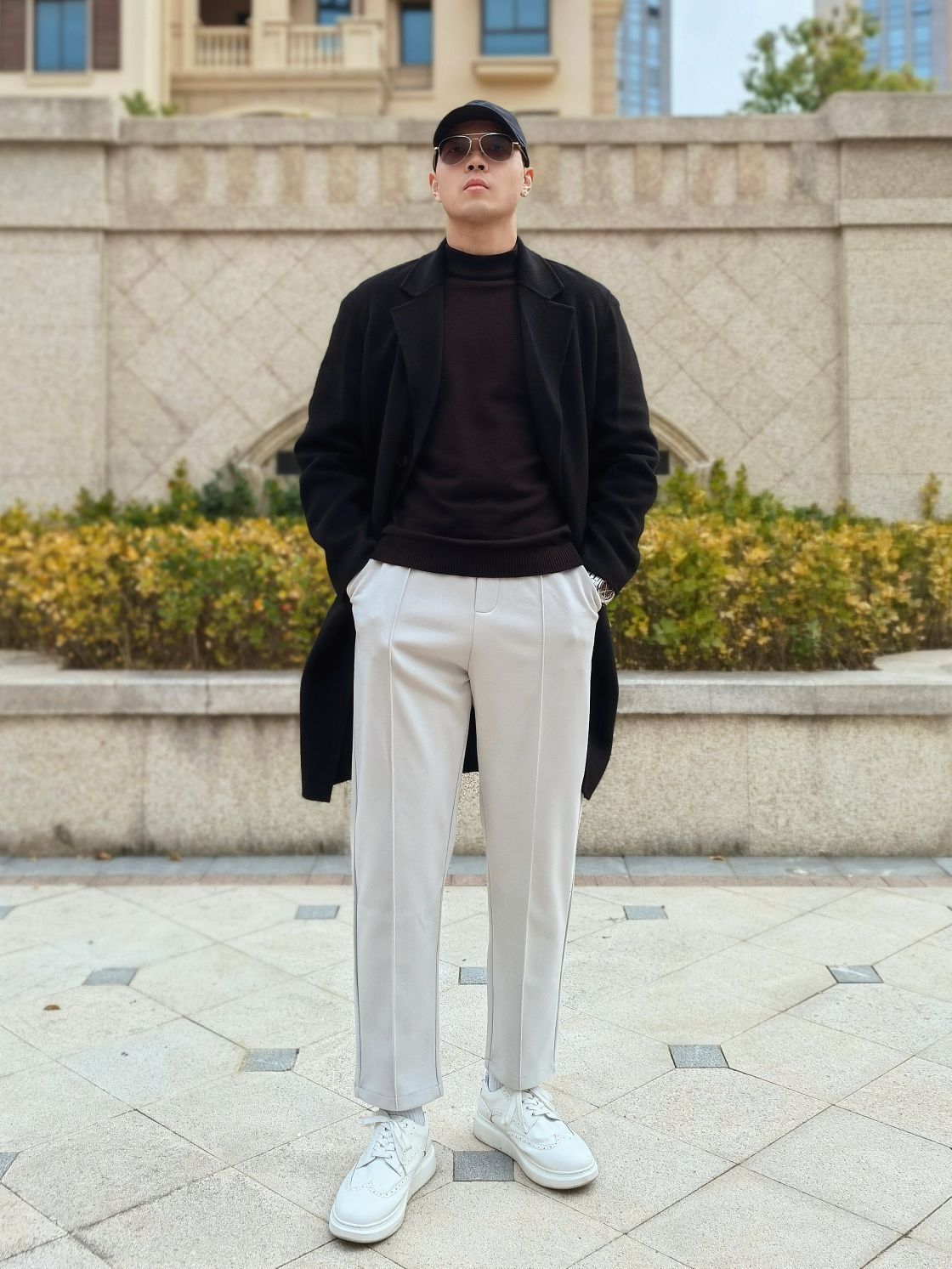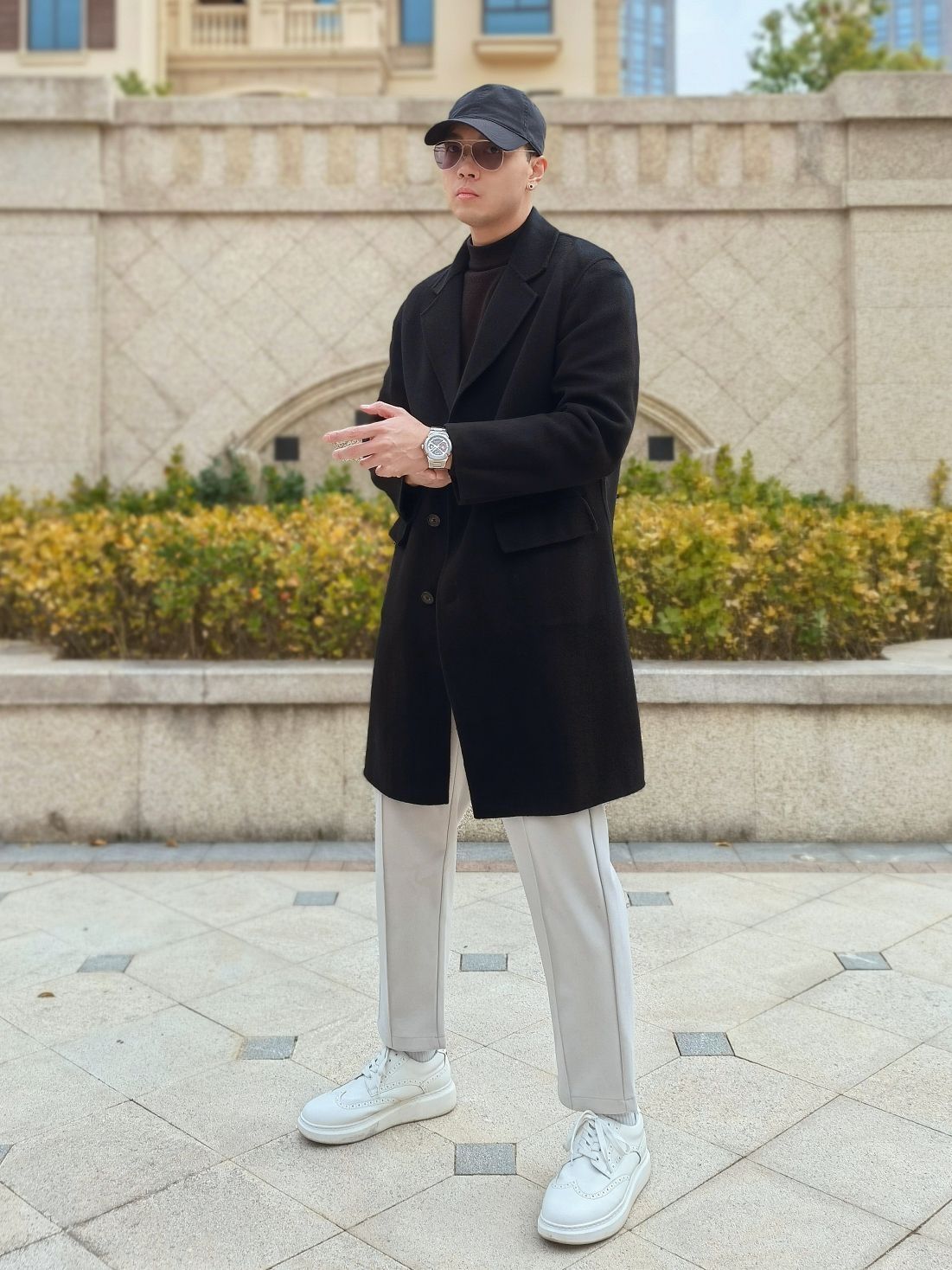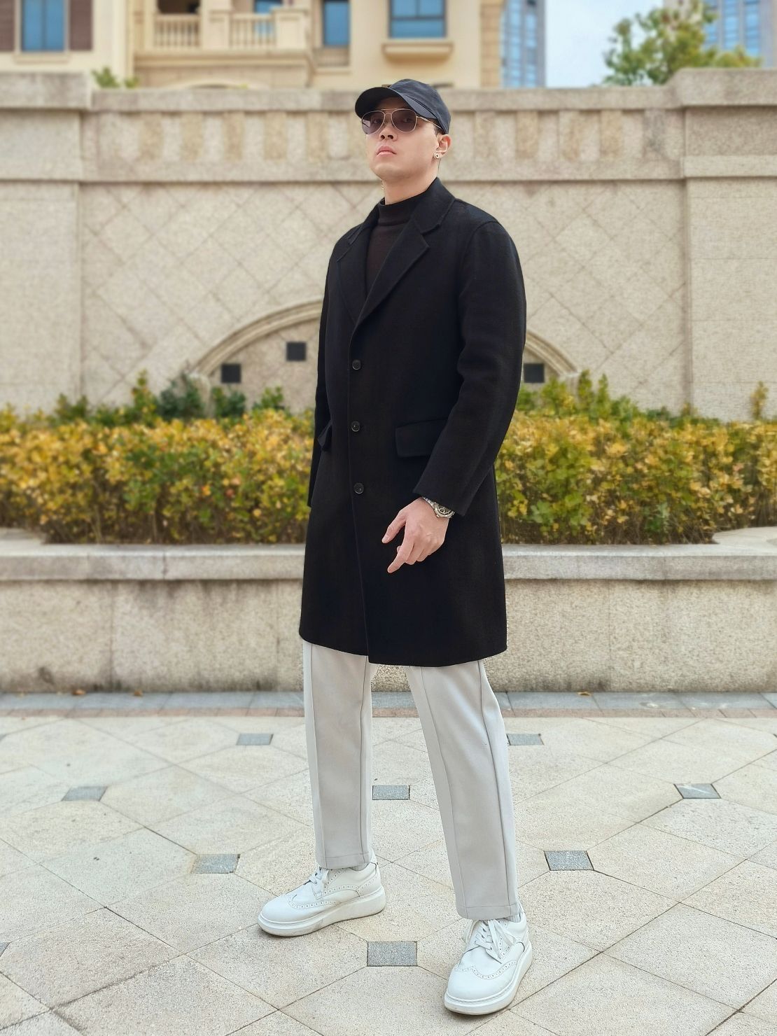 hello 大家好,这里是撒旦锅锅 💗179cm/80kg 🌞今日穿搭为通勤休闲风格 搭配类型:羊毛大衣+休闲裤+小白鞋 上身搭配navigare意大利小帆船大衣, 100%纯羊毛面料,触感细腻,保暖性好, 下身搭配白色休闲裤, 再搭配一双都彭家的白色雕花休闲鞋, 与裤子做一个白色系呼应, 整体黑白系穿搭潮流休闲感直接拉满🔥🔥