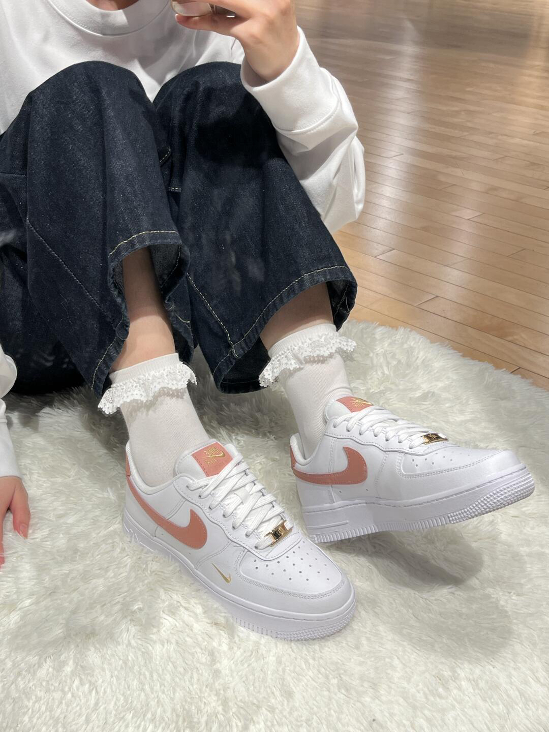 永远可以相信nike的调色盘🎨 女子空军又出新配色 珊瑚红🪸好好看呀(是仙女喜欢的配色) 🧶针织金色logo和小勾子✔️质感🈵🈵 这配色与秋冬季节适配率极高