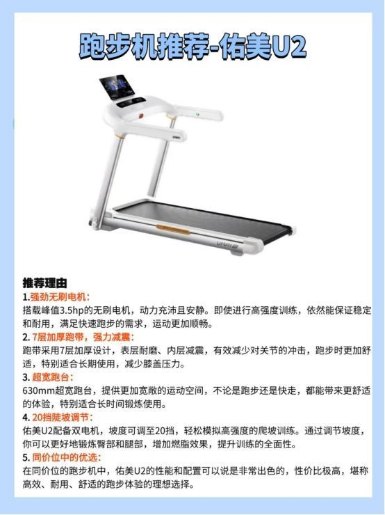 本篇笔记关联了Umay/佑美 U2 家用 可折叠 可调节 超静音 加宽 小型 健身房 高性能 爬坡 走步 跑步机 白色带调节钮等商品,为用户提供真实的使用体验和购买参考。