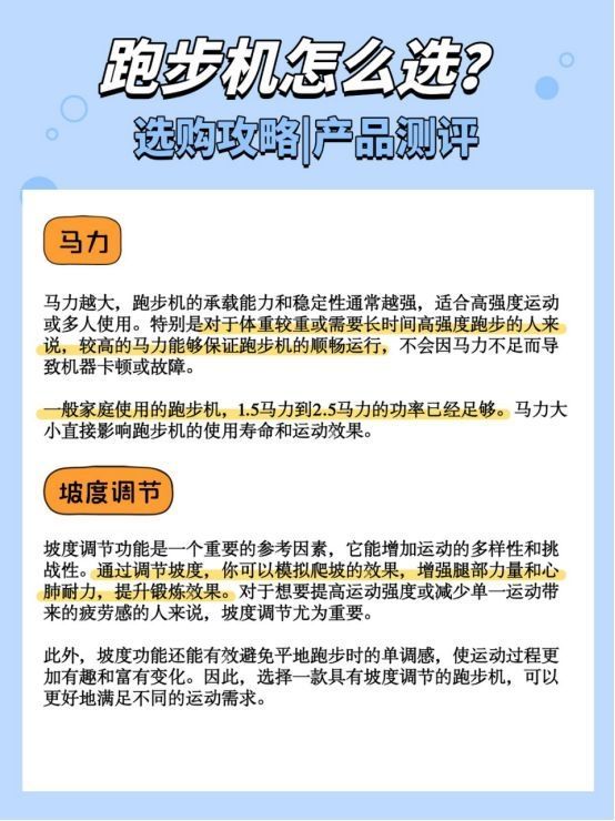 宝子们❗️最近天气越来越冷,是不是都像我一样在家根本不想出门运动呀?那不如把跑步机买回家,在家就能运动健身,完全可以在家里就享受跑步的乐趣❗️ 无论是忙碌的工作日还是周末懒得出门,轻松在家跑起来,减脂又养生! 那么,跑步机该怎么选呢❓看完这篇你就明白啦❗️❗️❗️ 1️⃣马力 2️⃣坡度调节 3️⃣减震系统 4️⃣噪音 5️⃣跑步机速度 6️⃣尺寸和收纳方式 根据我最近的研究了解,这...
