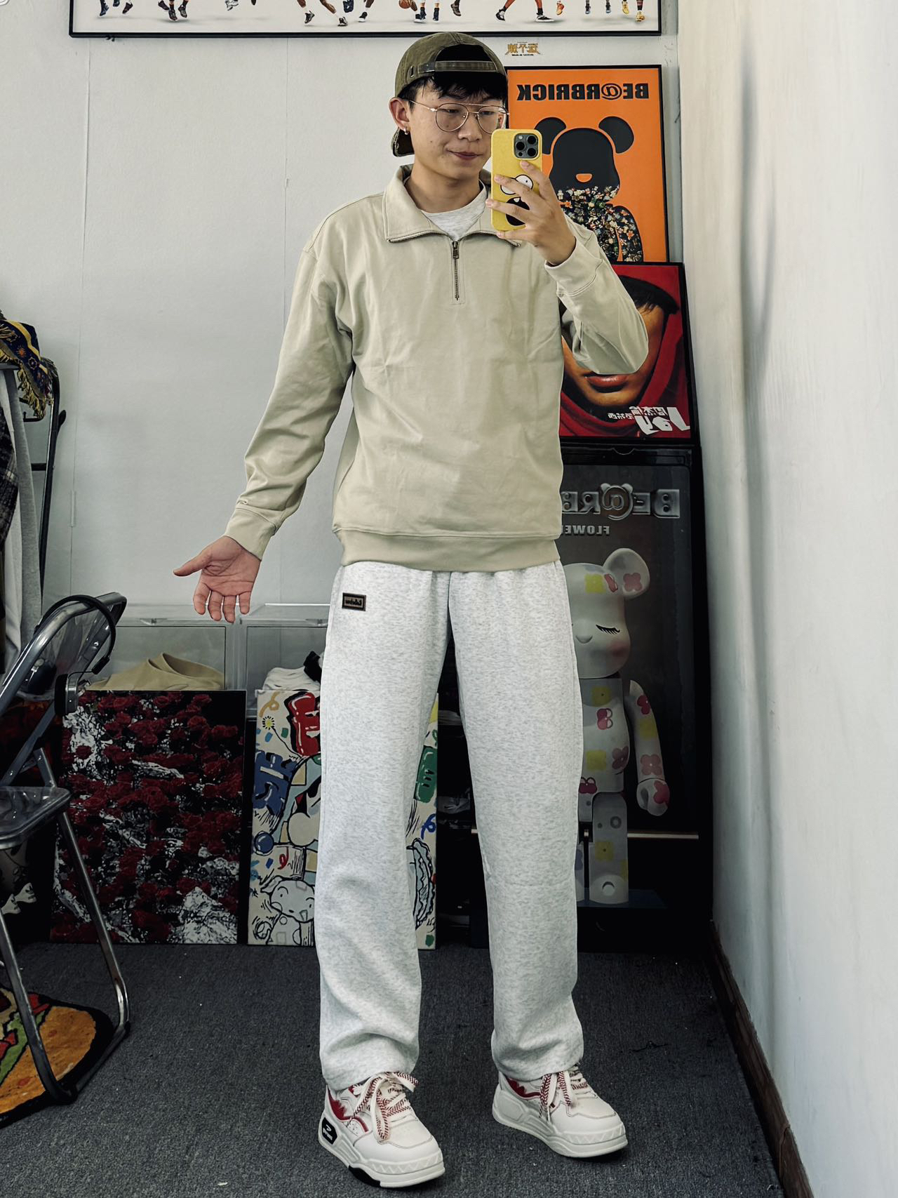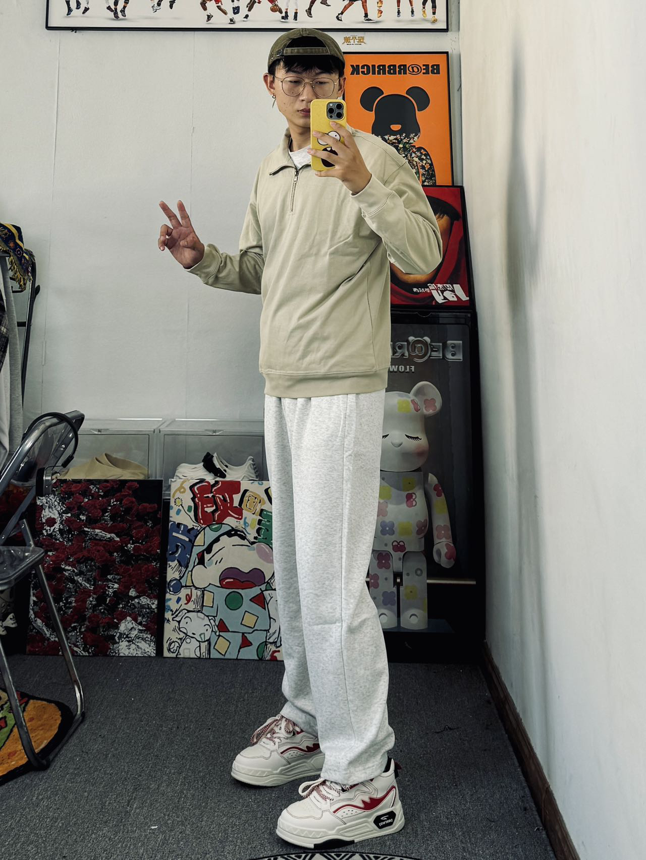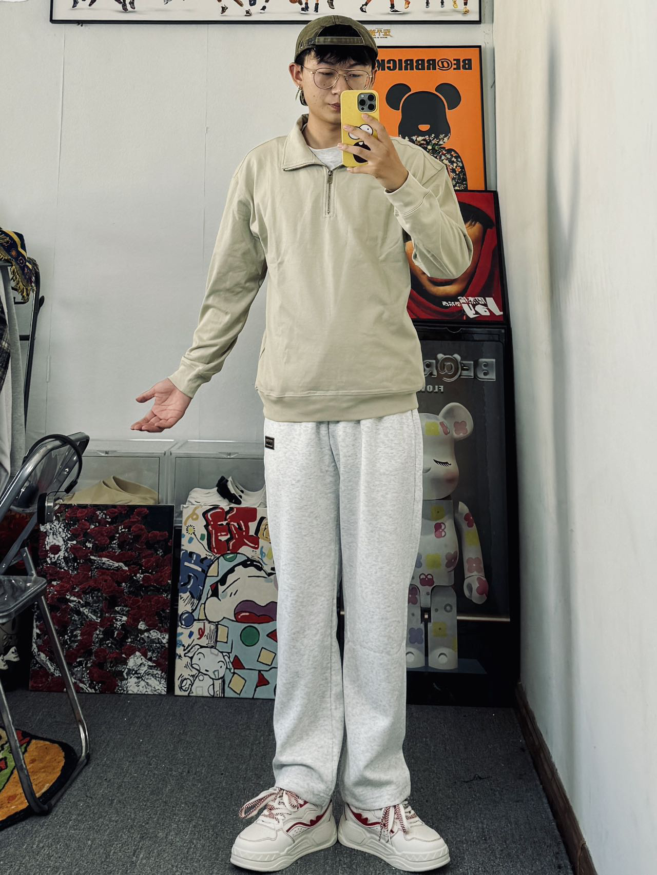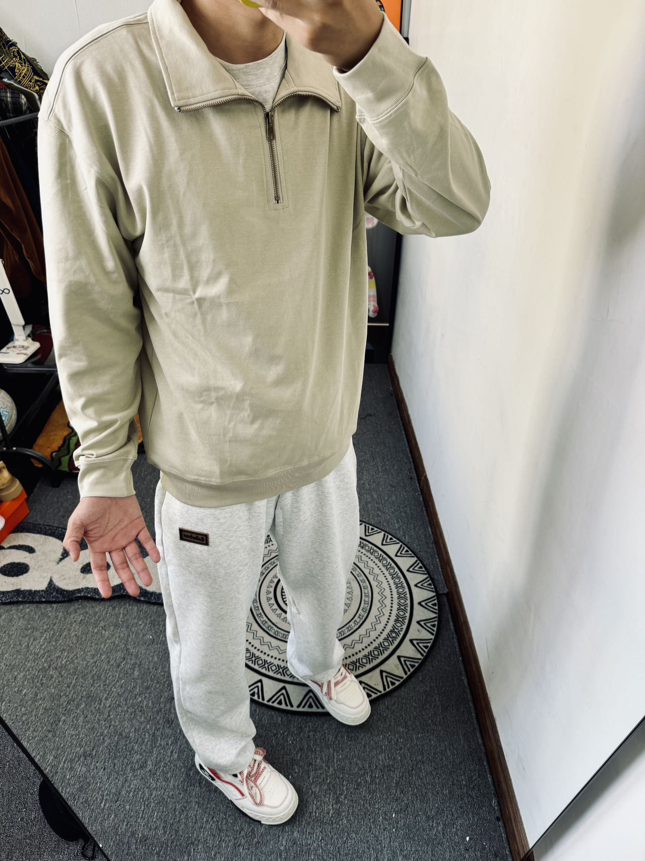 冰美式今日穿搭 👔上衣穿了一件立领纯色训练服 简约清爽的设计感 搭配起来不费劲 — 👖裤子搭配了一条灰色直筒裤 宽松直筒的设计舒适百搭 — 👟鞋子搭配了一双低帮板鞋 主要是鞋子的脚感舒适 穿起来舒适感不错 身高/体重:178/140 👔xl👖xl👟41