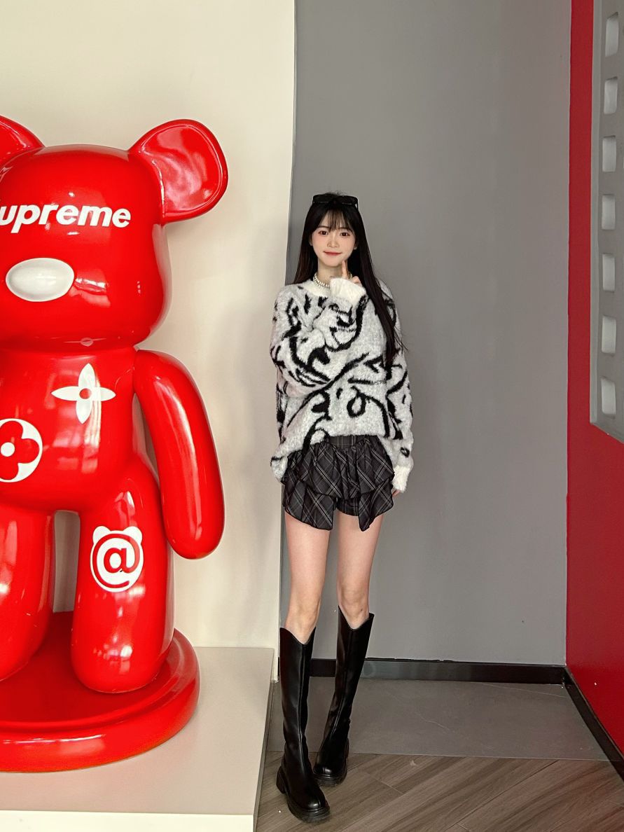 哈喽,家人们,今天的穿搭分享来啦,是一套入冬淑女风穿搭分享~ 奶牛色🐄毛衣+格子蛋糕裙+珍珠项链+光腿神器+黑色百搭高筒靴+红色大暴力熊 一整套入冬室内淑女风穿搭get~ 尺码参考: 身高、体重:160、95 衣服:m裤子:s鞋子:36