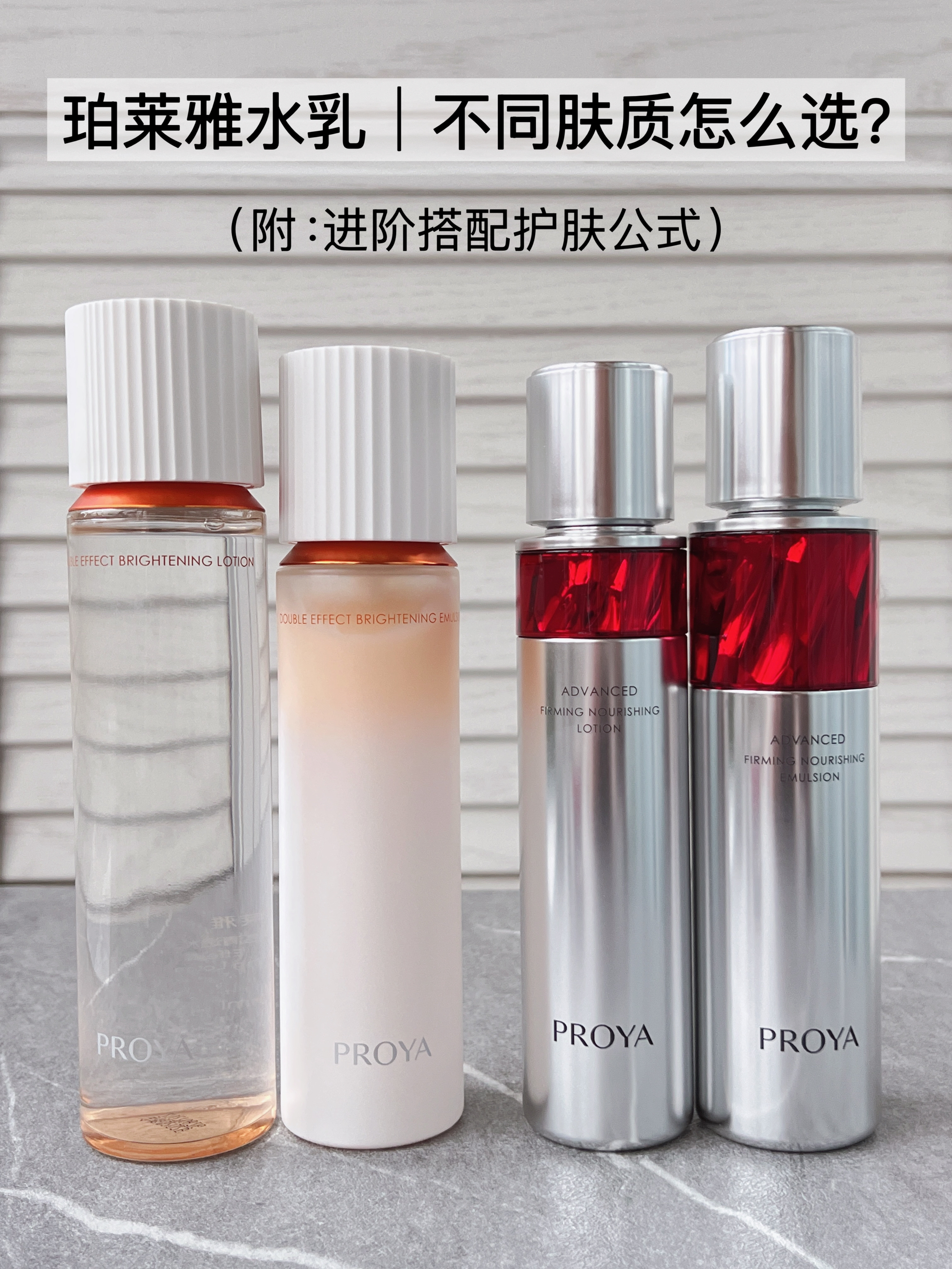 之前我有单独分享过好几次珀莱雅护肤品的心得。今天来和大家一起说说不同肤质和护肤诉求应该怎么选对应的系列。 我是混油皮,夏天偏油,秋天正好,冬春偏干。 ◆珀莱雅红宝石水乳◆ 不挑肤质,滋润度不错。 25+,脸上松垮出现细纹,有抗老需求的,用这套正好。 冬天干皮如果需要更滋润一些,可以叠用同系列的红宝石面霜,保湿一天没问题。整体很温和,对敏肌也很友好。 ◆珀莱雅双抗水乳◆ 质地很清爽,更适合油痘肌...