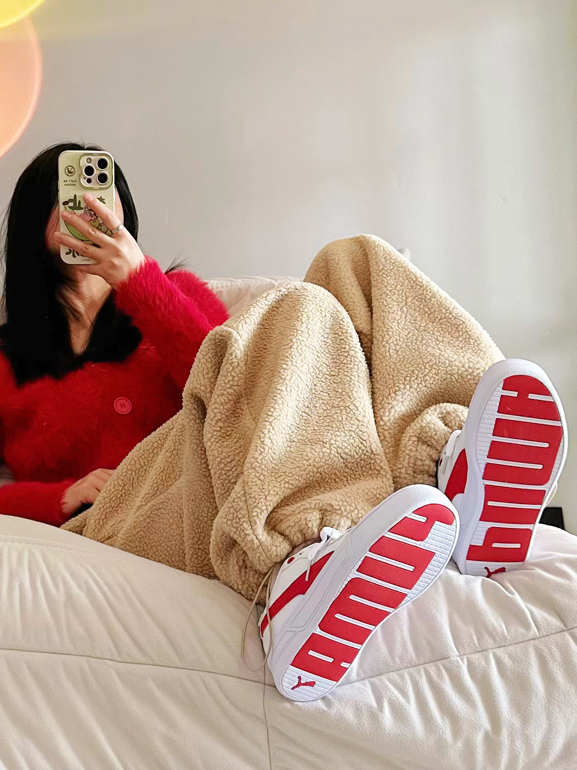 红色太正啦,太有年味啦 上脚舒服轻便不板脚 搭配红色毛衣和羊羔毛裤 简直就是冬日里的新年战袍 又喜庆又有年味