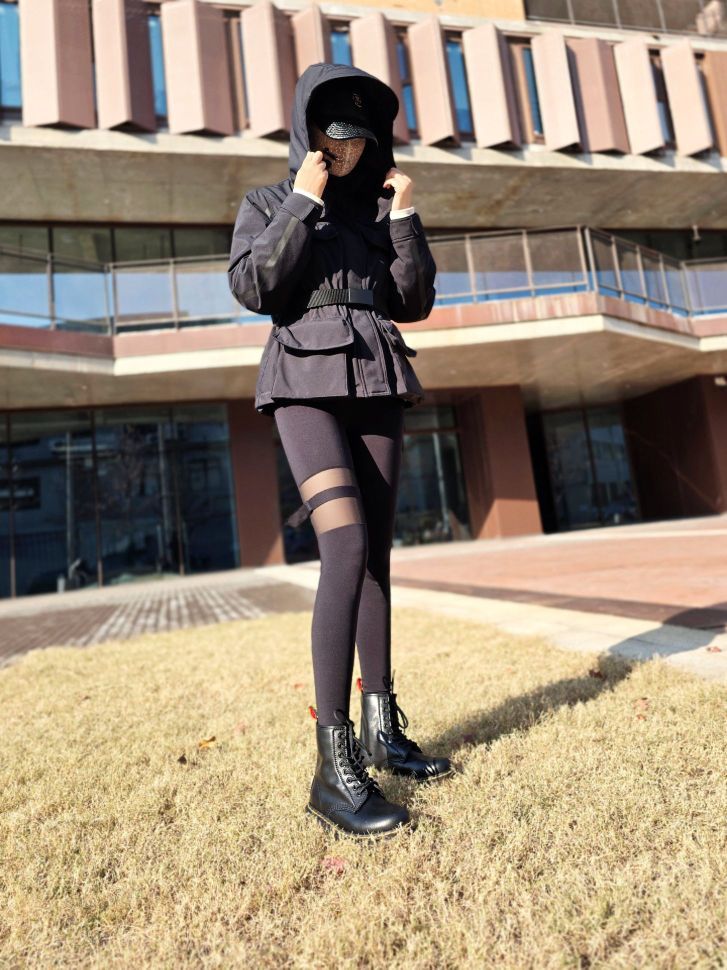 今天来个冬日ALL BLACK飒酷穿搭! 羽绒服+鲨鱼裤+马丁靴~ 走到哪里都是焦点! 很简单,你也可以哦!