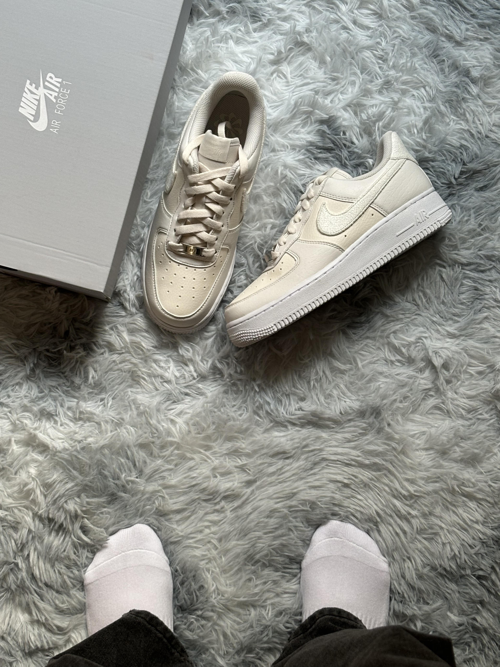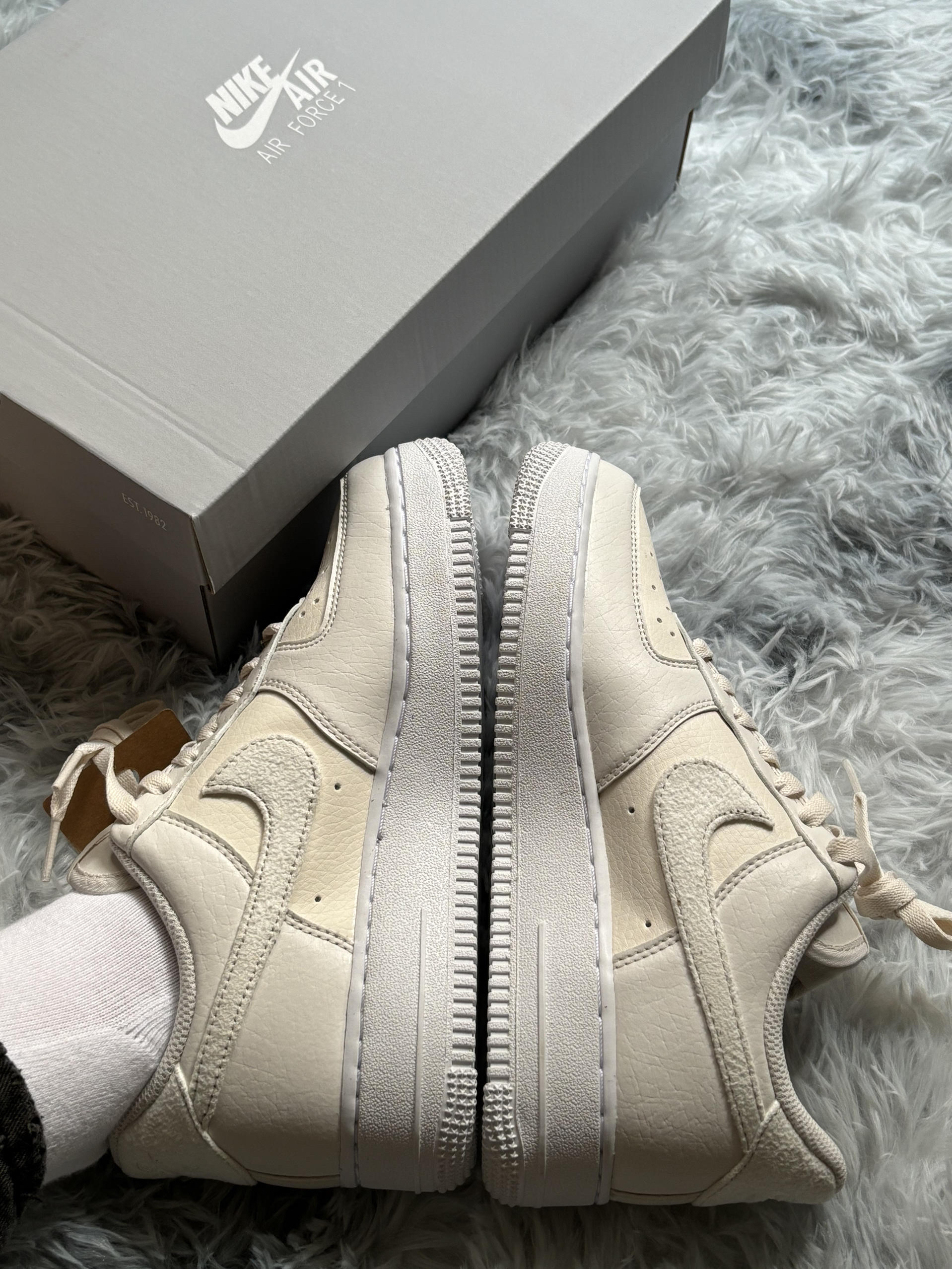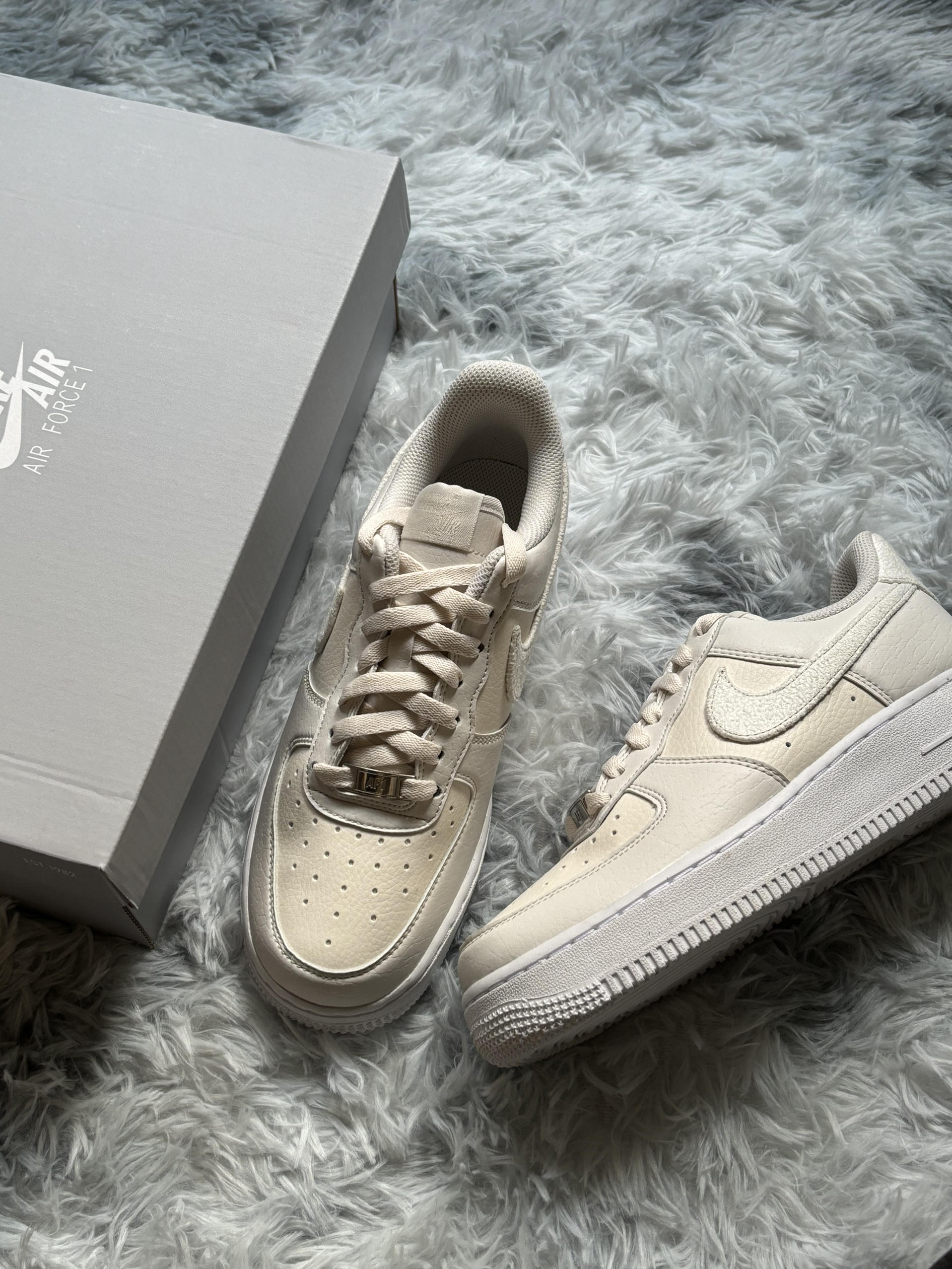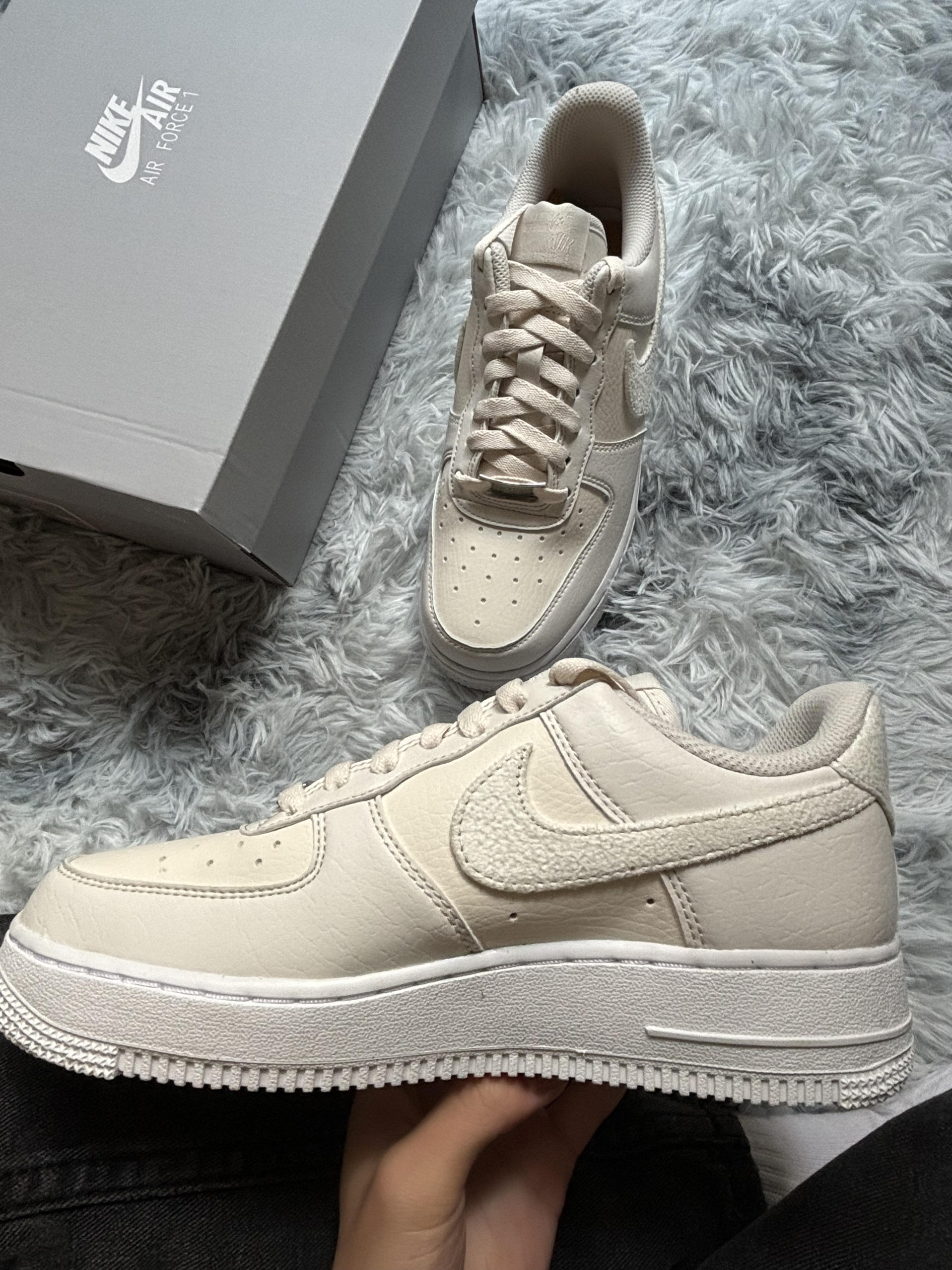 哈喽大家好这里是Cc同学的潮鞋分享频道今天给大家分享一双很好看的小众空军一号😇 这双鞋软软糯糯感觉穿上整个人都变温柔了很 适合女孩子穿哦😉 整个鞋面是皮革的Iogo是绒面的很好打理哦🤩鞋码方面推荐选择小半码赏如果你想选择一双小众又好看的空军选它准没错!