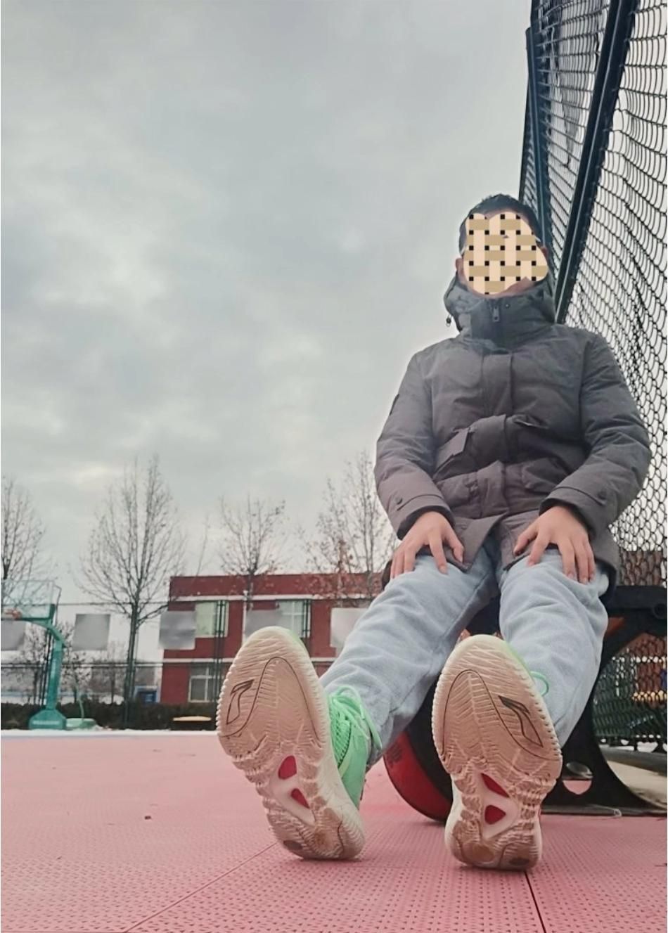 4️⃣抓地:这是第三推荐点,鞋子抓地在线,内外场不存在溜冰刹不住的情况,稳健十足,可以任意做动作。但是内场有水渍的情况要注意下。同时擦地声音清脆,轻微移动就声音明显。
