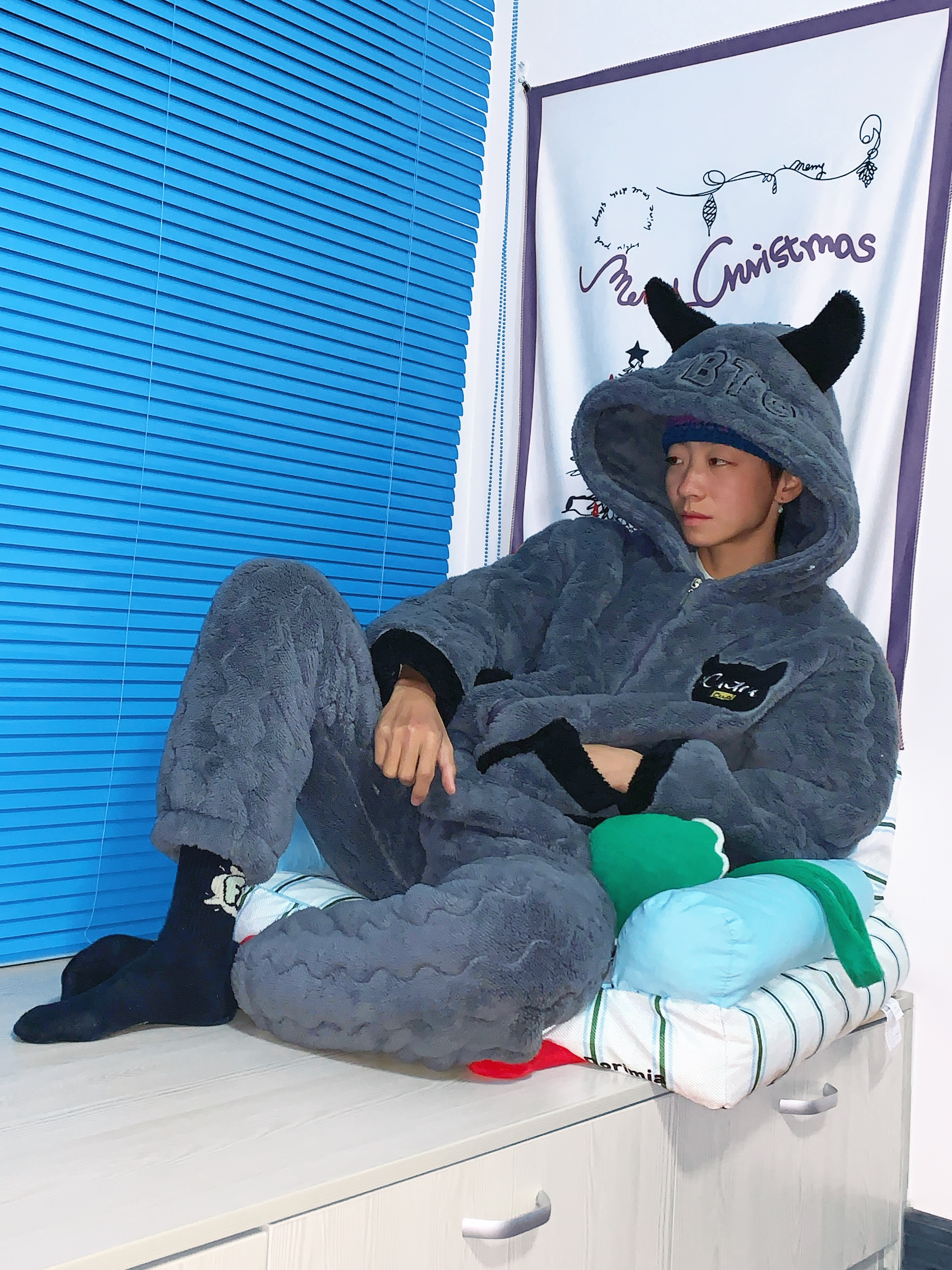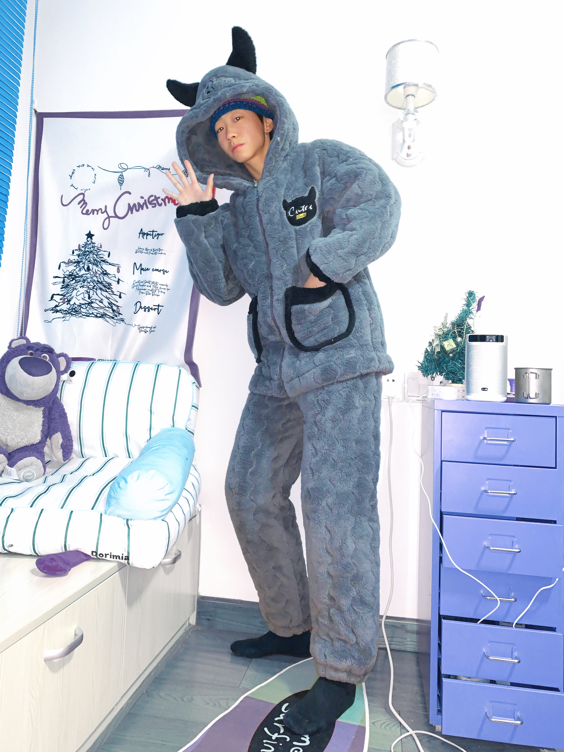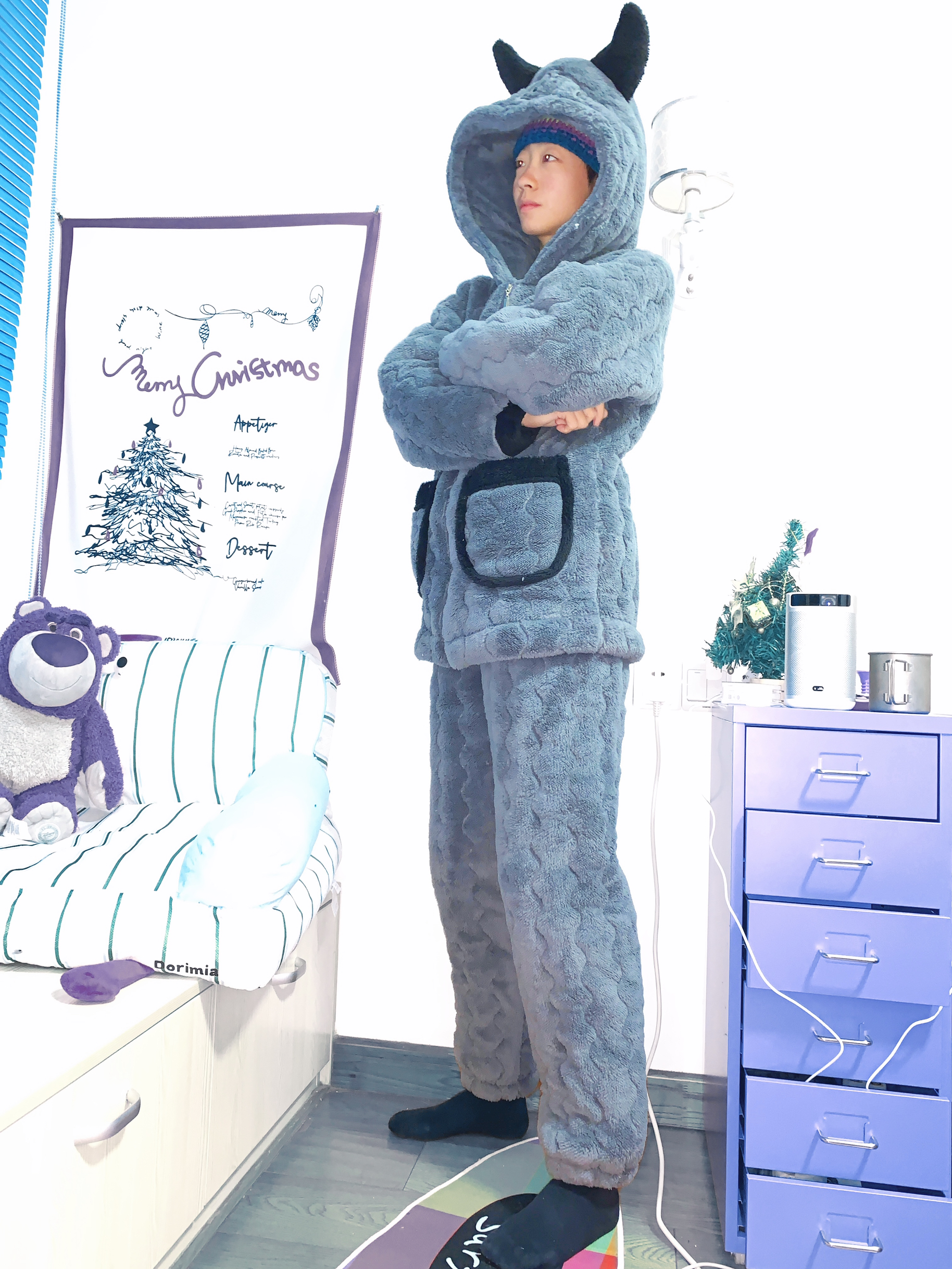 哈喽 欢迎来到哇哇哇穿搭分享频道! 172CM|55KG|👔:M 👖:m|👟:39码 可可爱爱滴小恶魔👿睡衣 尊嘟是俘获人心的啦~ 夹棉珊瑚绒灰色系 可以穿出室外的睡衣!! 懒人的冬天 太需要了就是说。 睡衣上身就hen 自由舒适 冬日居家氛围感满满 一点都不想出门