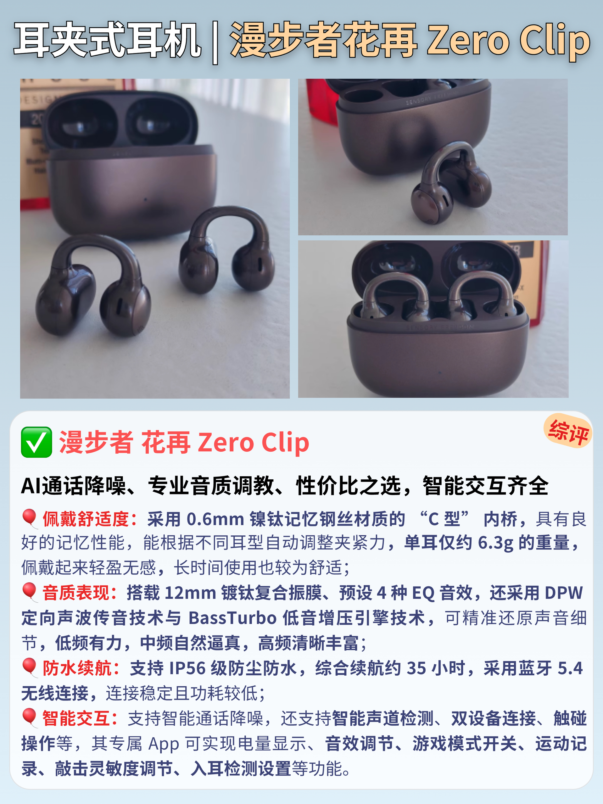 本篇笔记关联了Edifier/漫步者 花再Zero Clip 耳夹式 蓝牙 耳机 气骨传导 运动跑步 舒适佩戴 开放式 不入耳 降噪 长续航 无线 琉璃黑等商品,为用户提供真实的使用体验和购买参考。