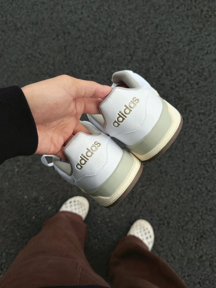 是经典的德训款式 但是价格仅需samba的一半 平替版samba简直不要太香了~ 在2.0版本上进行了延伸 感觉这款更简约大气 配色没有2.0那么紫 更多带一点粉白调 粉色鞋面搭配咖黄色鞋底 很特别好看的颜色~