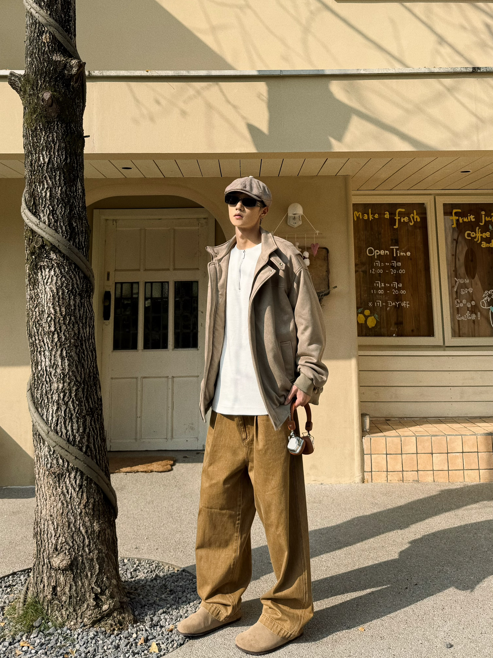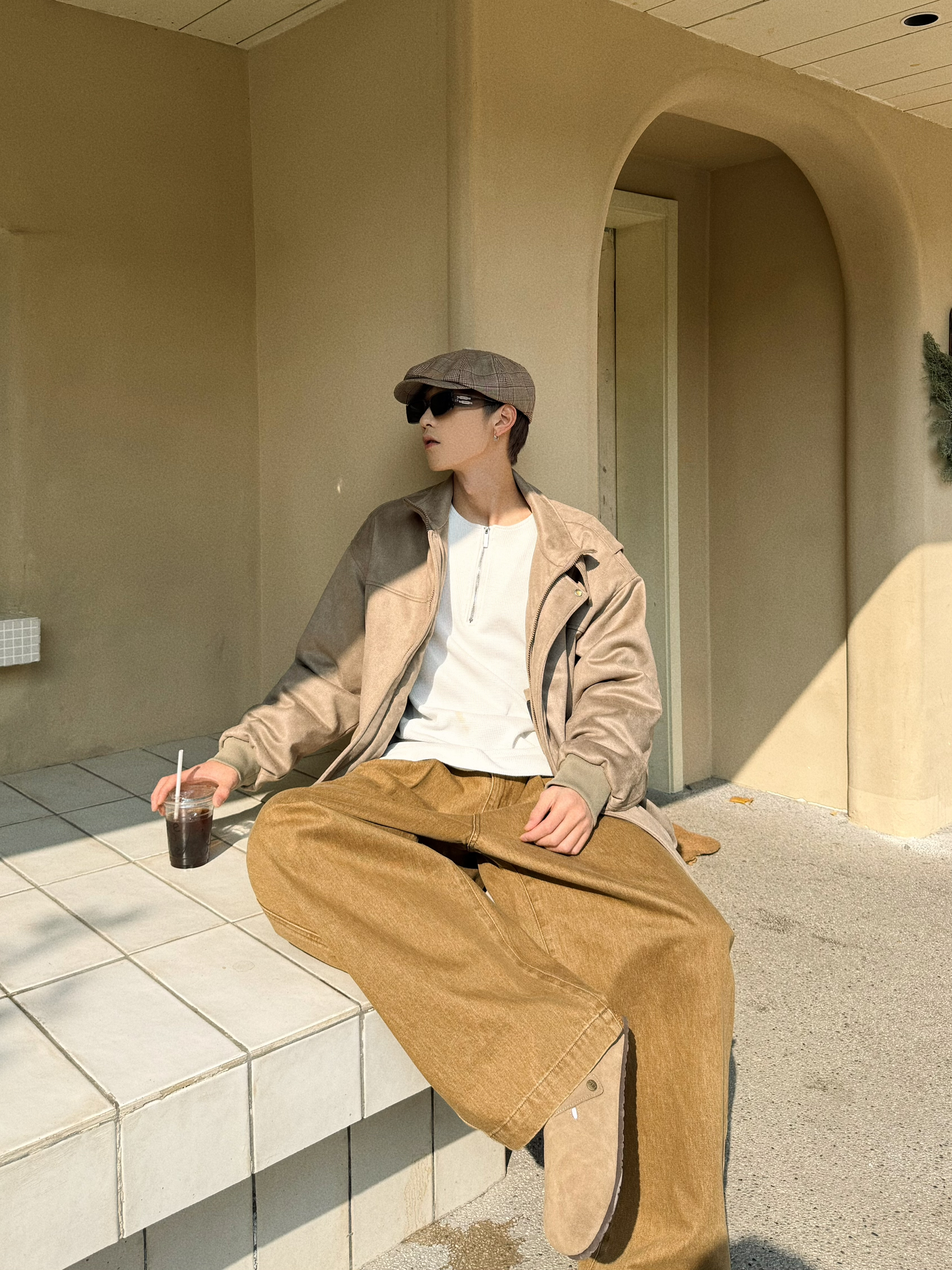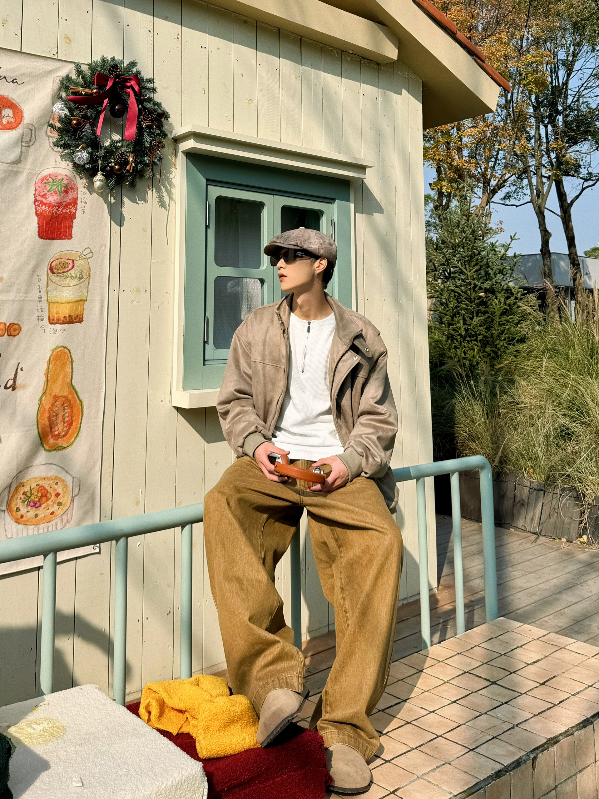 冬天的阳光简直是太舒服了 不愿错过每一次拥抱太阳的机会hh 今天也是选择了暖色调 麂皮的立领宽松夹克搭配阔腿裤轻松打造秋冬时髦 保暖的同时又很阳光耐看穿上同色系勃肯鞋 玩转复古风 拿捏秋冬回头率