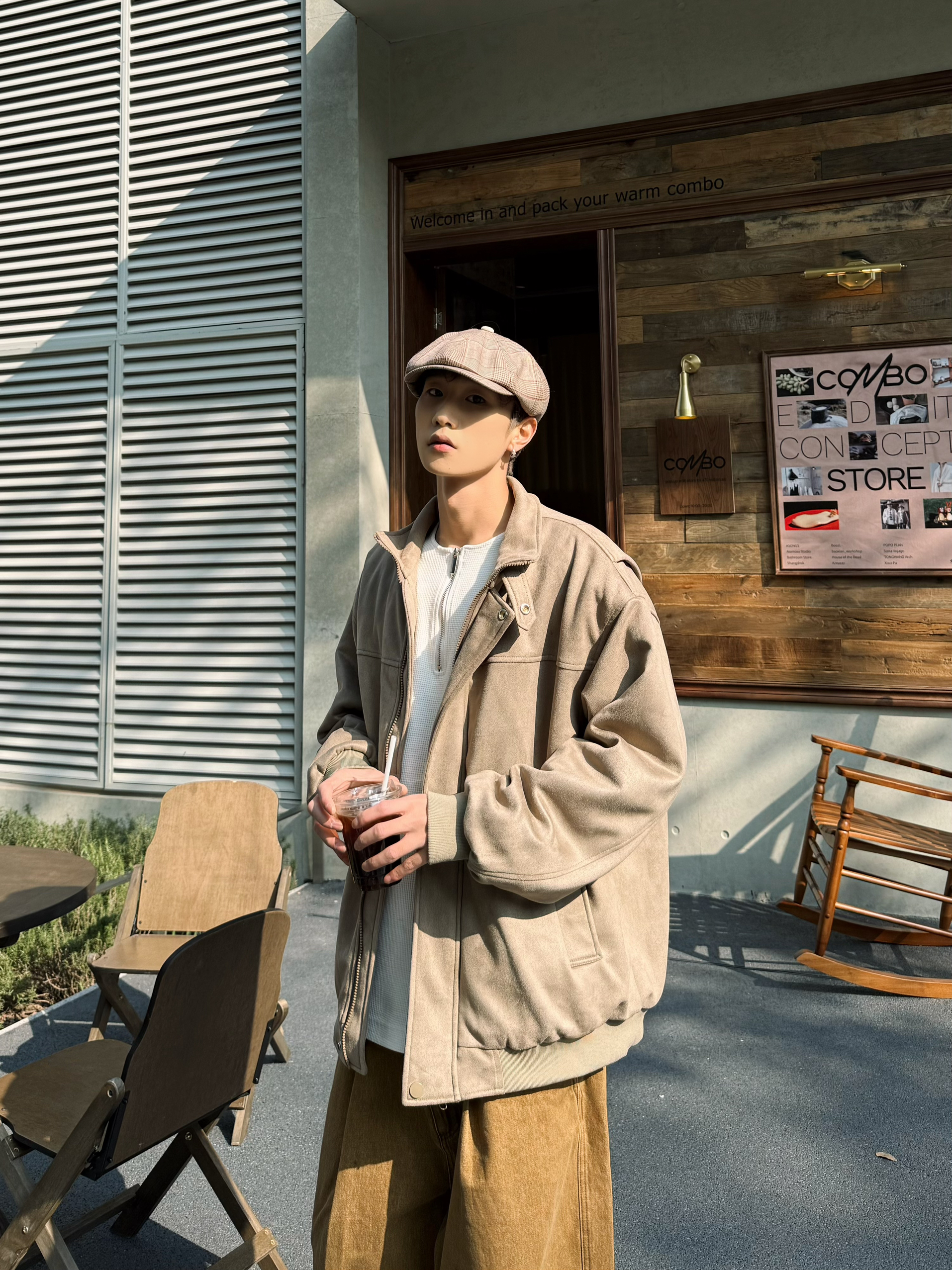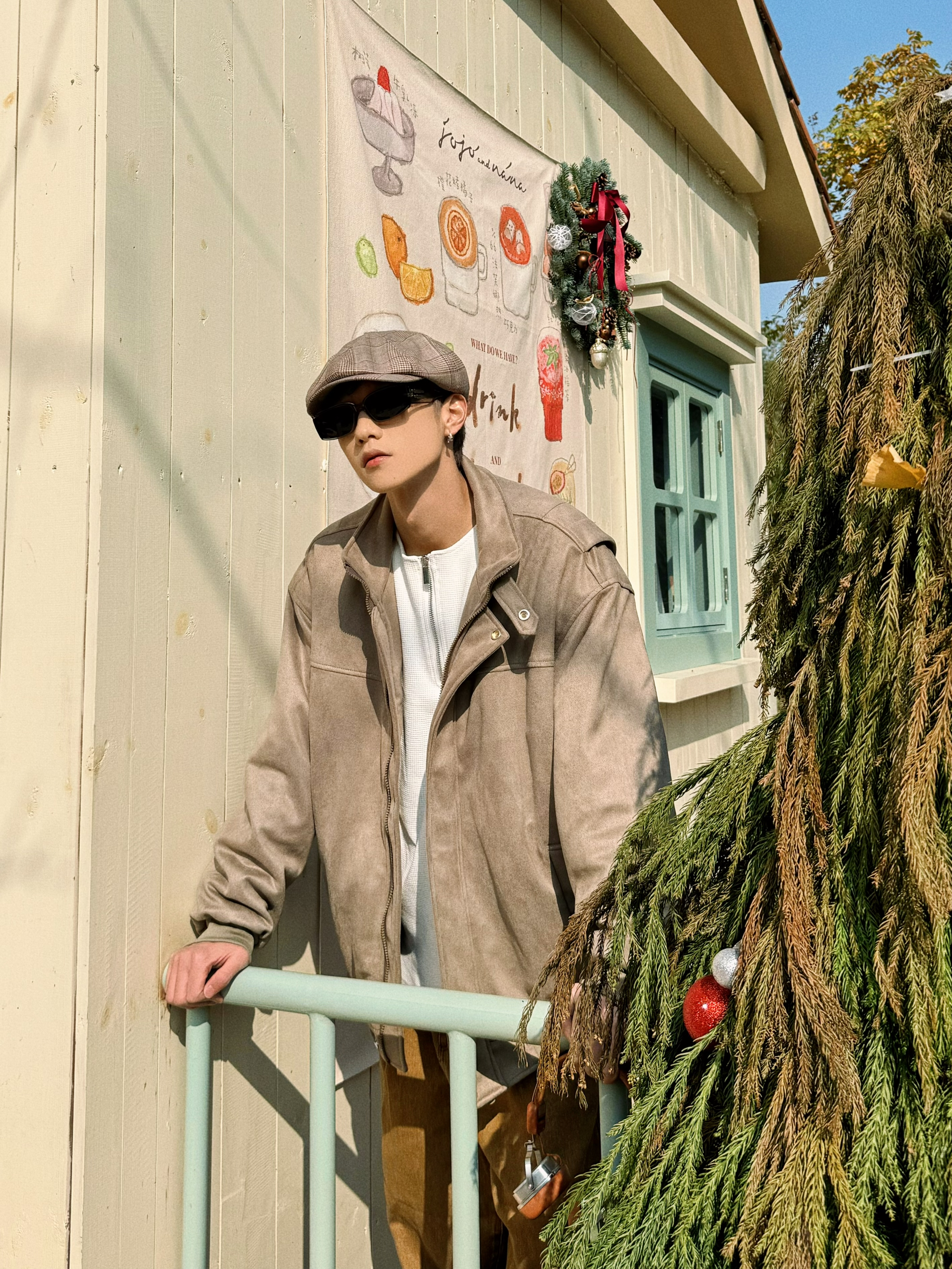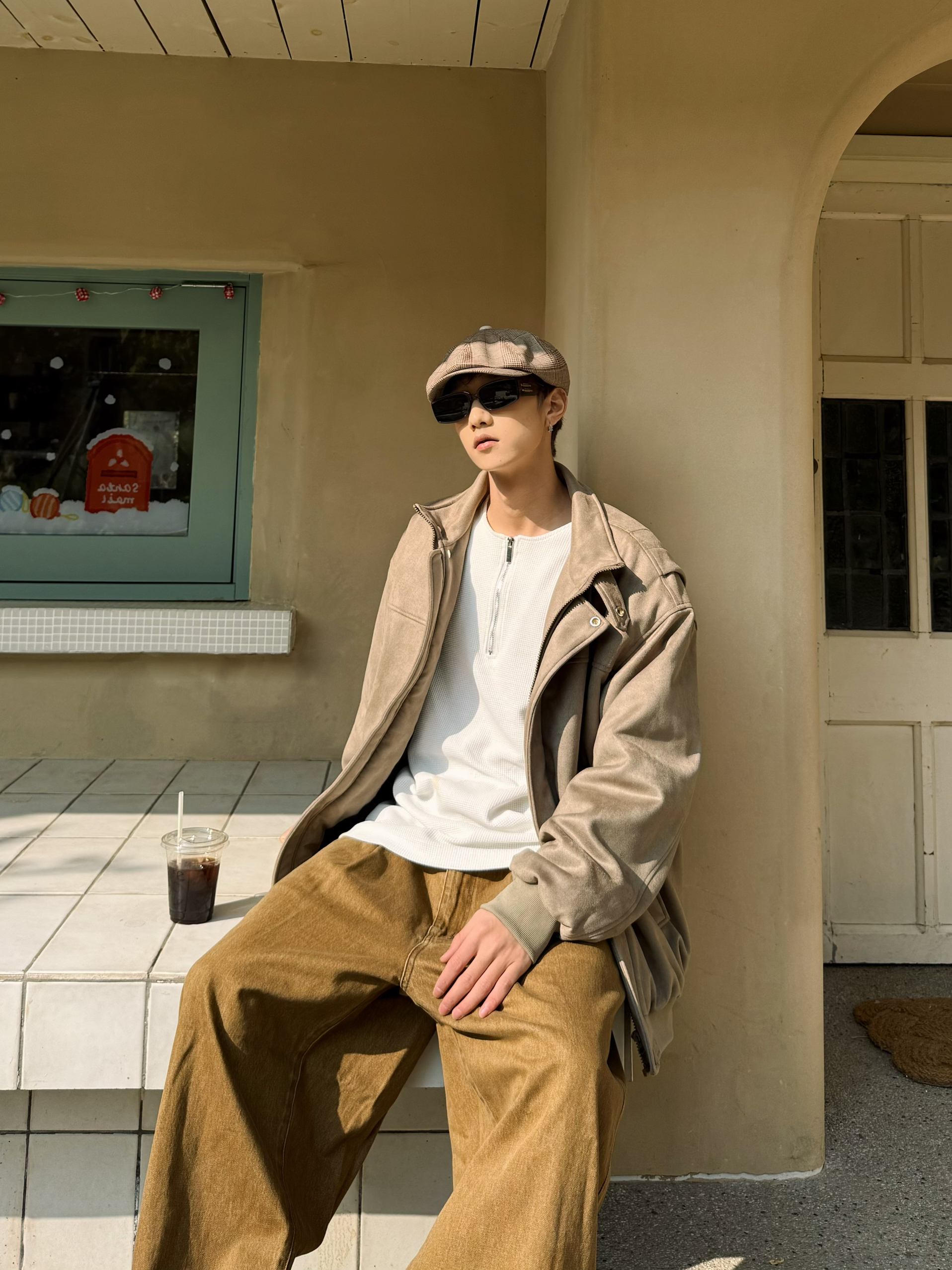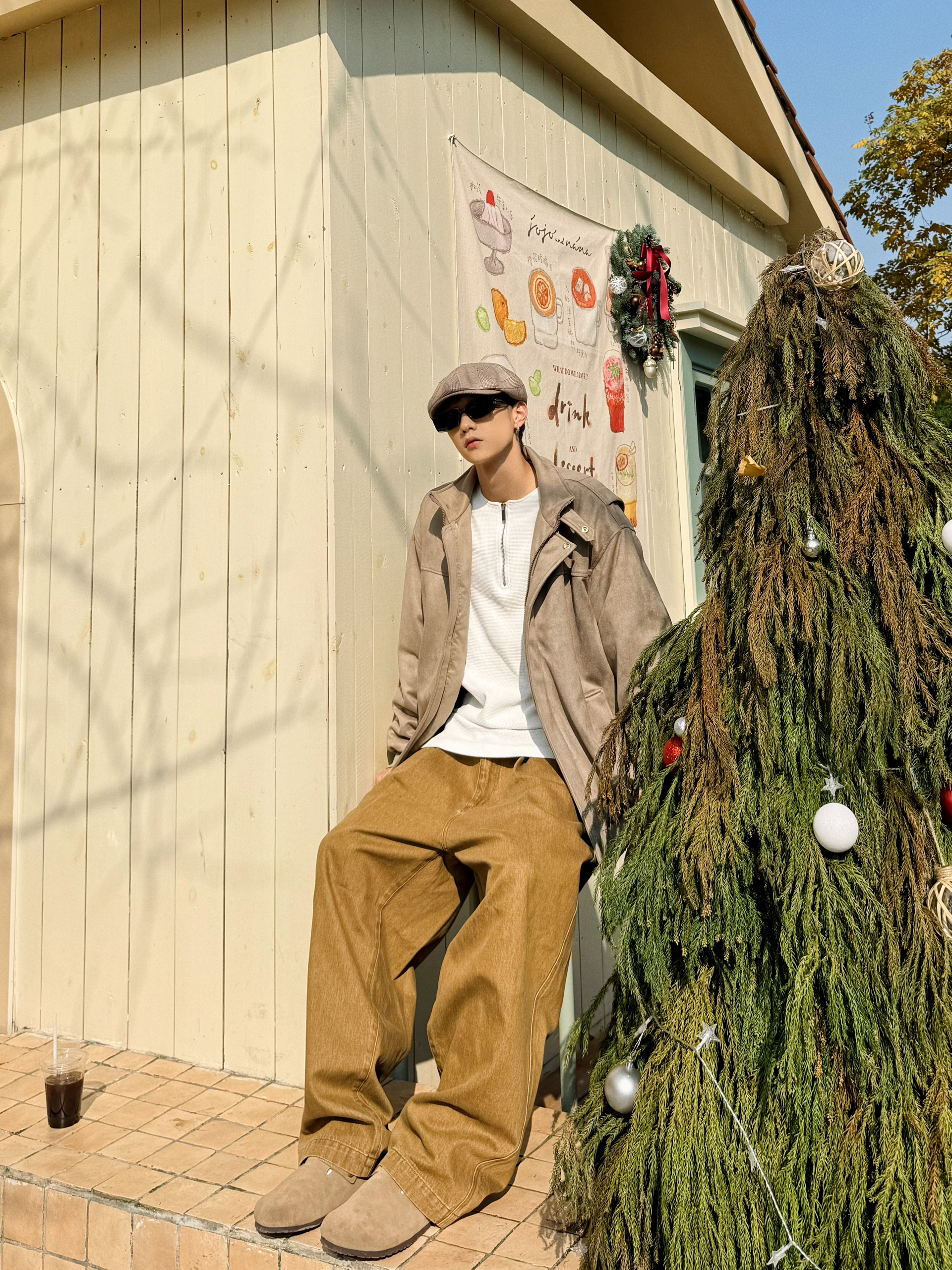 冬天的阳光简直是太舒服了 不愿错过每一次拥抱太阳的机会hh 今天也是选择了暖色调 麂皮的立领宽松夹克搭配阔腿裤轻松打造秋冬时髦 保暖的同时又很阳光耐看穿上同色系勃肯鞋 玩转复古风 拿捏秋冬回头率