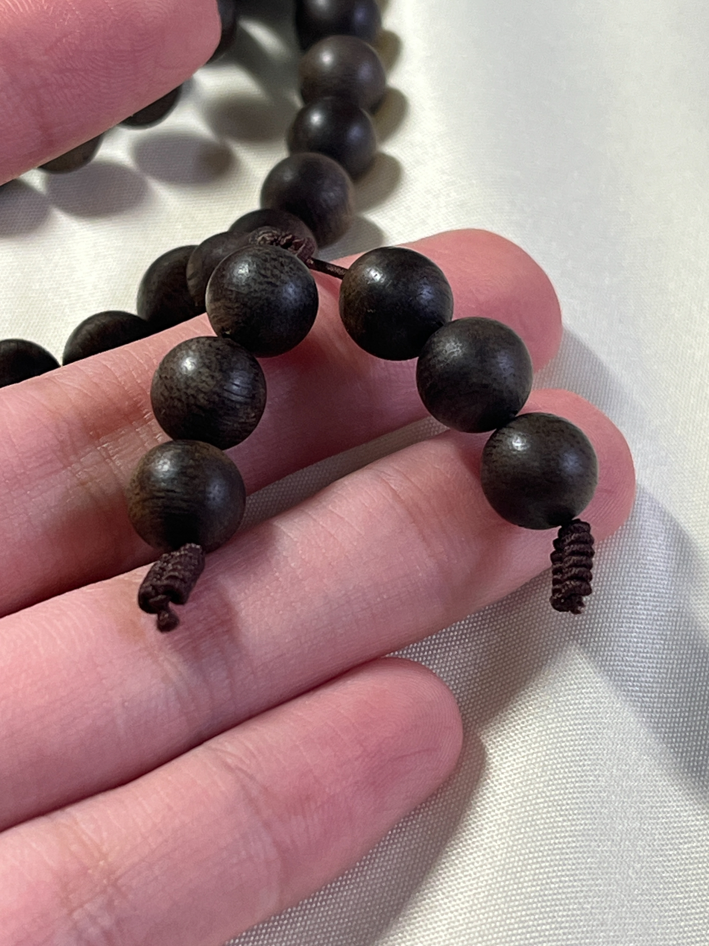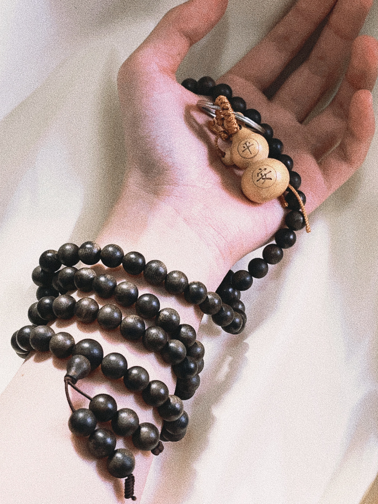 [爱心_blue]我是没想到居然买到这么好看的沉香手串! ✨刚到货打开就有扑面而来的木质香,味道比我之前买的老肉檀香淡,闻起来有点安神的作用,用手搓一搓味道就上来了,很香! ✨这个是108颗的,夏天我随便搭个简约的T恤就看起来很中式风,而且沉香它颜色是比较深的,所以基本不挑衣服。 ✨檀木的手串可玩性也挺高的,上班无聊就搁那盘,这家店是有送手套的,我是经常上班戴手套搁那摸鱼盘串,这种檀木越盘越...