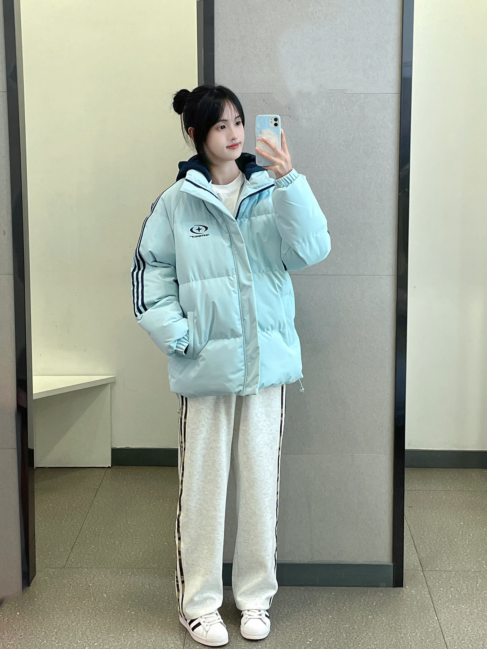 👔 :anywalk蓝色棉服 👖 :coldstone花灰色迷彩条纹裤