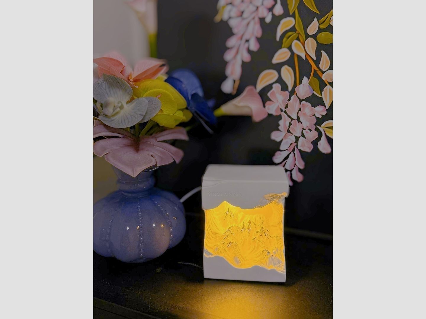 尹谜日照金山扩香石礼盒,集无火香薰、小夜灯功能于一体。卧室放置,营造氛围助睡眠,生日节日赠亲友,表心意佳选。