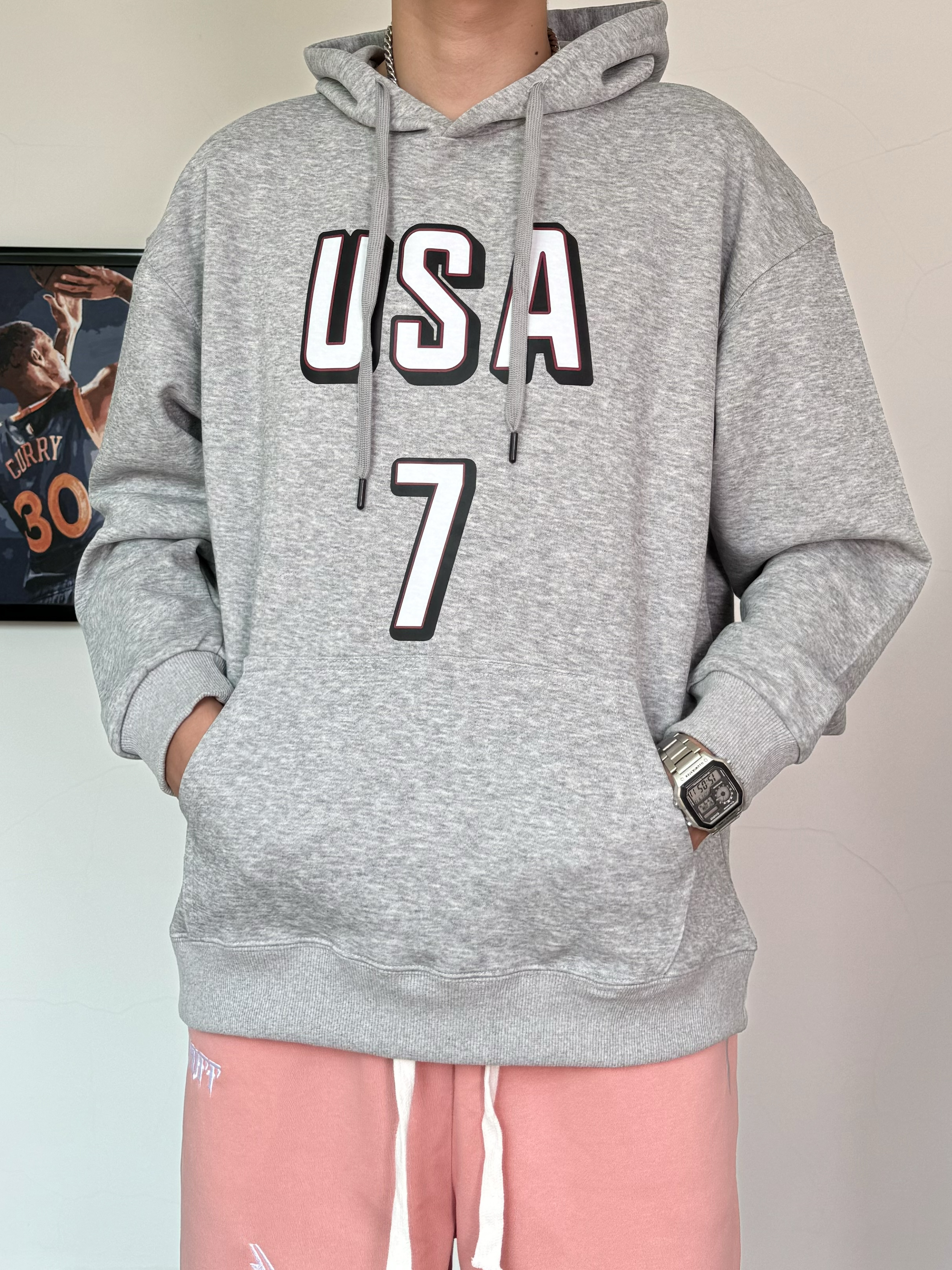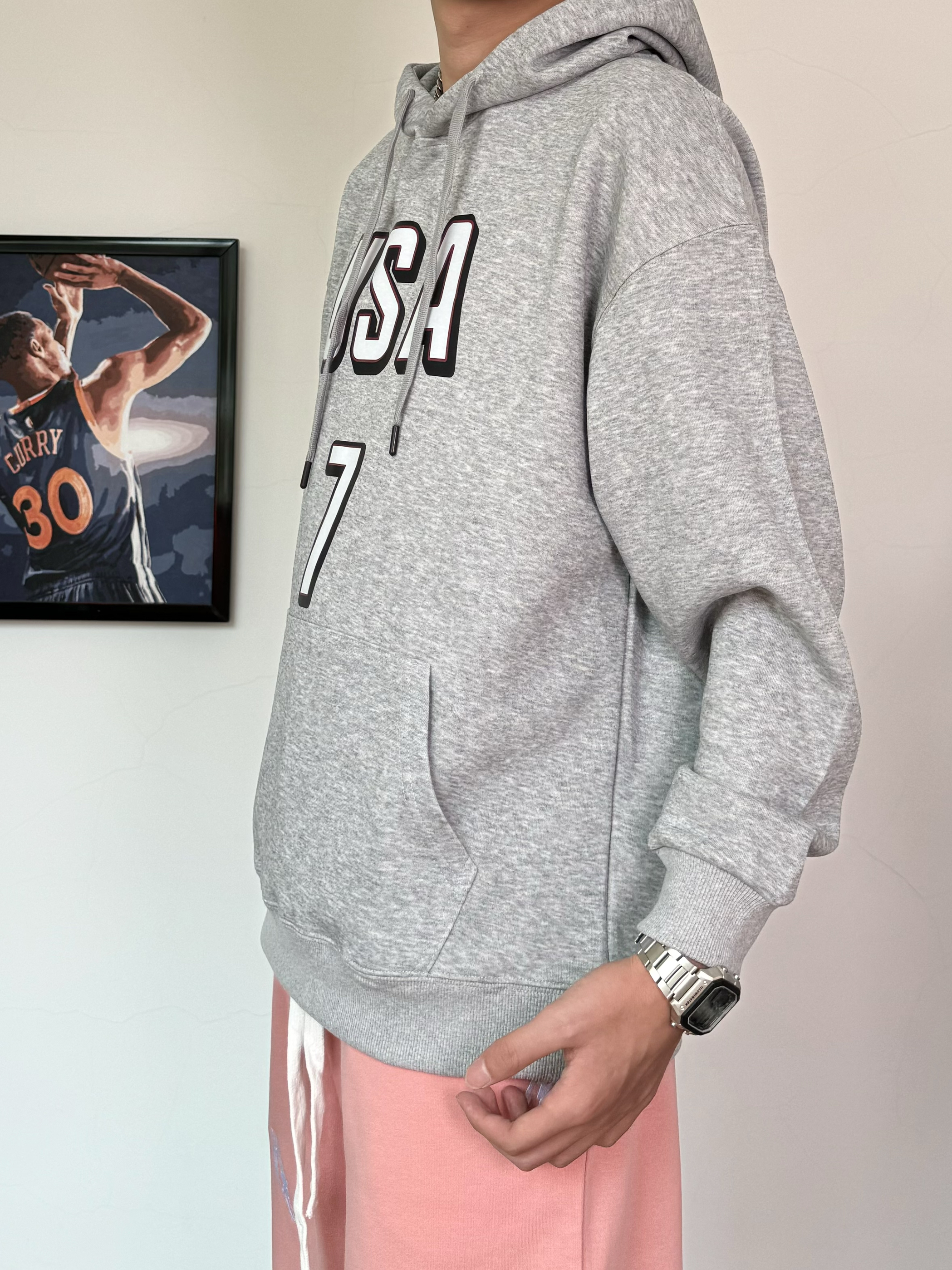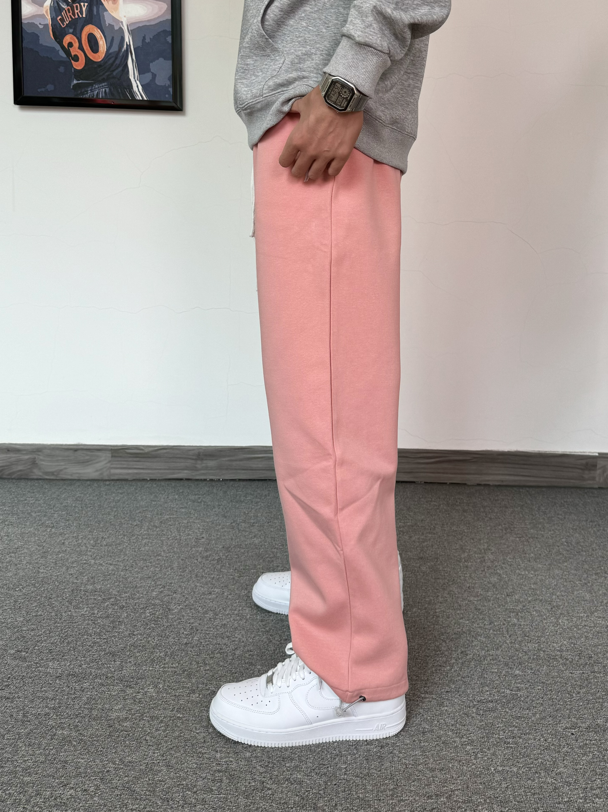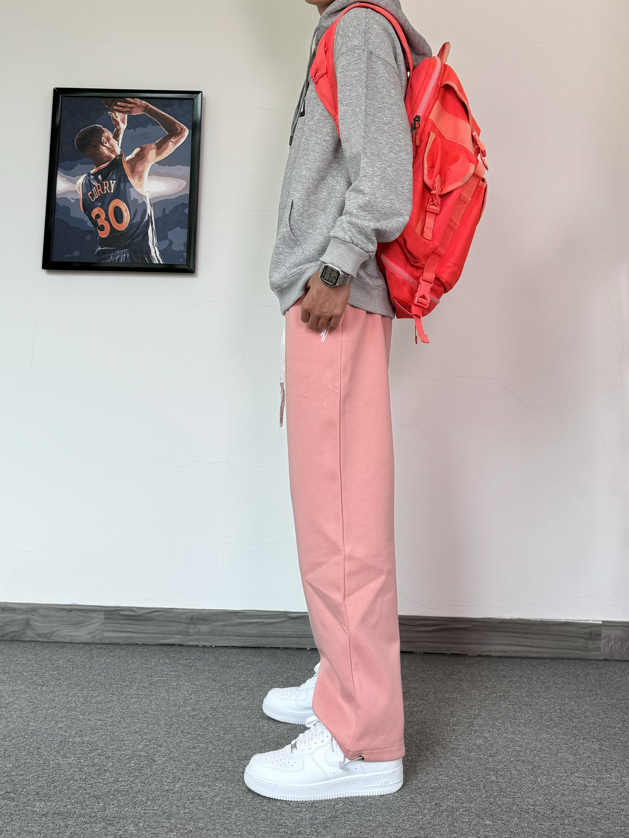 冬日的卫衣穿搭含金量还在上升 基础款字母印花灰色卫衣 搭配粉色闪电⚡️束脚裤 一整个运动感十足 再脚踩纯白色百搭空军 简简单单一套帅气才穿搭