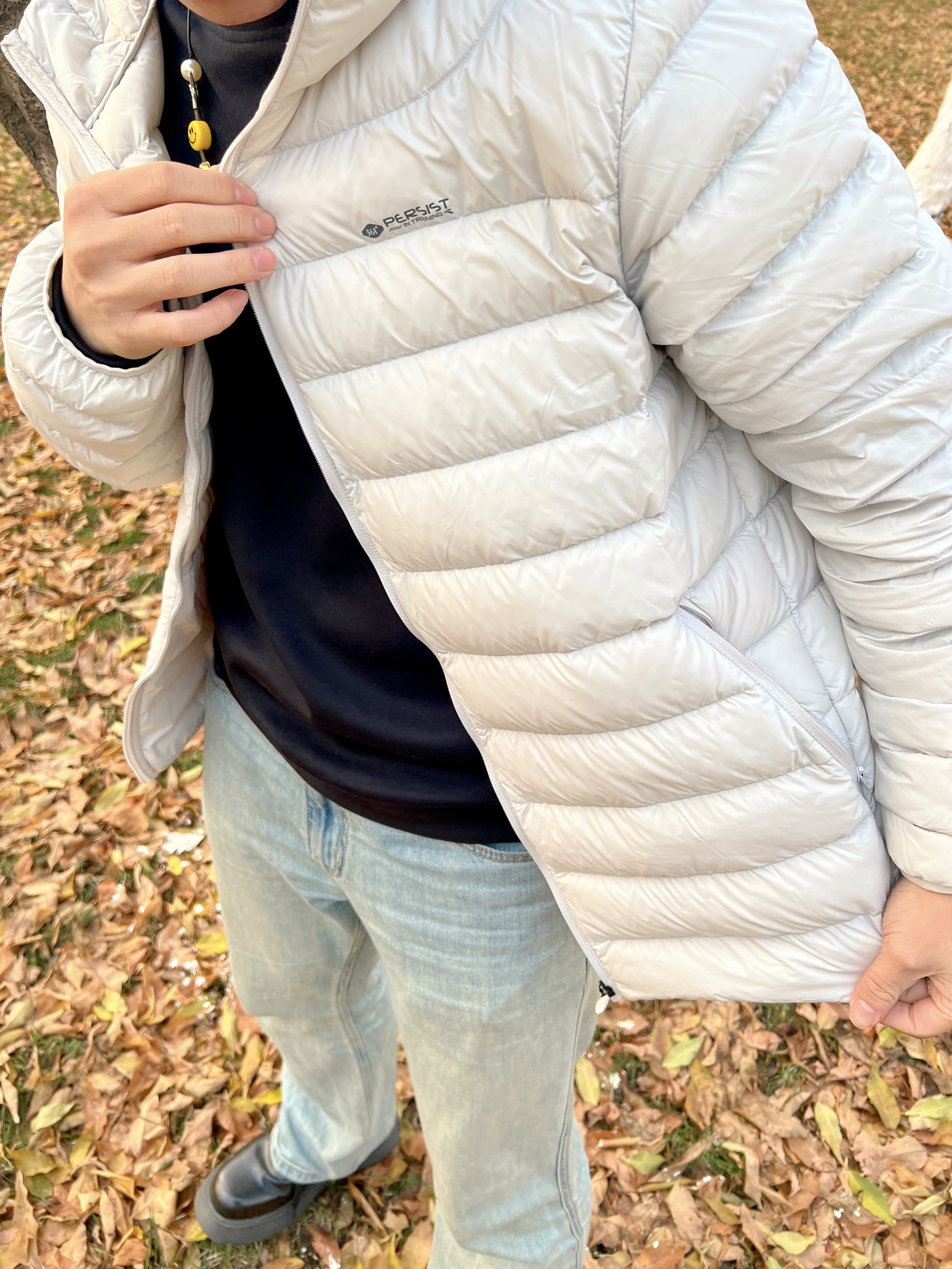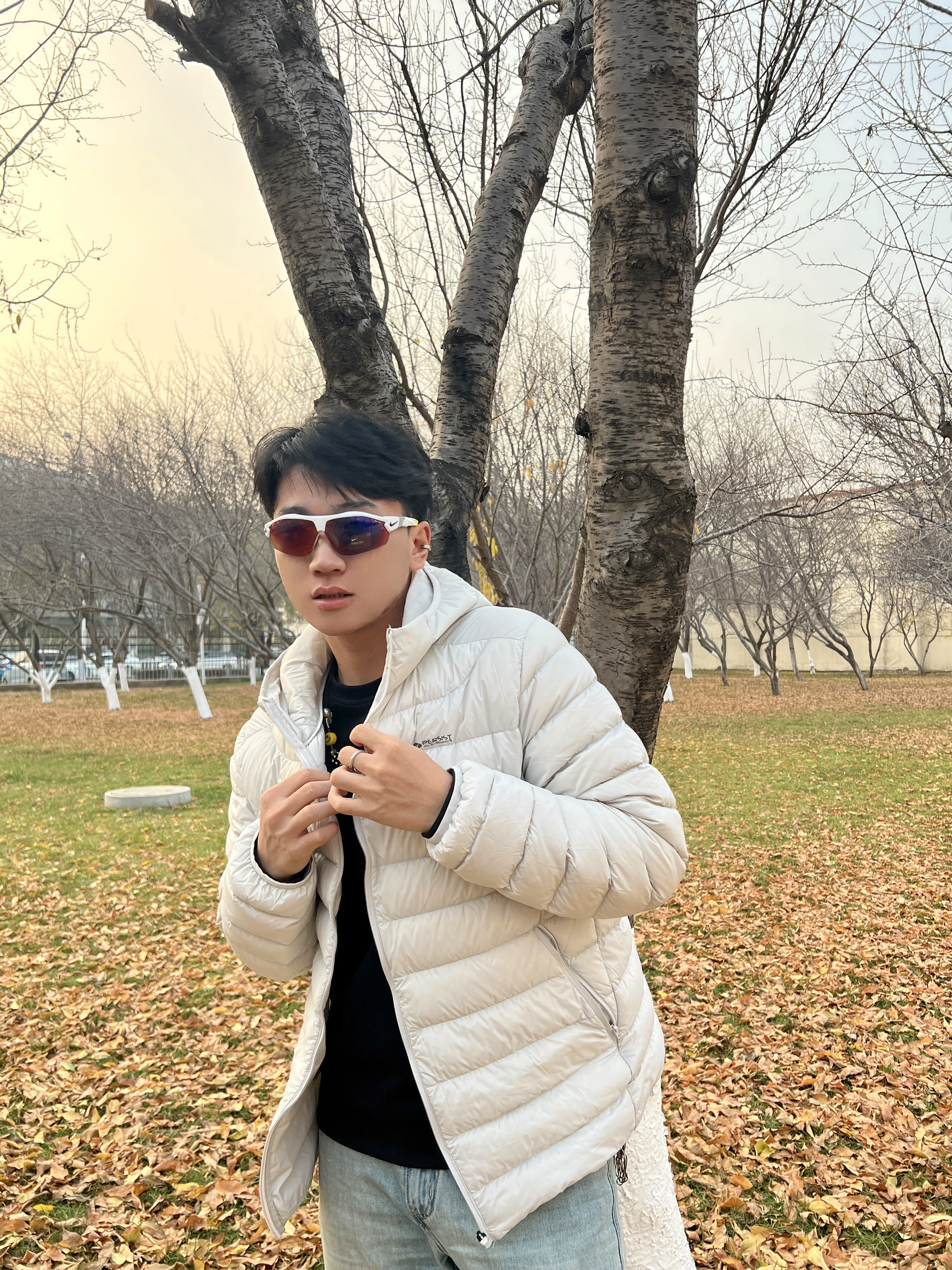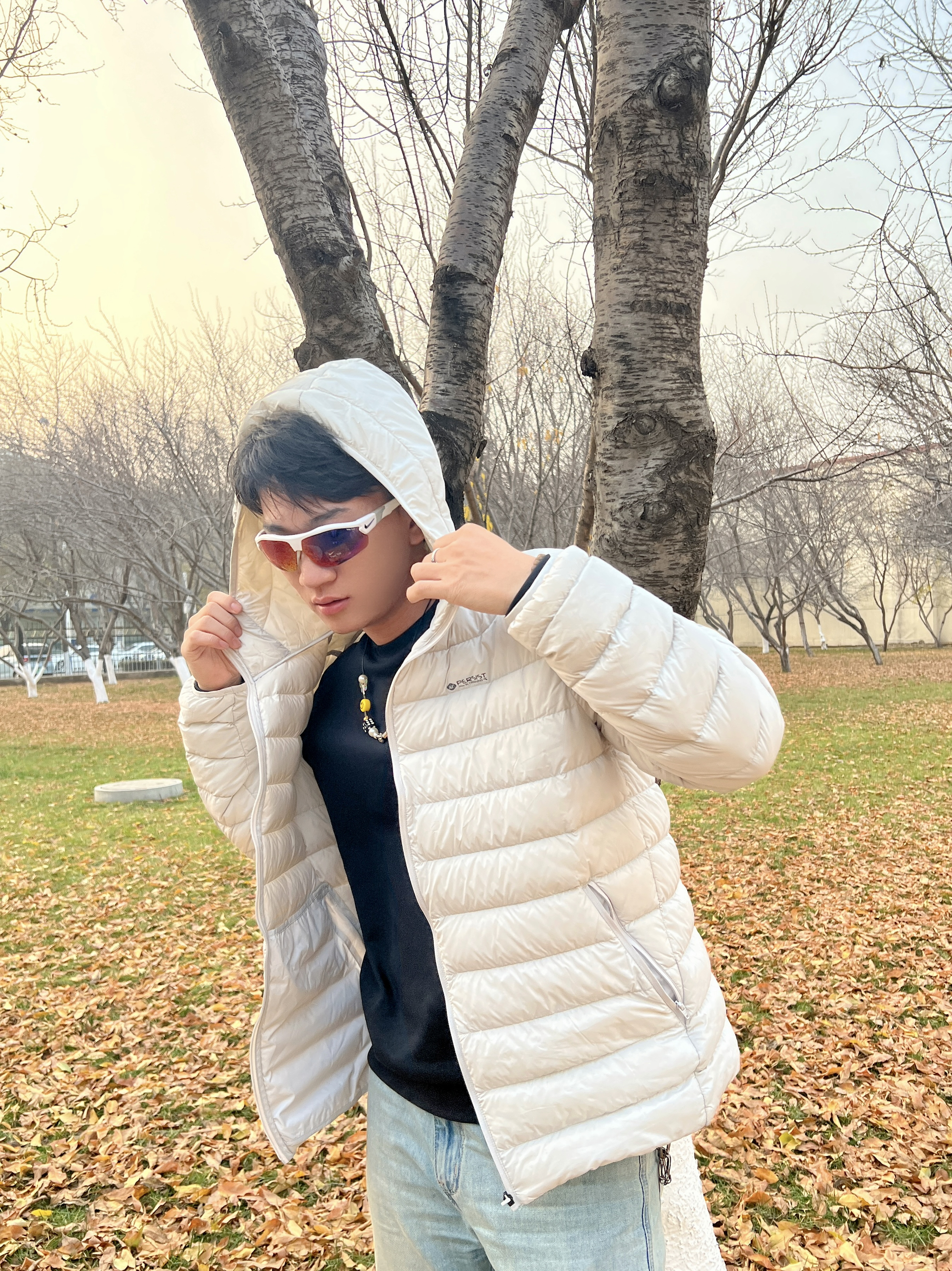 冬天温度稍高的时候 一件轻薄羽绒服太🉑️喽 穿上简约百搭 颜色也比较耐脏 搭配一件牛仔裤和骑行镜子