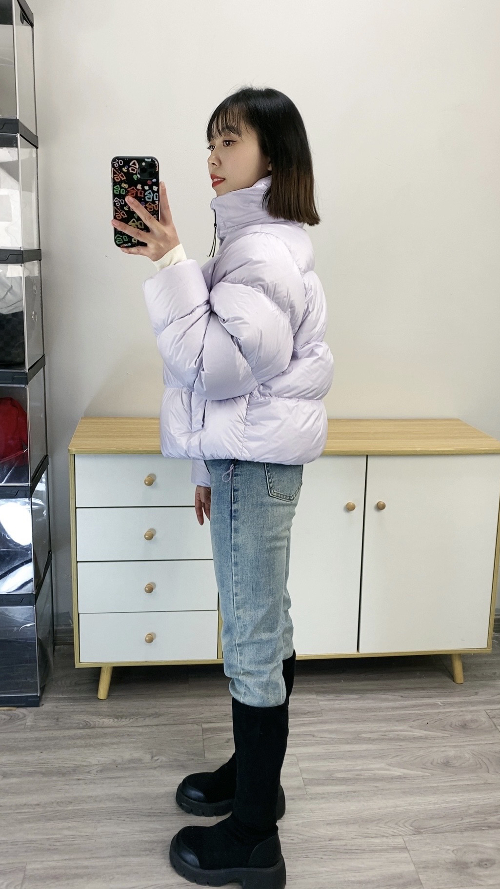 155,86斤穿的s码,整体是比较合身的,袖子刚刚好,因为是短款,衣长对我这个小个子也是合适哒 官方说是银色,实物更偏浅紫色,还是个男女同款的 面料舒服也好打理,下半身搭配紧身牛仔裤,绝了!