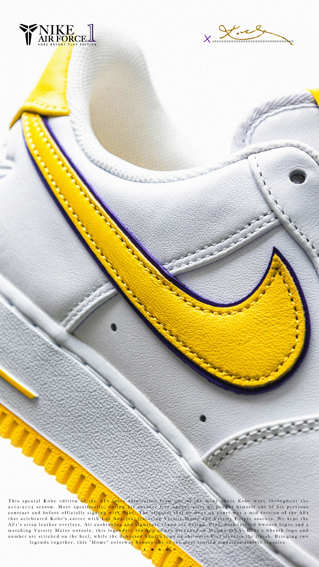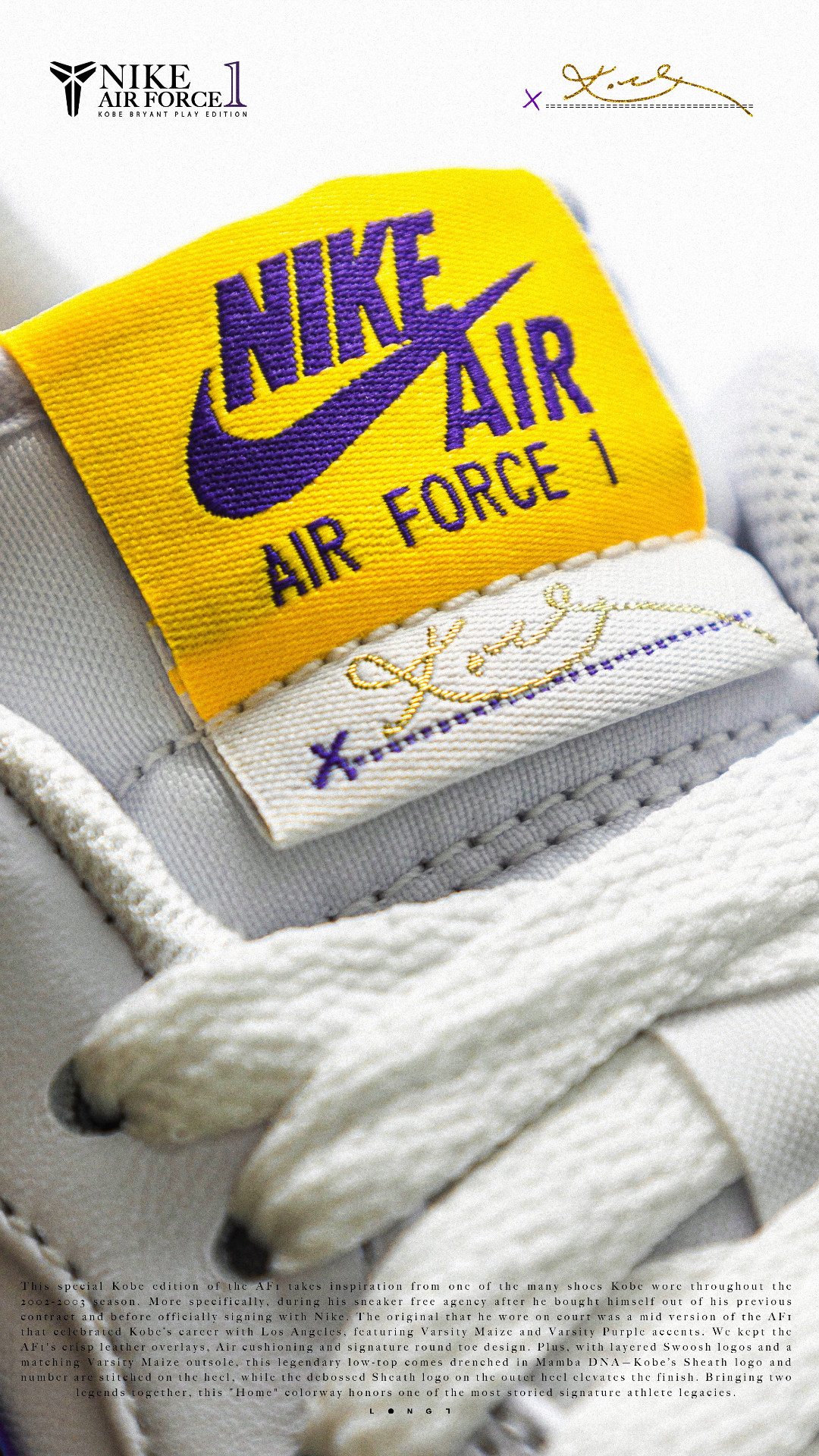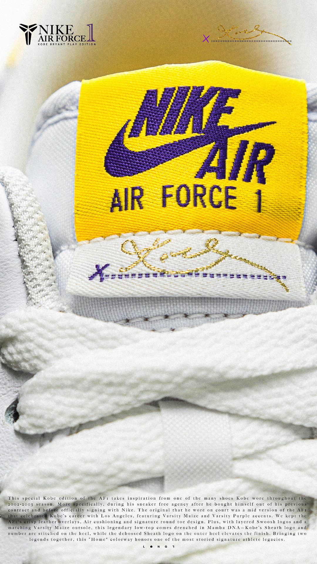 📦独家经典📦 👟:Nike Air Force 1 Low Kobe PE 以Kobe在乱穿鞋时期上脚的Air Force 1 Mid PE为灵感打造的低帮版本,双层的Swoosh设计搭配皮革封边的特殊处理,鞋舌上也增加了带有Kobe签名的特殊tag,后跟的Kobe logo以及8号刺绣也像那个特殊的乱穿鞋时期致敬,随鞋附赠了紫金双色的鞋带,只是1299的发售价还是略显高昂~ #af1科比 ...