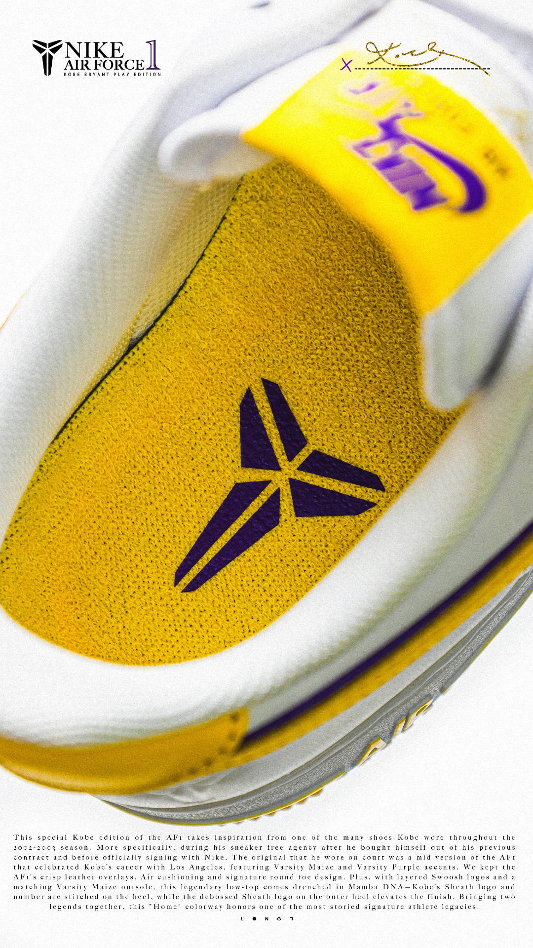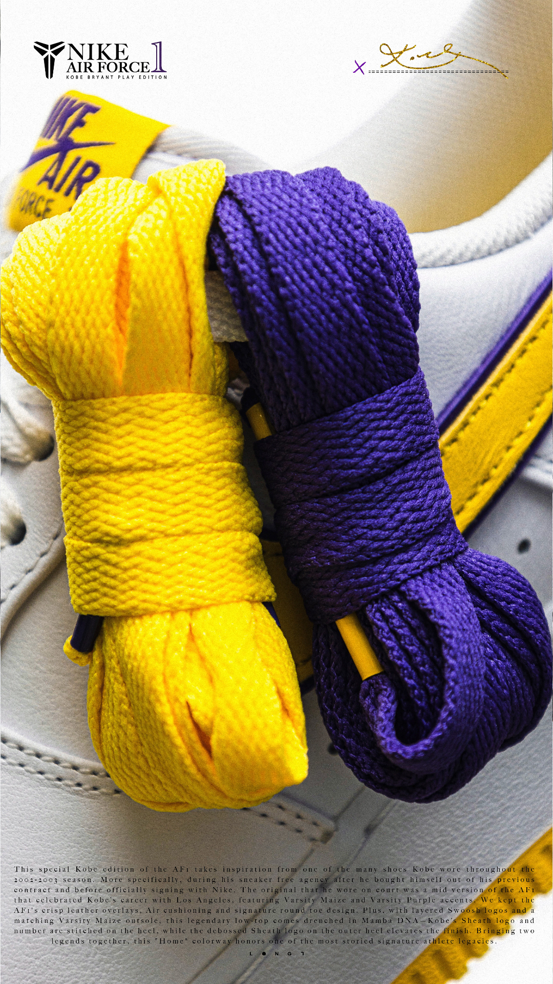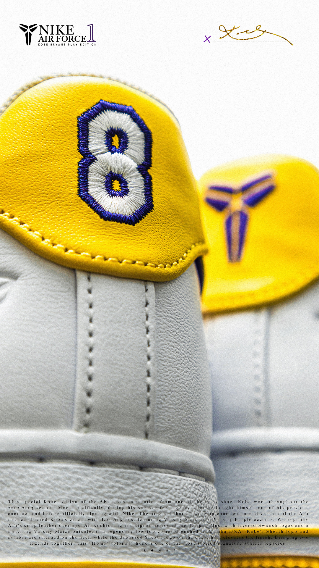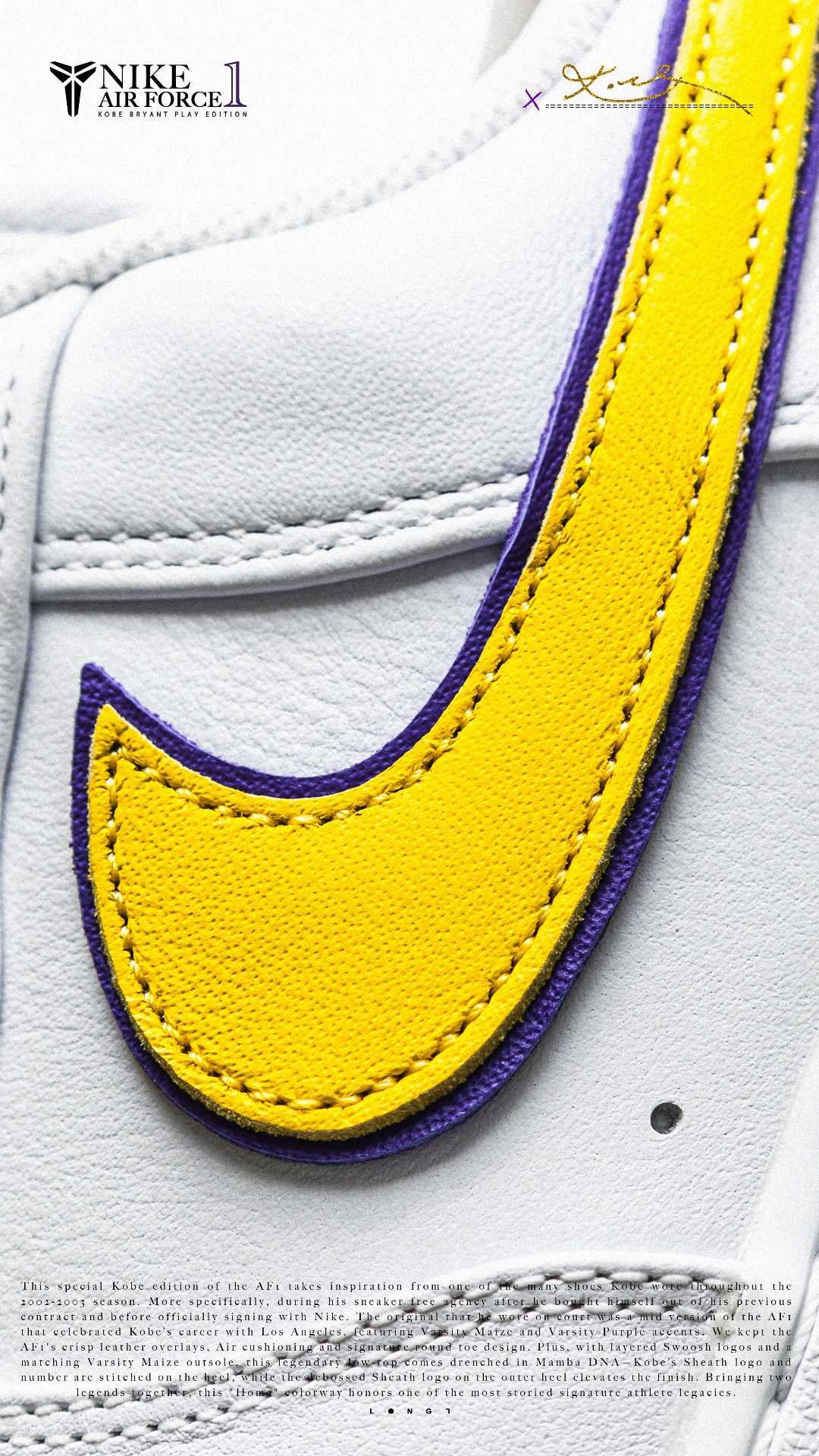 📦独家经典📦 👟:Nike Air Force 1 Low Kobe PE 以Kobe在乱穿鞋时期上脚的Air Force 1 Mid PE为灵感打造的低帮版本,双层的Swoosh设计搭配皮革封边的特殊处理,鞋舌上也增加了带有Kobe签名的特殊tag,后跟的Kobe logo以及8号刺绣也像那个特殊的乱穿鞋时期致敬,随鞋附赠了紫金双色的鞋带,只是1299的发售价还是略显高昂~ #af1科比 ...
