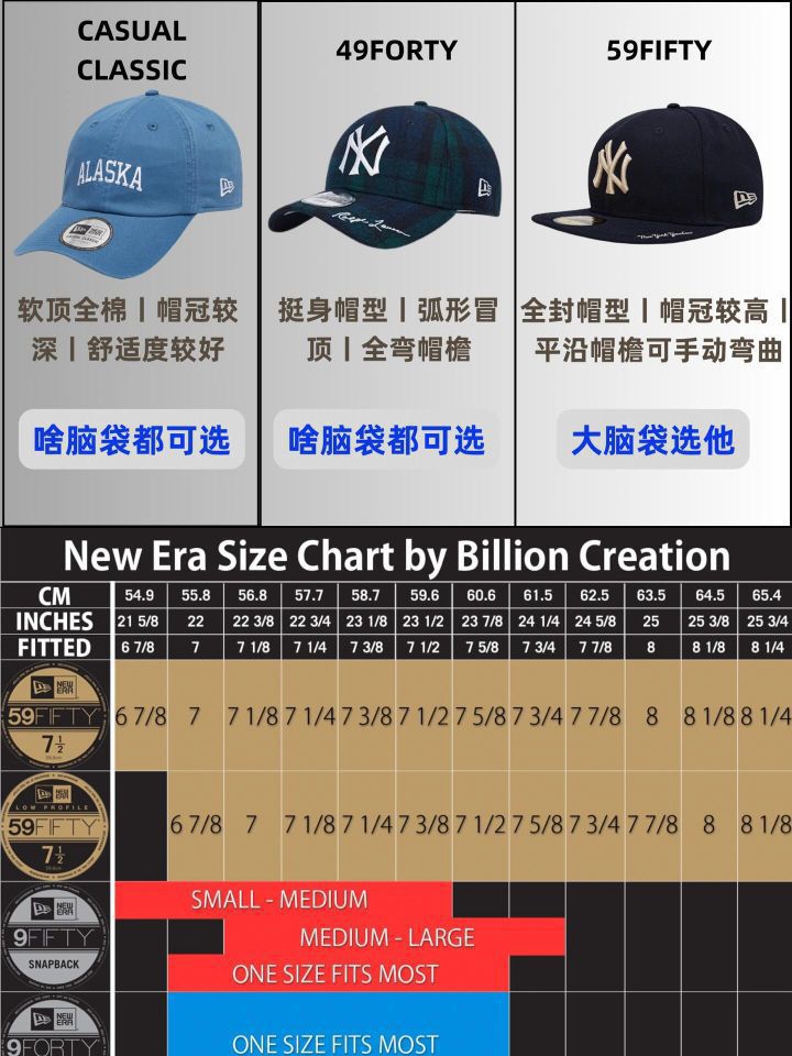 今天来给大家盘一下New Era的9种帽型差别🧢,看完不管买棒球帽还是平沿帽都不再迷茫 1.9TWENTY:软顶棒球帽帽冠在New Era棒球帽里属于偏浅一类,背后有调节扣设计,头围较小可以选他 2.9FORTY:此系列硬顶帽偏多帽冠较深,立体感比较强,大头宝和圆头宝可以选它 3.9FIFTY:挺身帽型扁平帽檐,此系列较多是与球队的合作款式送男友非常合适 4.59FIFTY Low...