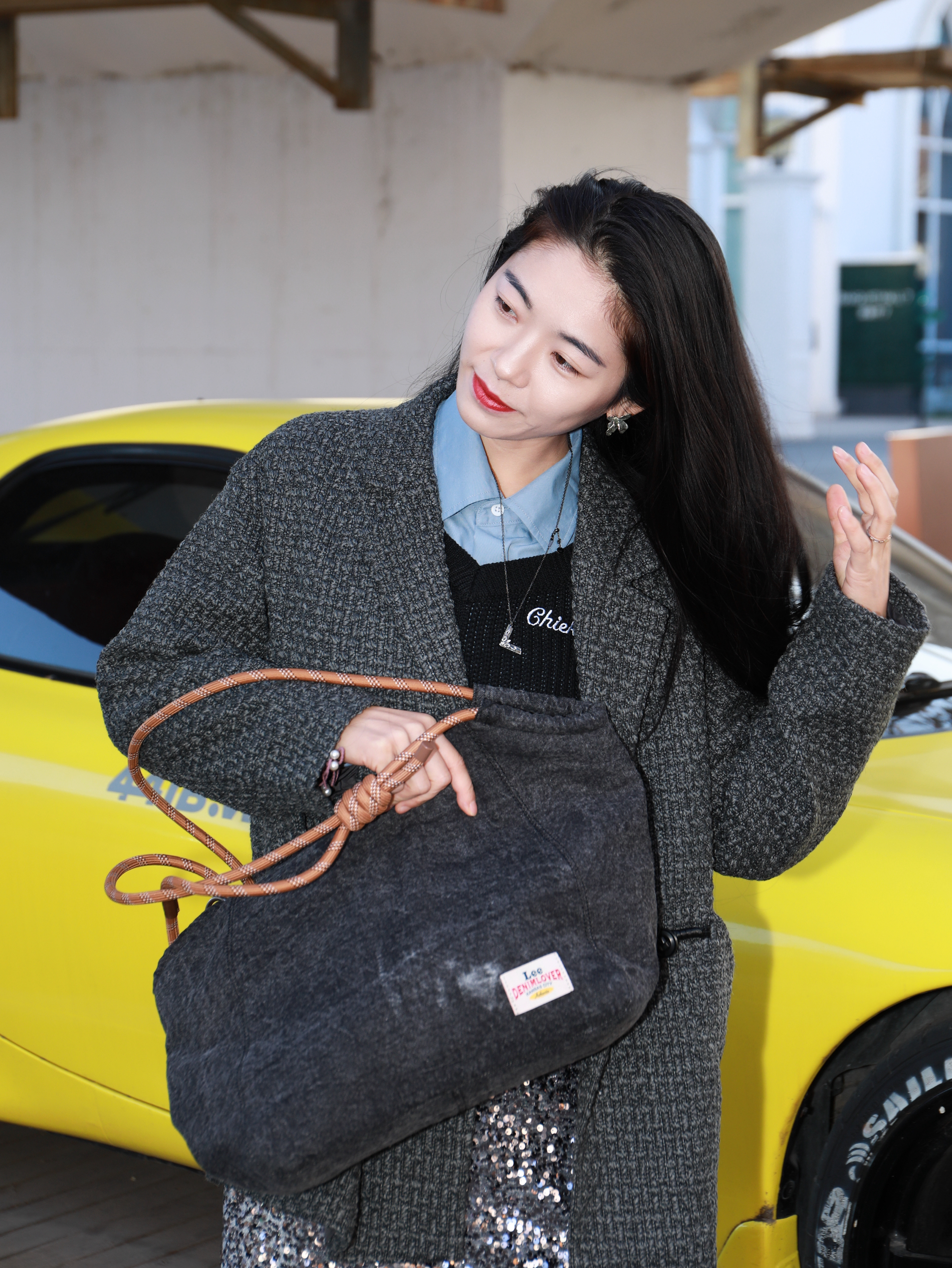 虽然忘带钱包 但是我背了我的新包 秋冬穿搭我喜欢这种稍微复古简约一点的叠穿 给人的感觉是比较高智韩系的 所以包包会更偏爱这种Lee单肩包 这种包型挺大的 感觉走哪都能hold住,容量很大 而且是那种很有质感的耐磨牛仔布 平时搭起来也比较立挺 不会稍微一装点重物就扁扁塌塌的 日常搭起来还有点小韩系 上班通勤圣诞约会都可以试试哦