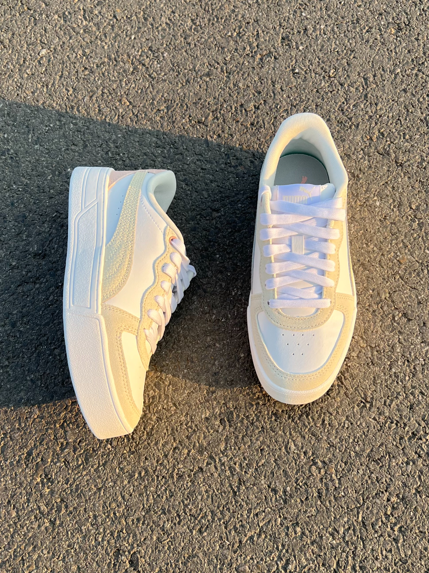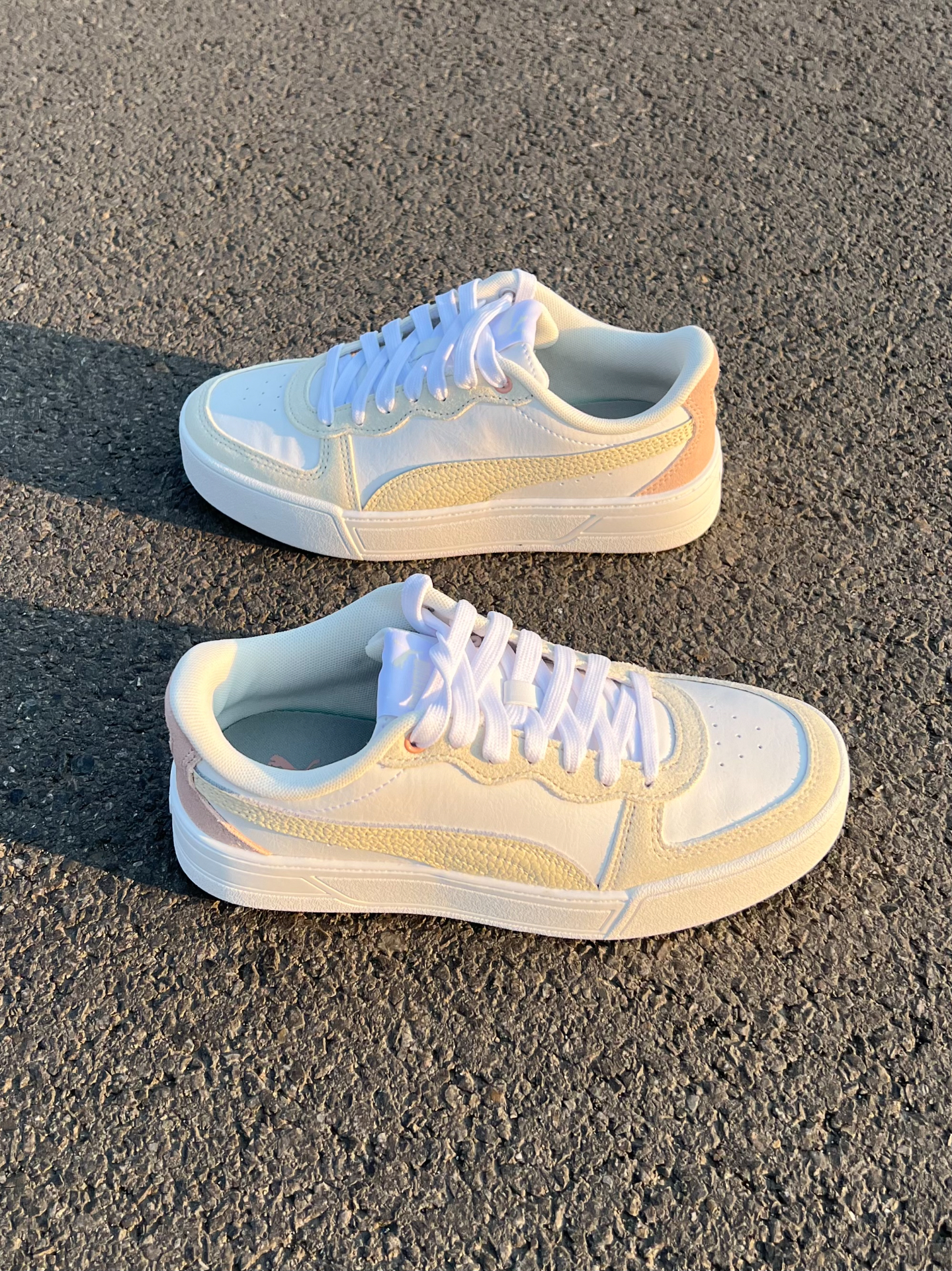 好少女心的一双小板鞋啊 鞋身配色很温柔,白色➕杏色 粉色点缀 结合秀气的鞋型 平时搭配牛仔裤就合适 新年好鞋又找到啦 鞋身有少许的翻毛皮鞋面,缺点就是虽然有质感,但是下雨天不太能穿,还不能用硬毛刷打理 #双旦接头礼物 #复古球鞋穿过冬 #2024得物年度鞋王 #舍不得扔掉的鞋 #秋冬鞋柜大焕新 #长期主义好鞋 #休闲look必备潮鞋 #关于秋冬的买买买