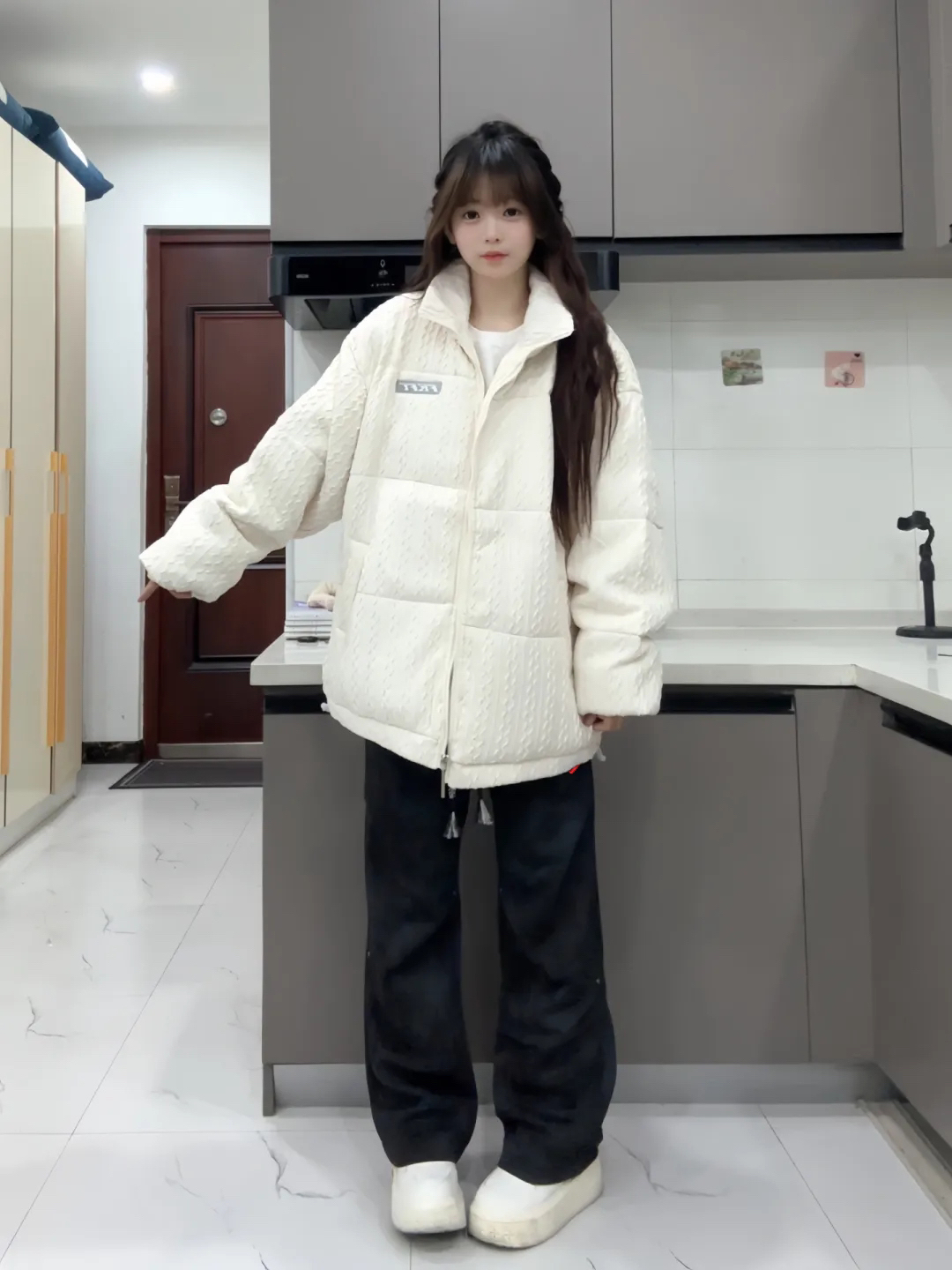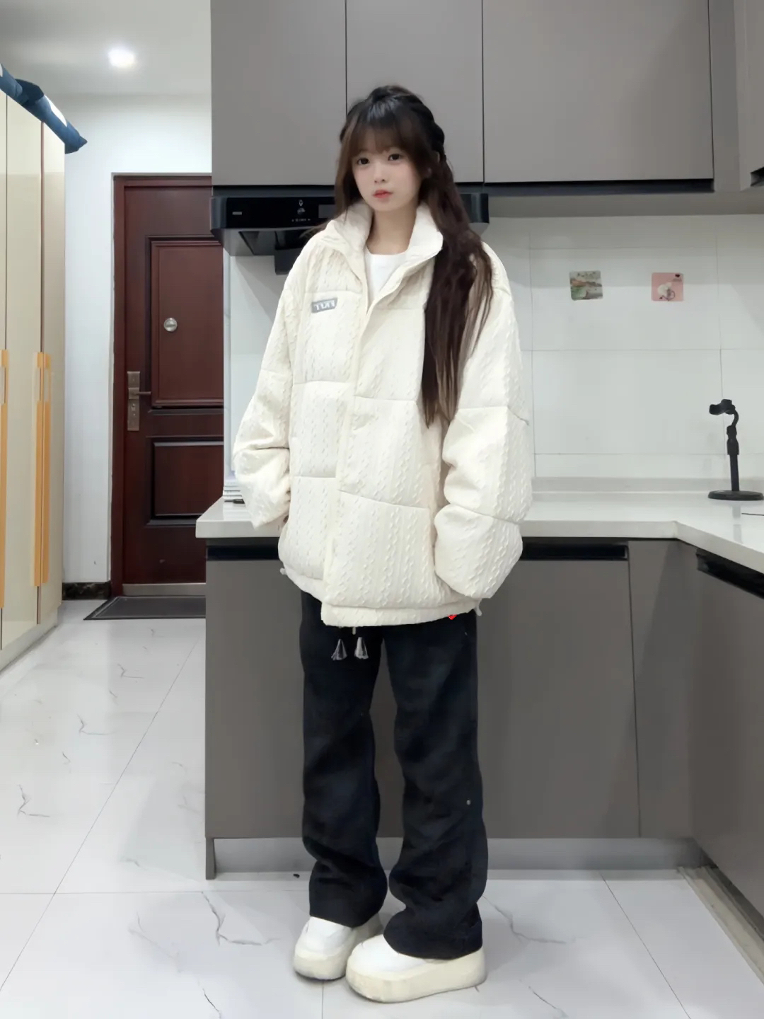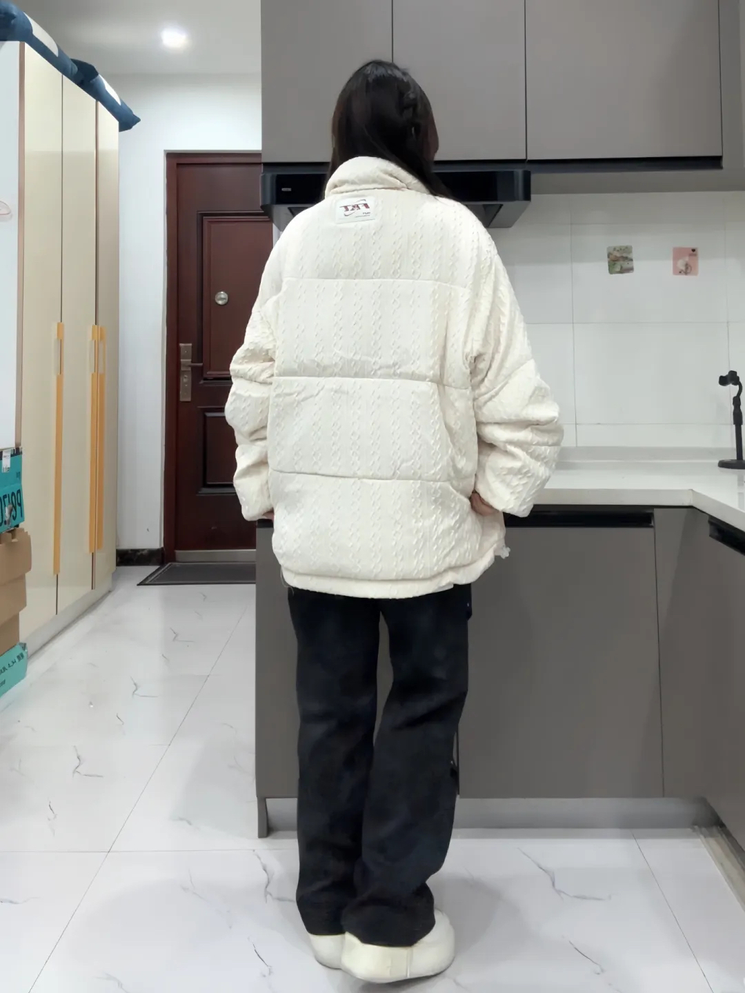 天气越来越冷了,今天的ootd是白色棉服搭配脏脏休闲裤,黑色百搭不挑人,两侧铆钉的褶皱设计,细节感拉满了,一整个不费力的潮流感轻松拿捏