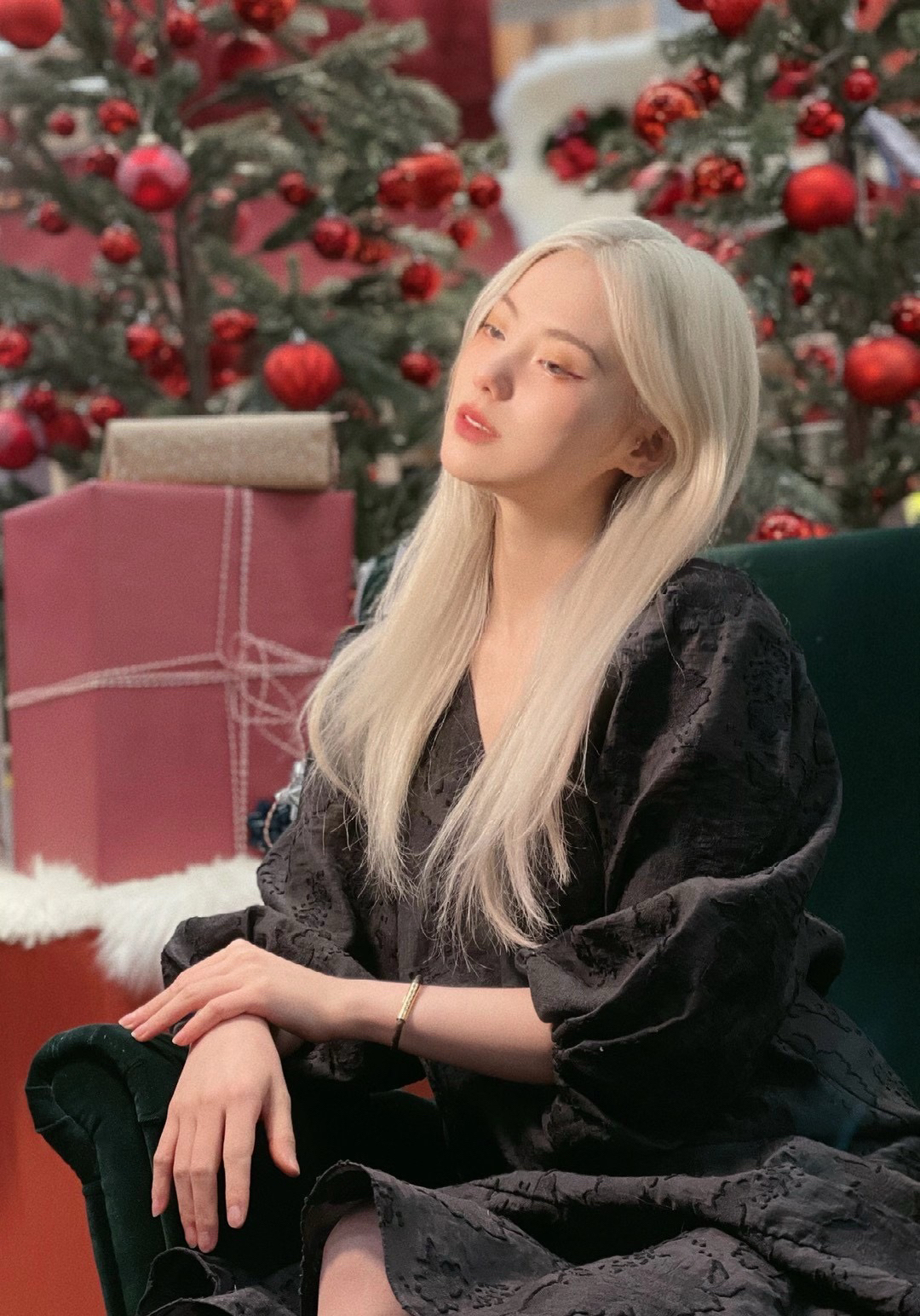 All black穿搭太酷啦 在红配绿的圣诞氛围中好出片 长裙配长靴真的非常酷