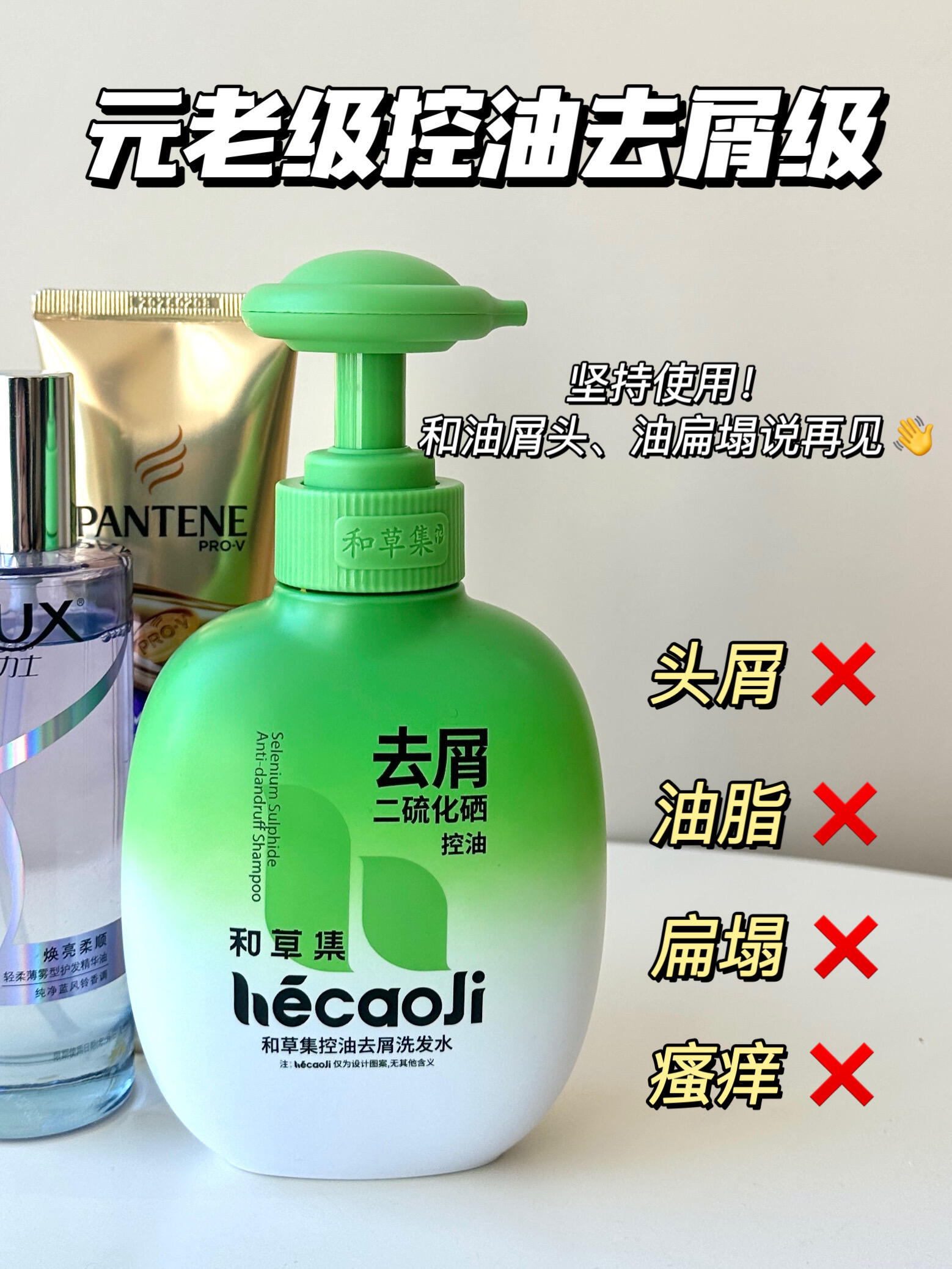 油屑头和油扁塌的姐妹应该懂我 稍微出点汗头皮就油得要鼠还贴头皮😤 每天早上洗完头发还没到晚上 随手一扒拉就有好多头屑掉下来跟下雪似得 出去玩又不敢穿深色的衣服😭 不然肩上还有领子上都是头屑好尴尬啊😫 这段时间在网上用心做了好多功课 都说这个和草集控油去屑洗发水好用 买回来用了下让我眼前一亮🤩 哇趣!洗完之后头皮感受到了前所未有的清爽感 仔细研究了下它的成分 里面有0.8%二硫化硒和PCA锌+胶...
