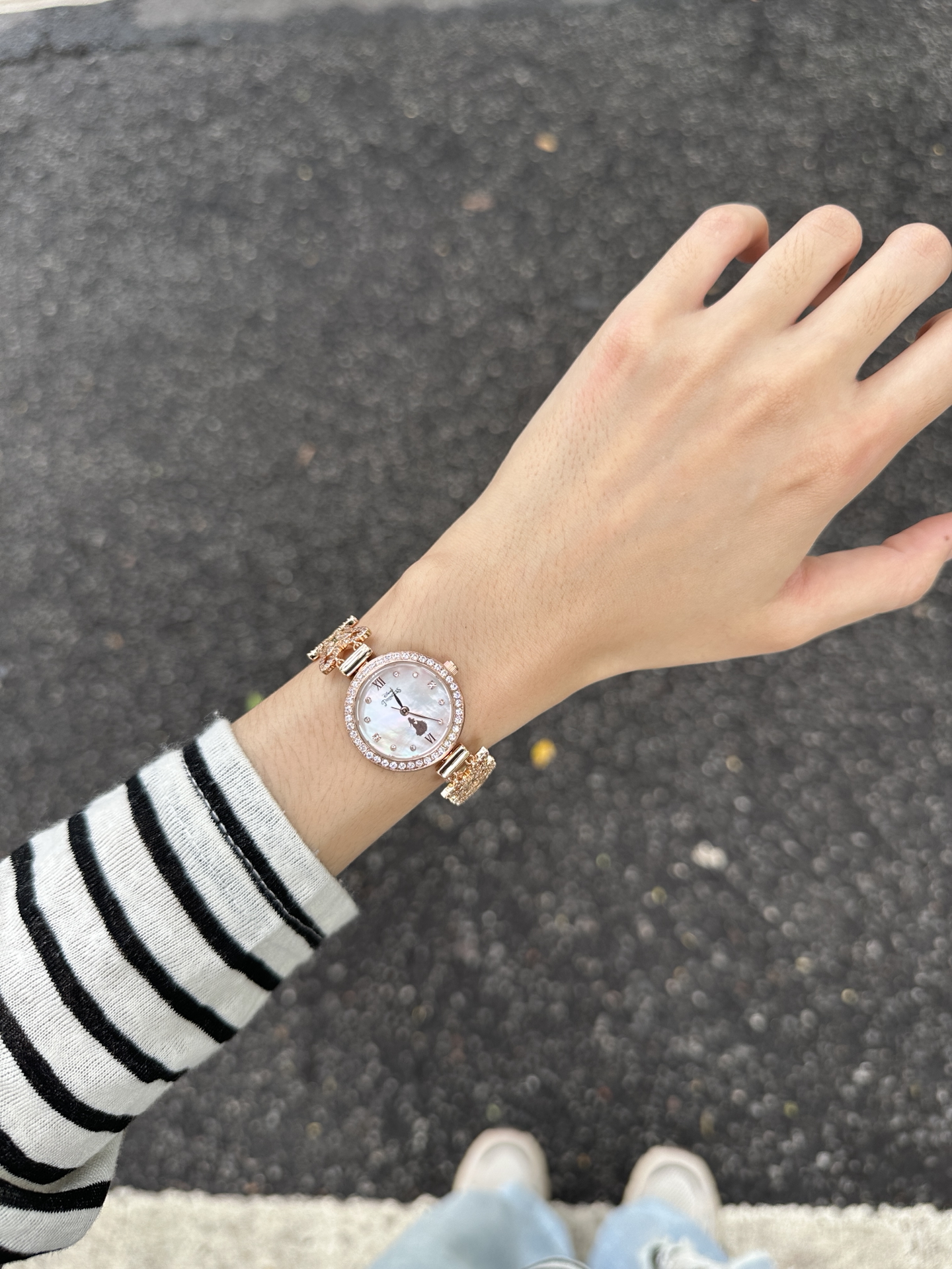 是闪闪的人鱼手表呀 贝母表盘搭配鱼尾设计 我觉得好有特点 日常佩戴也比较的百搭 秋冬天随便搭搭也很好看