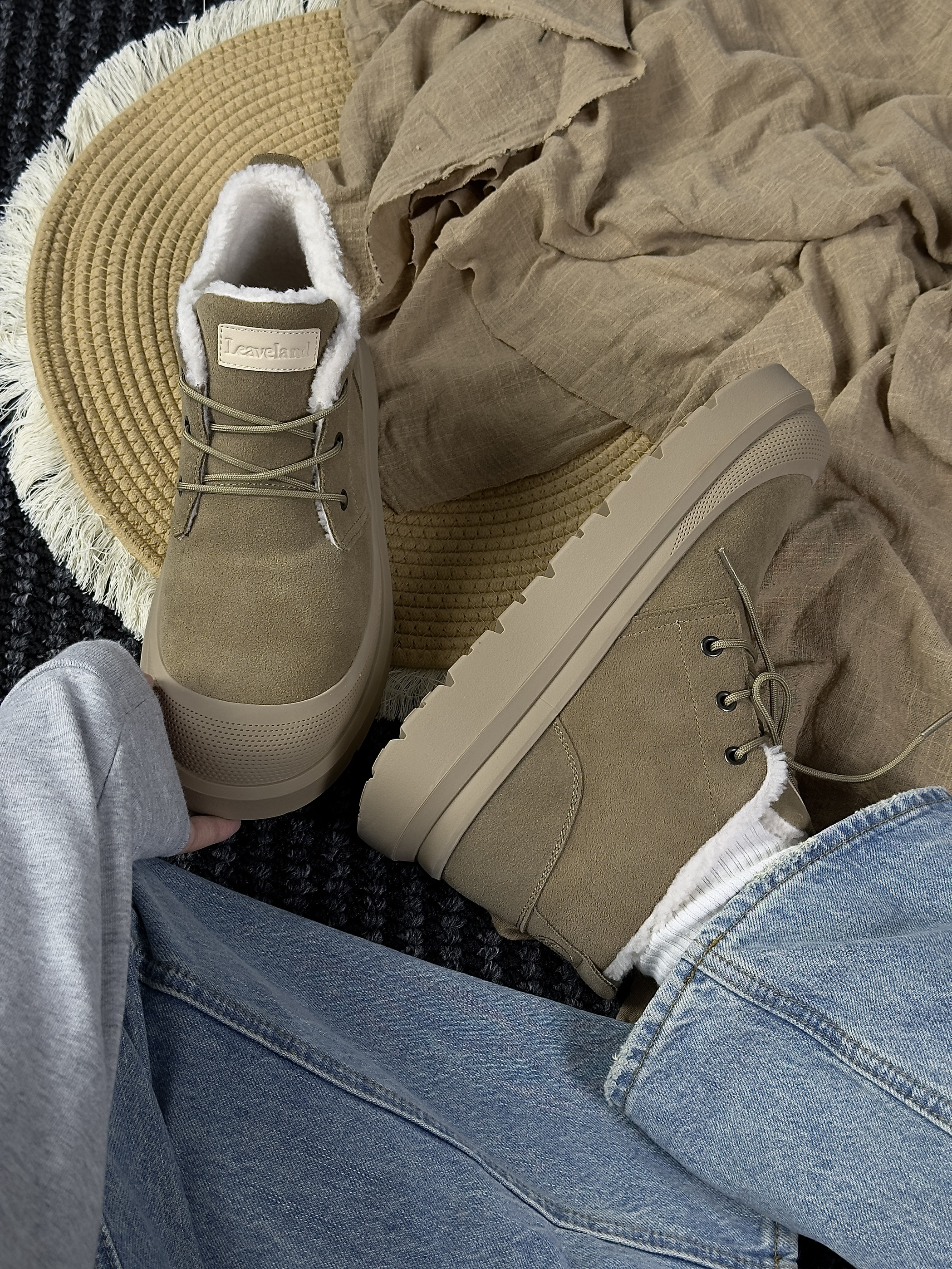 hello,这里是陈白羊🐑! 每年一到冬天❄️就是冻手冻脚冷的不行~ 早早的给自己准备了LEAVELAND雪地靴 今年终于可以温暖过冬了☃️☃️, 卡其色的鞋身与麂皮材质的组合 复古感一下子就上来了 配色好适合冬天的说 内里全是厚实 软乎乎的绒毛💭 即使穿个薄袜子出门也不会感到冷 中底还做了加厚 增高的同时居然不笨重 日常通勤拿去搭牛仔裤和灰色卫裤都吼吼看…