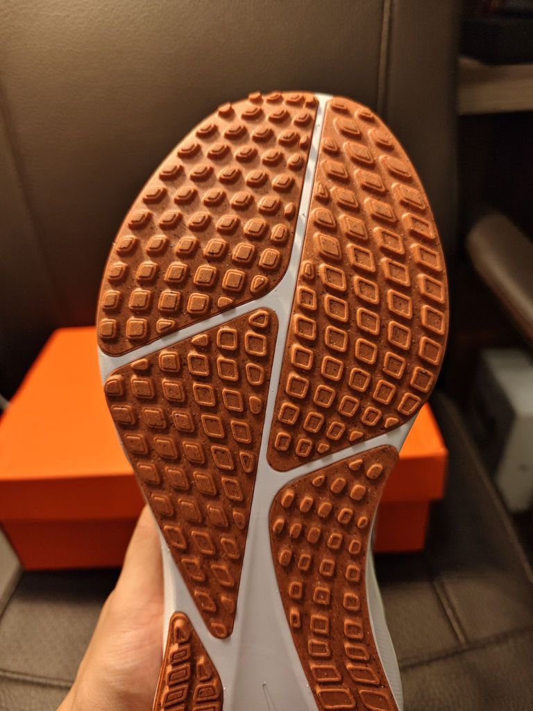 一个鞋子历史已经如此悠久,想必一定有点东西,但是看这设计真的妥妥通勤风,有一说一支撑性还是不错的,搭载ZoomX,鞋底防滑耐磨也是拉满,钉格通铺鞋底用料也够扎实,鞋身重量一般,鞋面双层网面透气一般,但是足够应对秋冬季的慢跑,毕竟他是钩子旗下最为正统的稳定支撑系跑鞋!