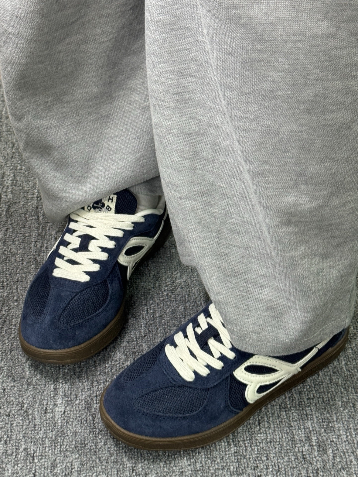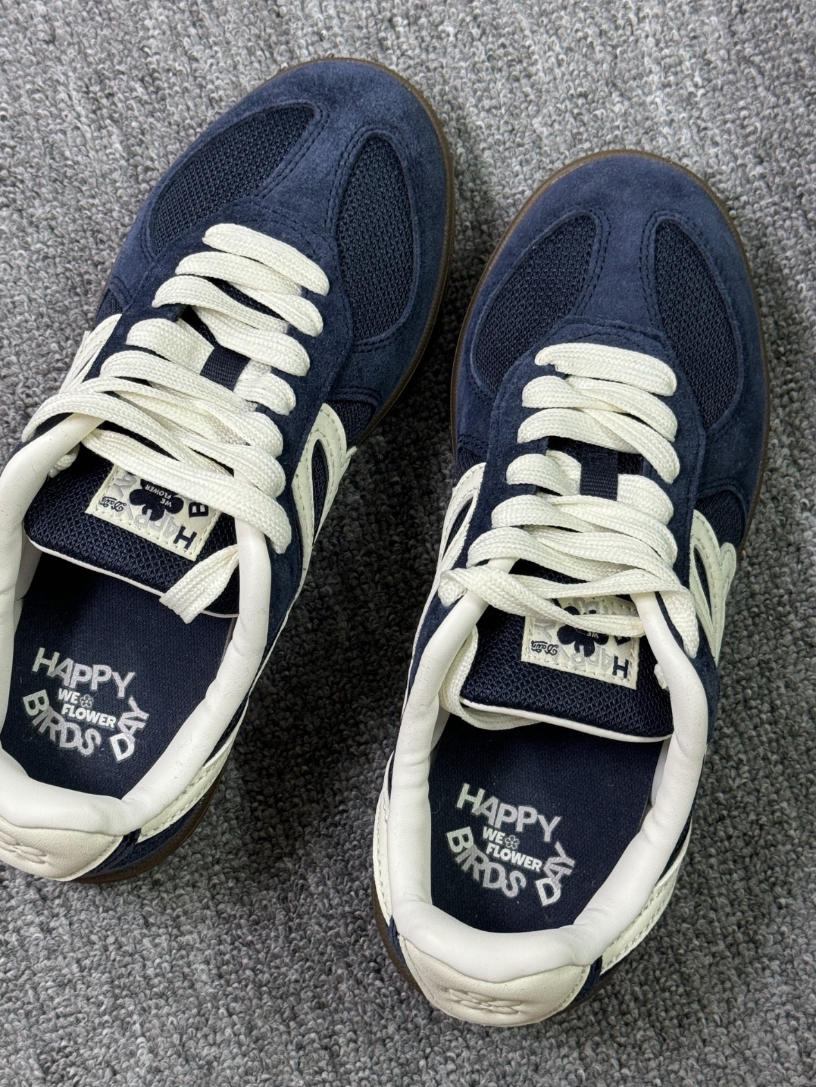 鞋子分享—— HBD✖️WEFLOWER联名德训板鞋 鞋子侧边图案设计独特对应品牌flower➰➰ 鞋子整体藏蓝色与棕色的搭配🔵🟫再带上一丝丝奶白色的点缀使鞋子略显高级,出街彰显个性品味搭配休闲牛仔裤或者美式卫裤懒惰风氛围轻松拿捏 图源网络侵删