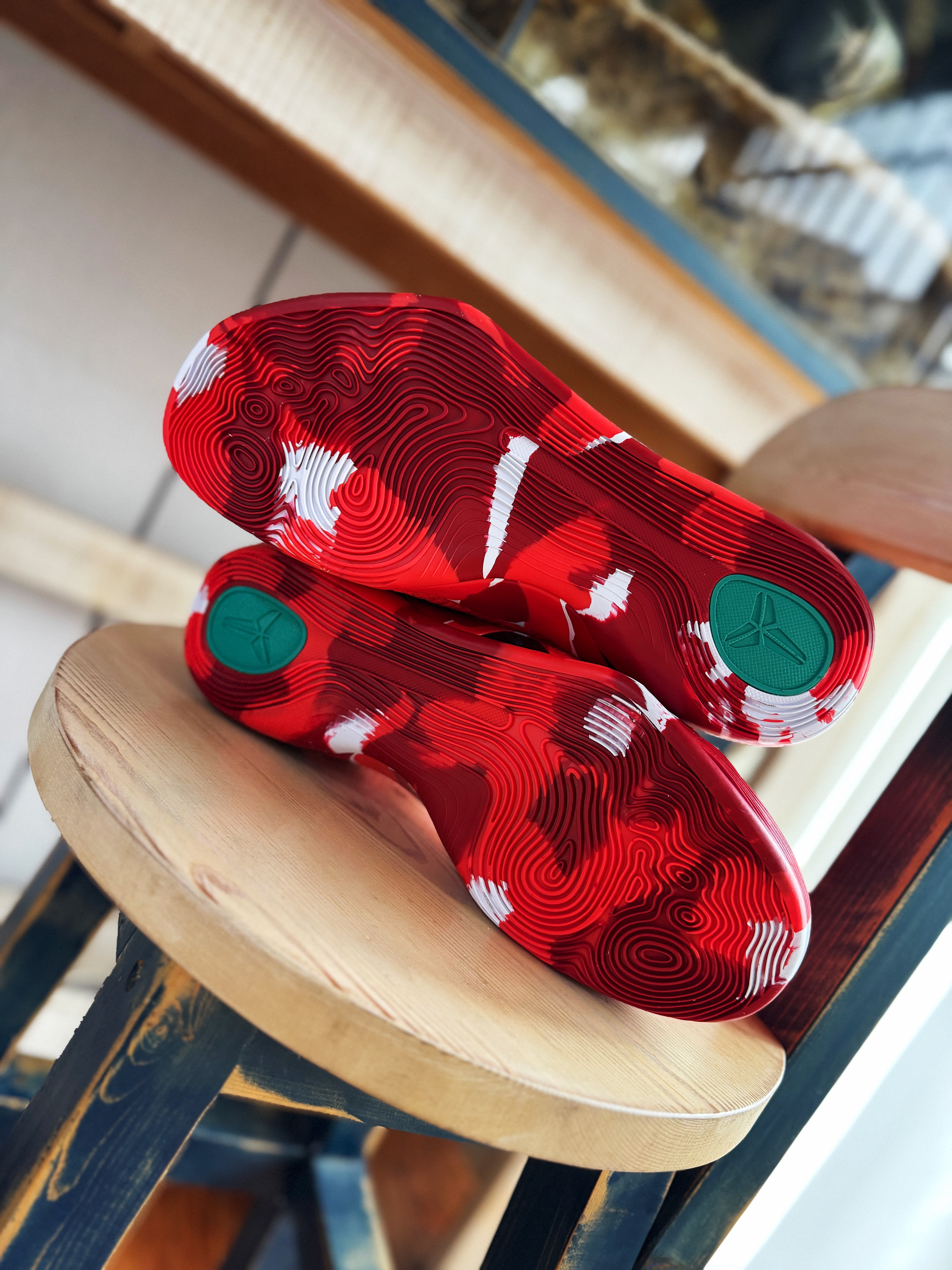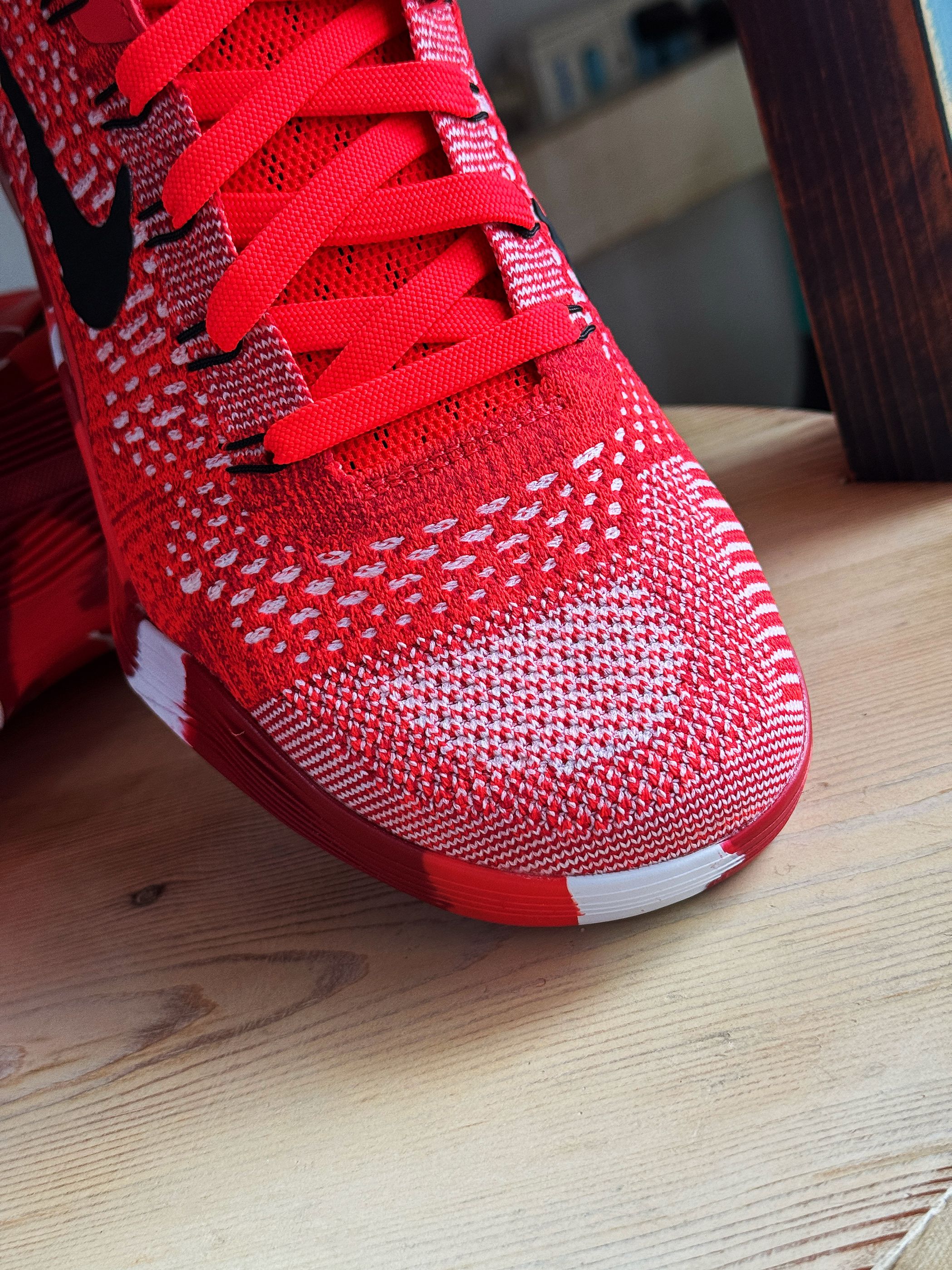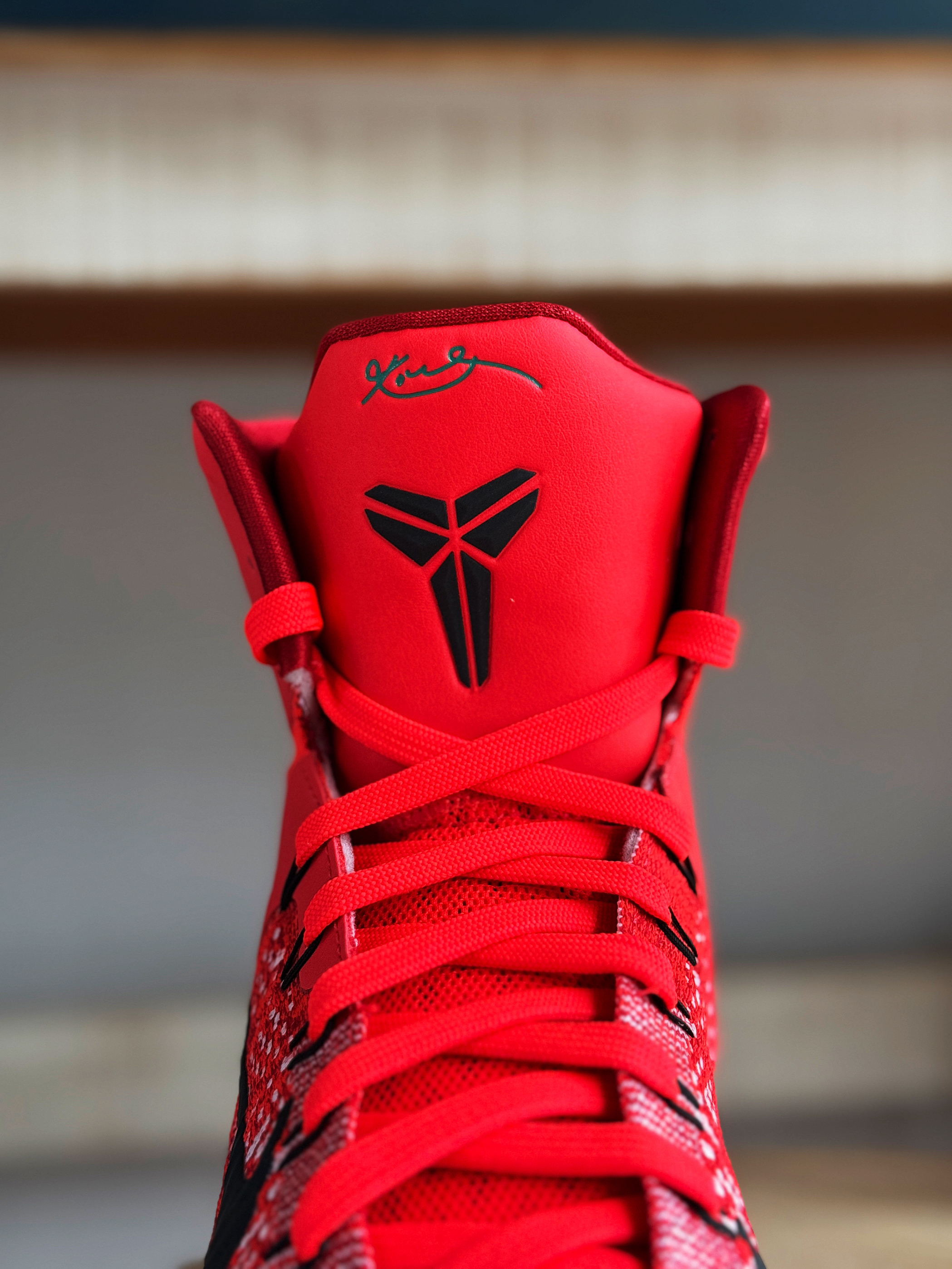 科比9高帮我是真没买过 元年发售只选择了低帮!这次Kobe 9 Elite Christmas时隔十年再次复刻 还是挺有意义的! 鞋子整体大面积红色呈现 圣诞气氛感十足!中底迷彩图案点缀 颜值其实还是不错 虽然我更喜欢低帮!跟之前发售的白色“Halo”一样 将元年Lunarlon科技改为React 脚感还是不错的! 鞋子蛮帅 但高帮穿脱确实也麻烦!小短腿和粗腿真的就算了 没性价比 有情怀的等等...