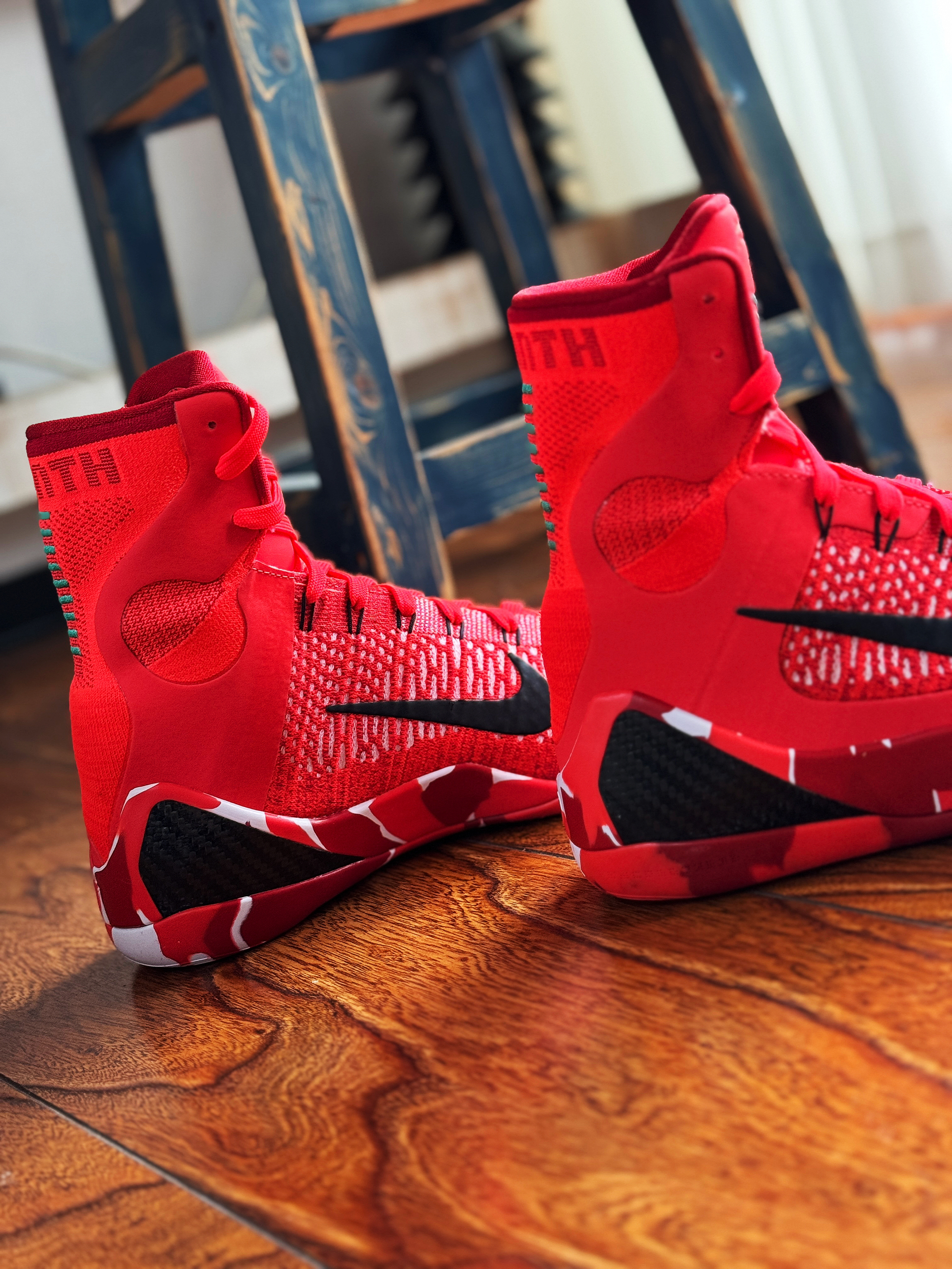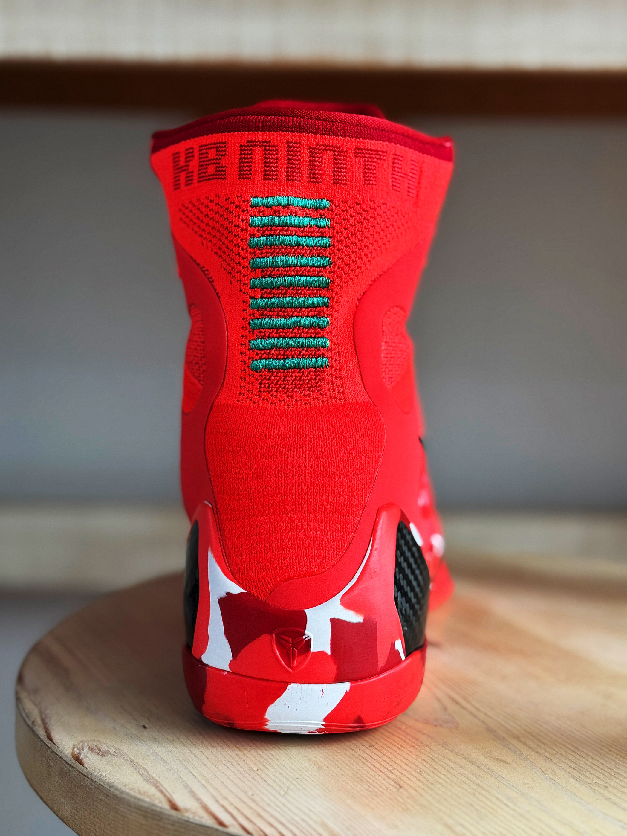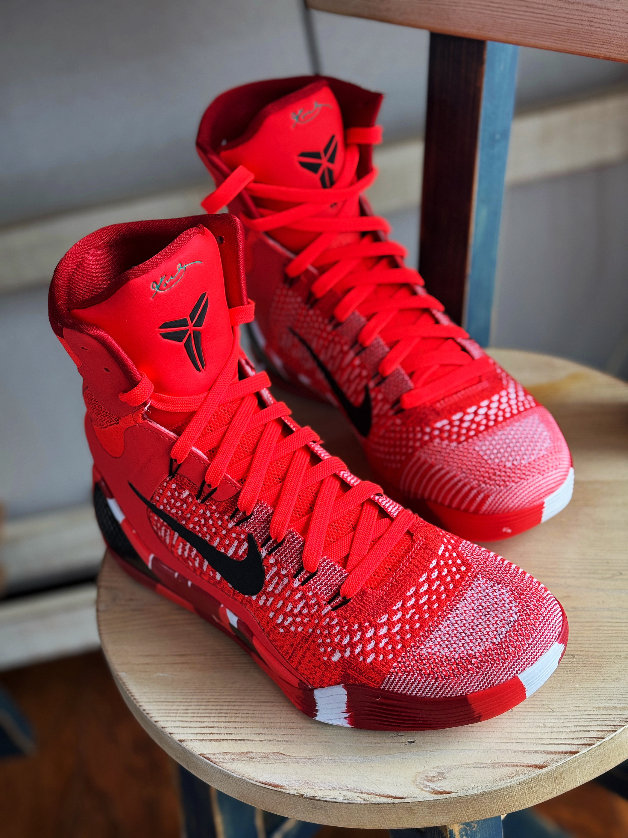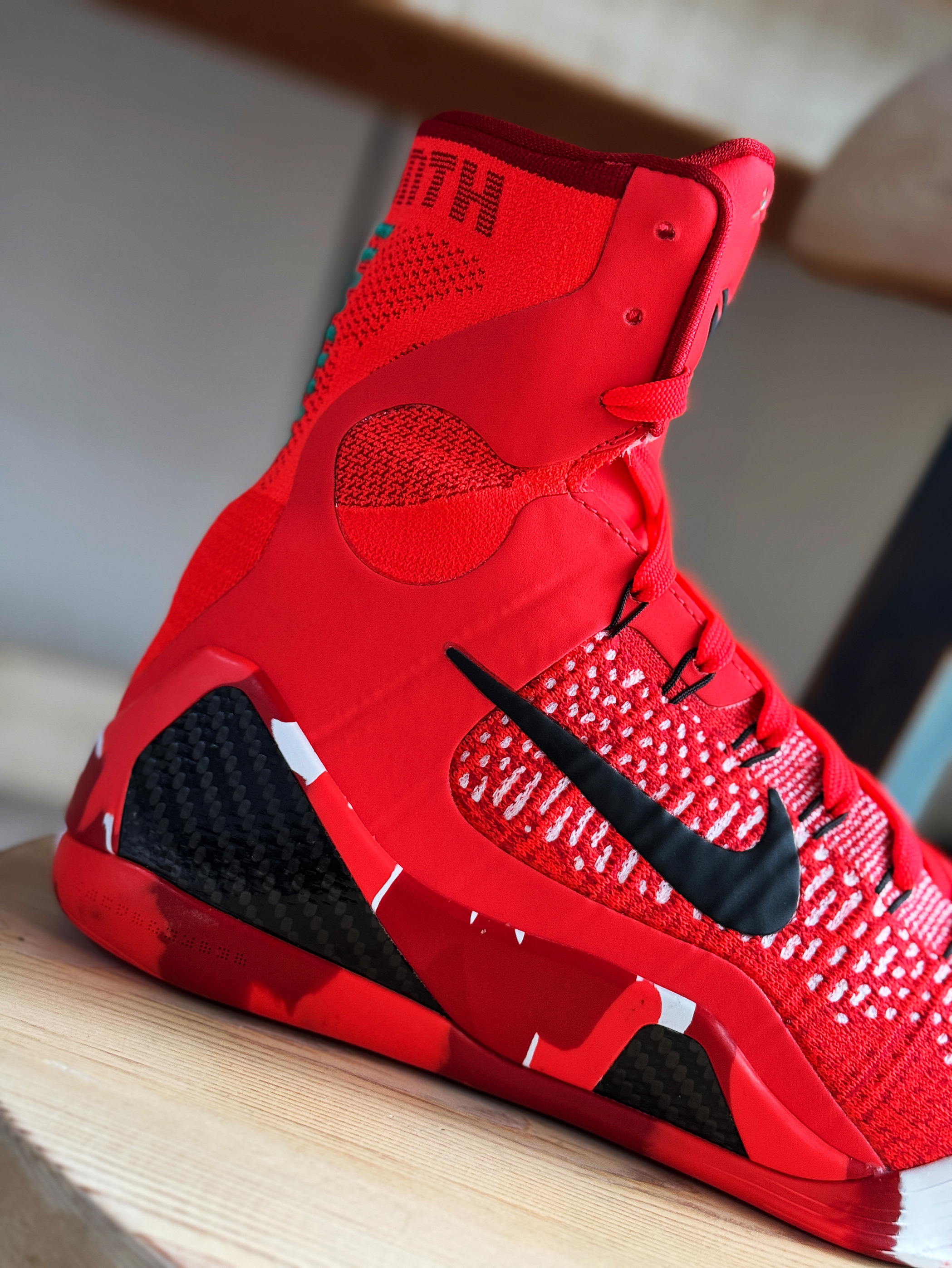 科比9高帮我是真没买过 元年发售只选择了低帮!这次Kobe 9 Elite Christmas时隔十年再次复刻 还是挺有意义的! 鞋子整体大面积红色呈现 圣诞气氛感十足!中底迷彩图案点缀 颜值其实还是不错 虽然我更喜欢低帮!跟之前发售的白色“Halo”一样 将元年Lunarlon科技改为React 脚感还是不错的! 鞋子蛮帅 但高帮穿脱确实也麻烦!小短腿和粗腿真的就算了 没性价比 有情怀的等等...