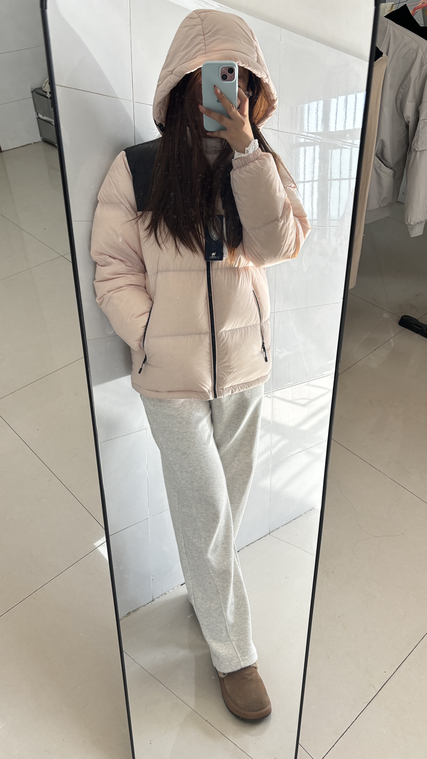 颜色挺好看的,双拼颜色,很高级很耐看,而且粉色是亮亮的,不是发灰的那种,充绒量很饱满,穿着很保暖! 简直是大学生的神