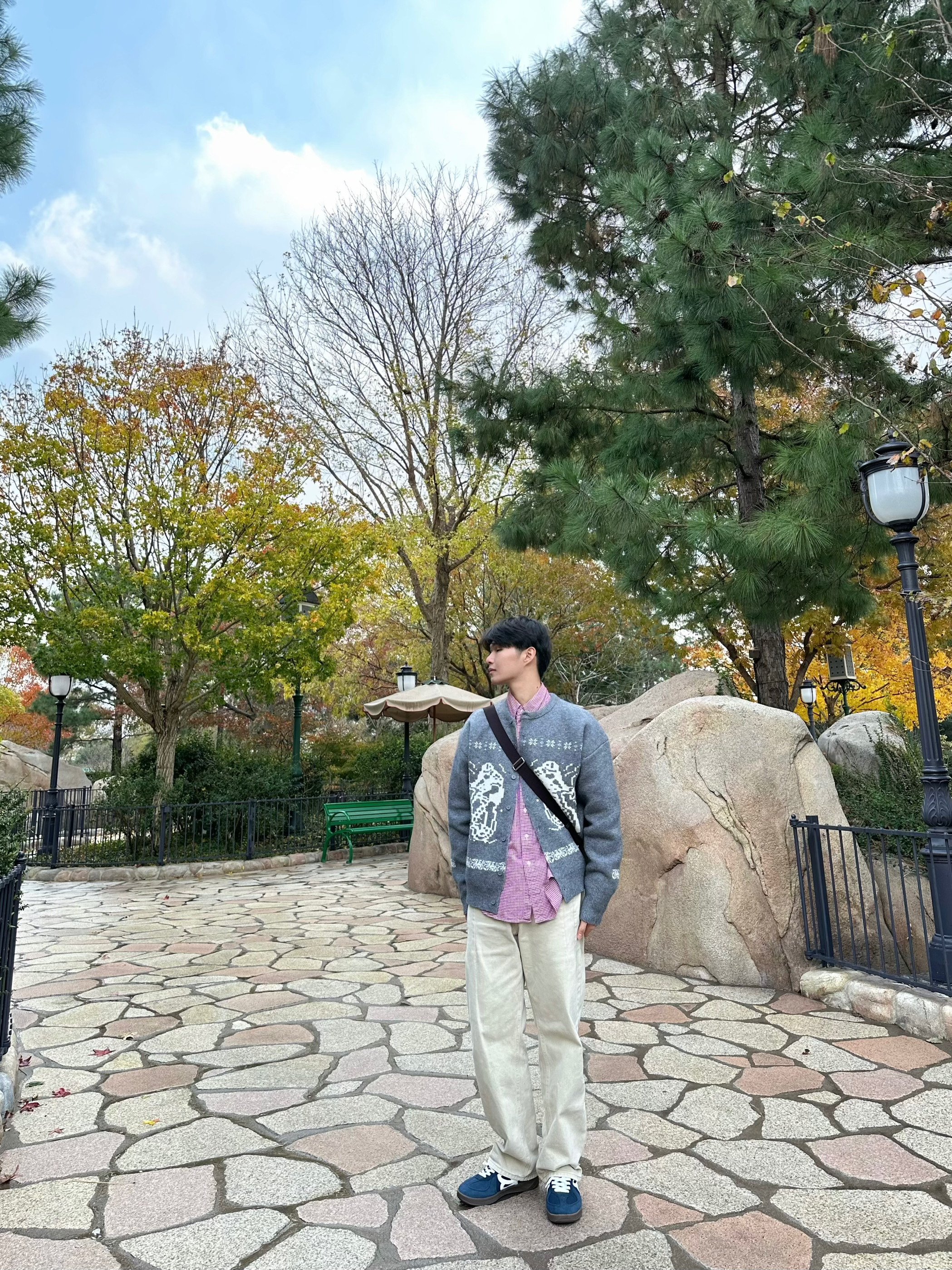 去迪士尼为了出片选择了偏学院的穿搭风格,红色格纹的衬衫搭配灰色针织开衫休闲感拉满,和迪士尼的景很适配,嘎嘎出片。 鞋子穿了HBD WE FLOWER的联名德训,蓝色复古好看,鞋子很舒适,最惊喜是穿这双鞋穿去迪士尼一天暴走三万步加丝毫没压力。一开始准备了创可贴也根本没用上。