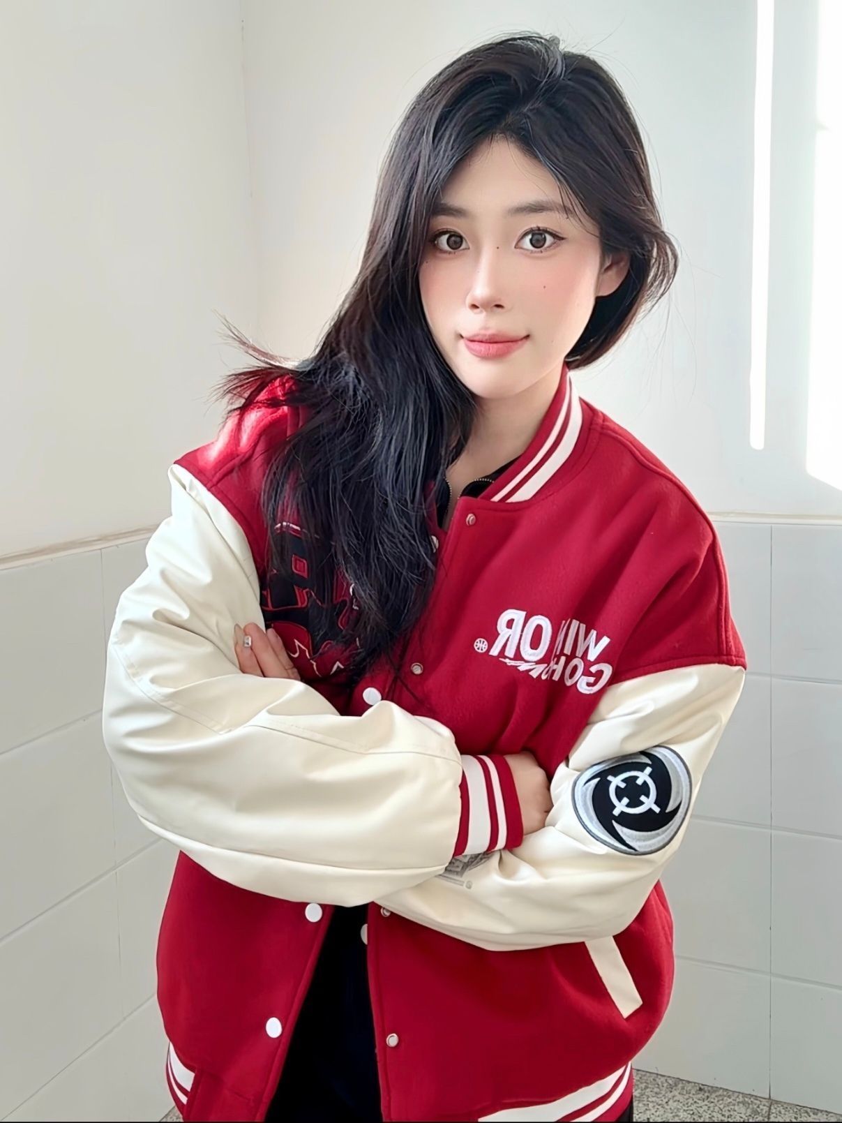 冬天和红色棒球服真的好搭 准者RIGORER加厚保暖棉服夹克情侣真的 好酷 上身很暖和很保暖 颜色是酒红色很适合冬天 版型很好宽松很显瘦 内里加棉设计冬天出门也不会冷 拍照真的好出片~