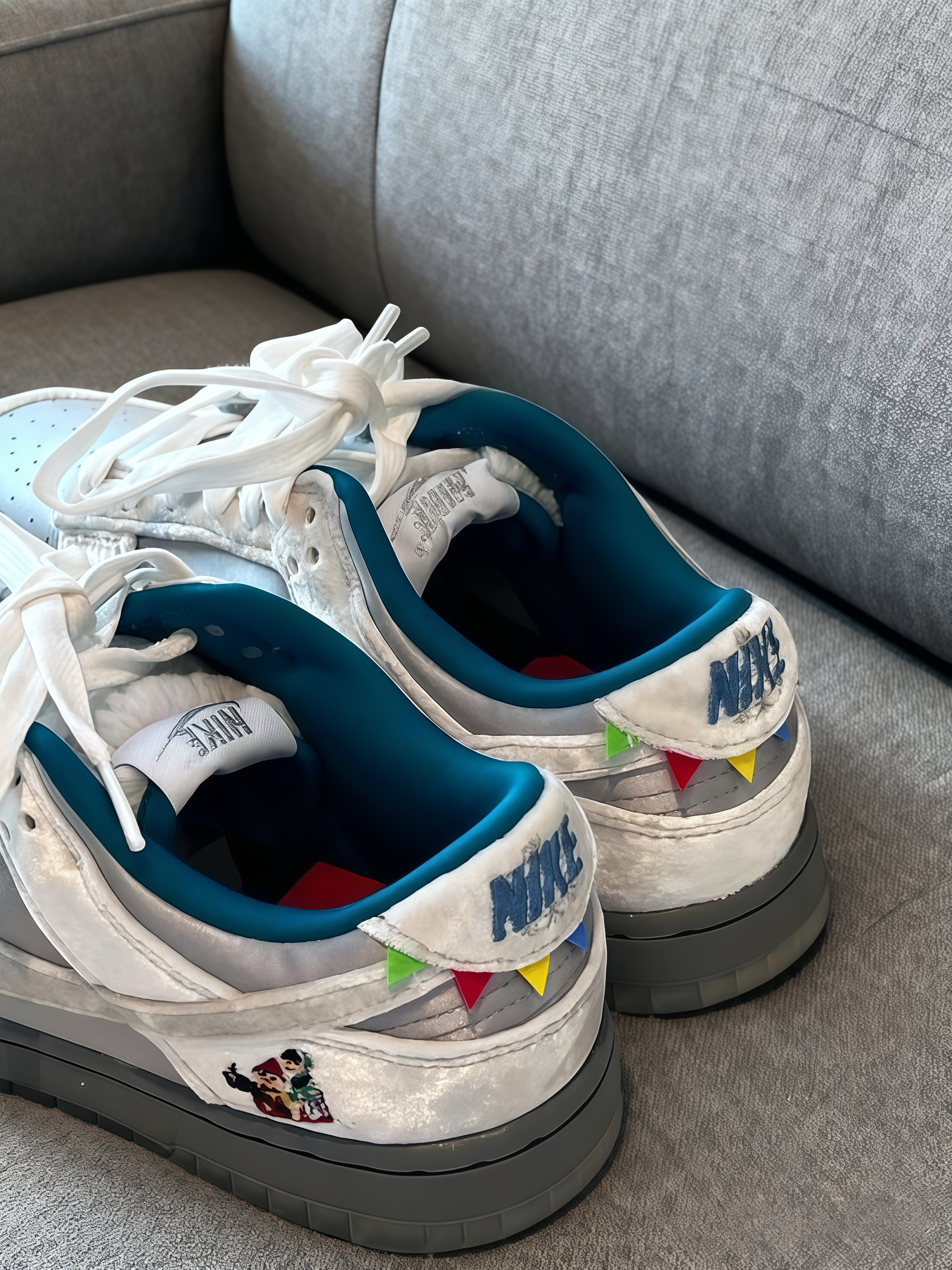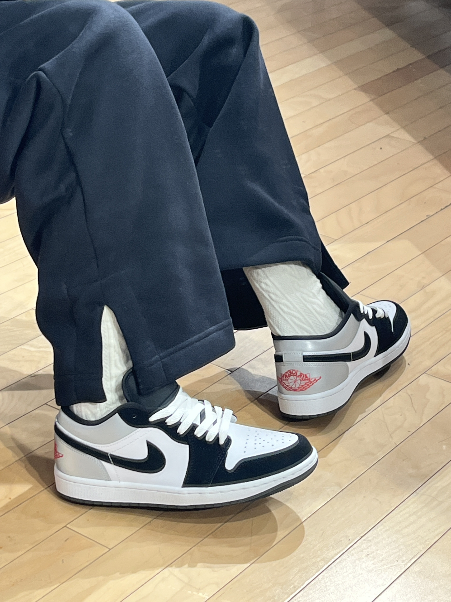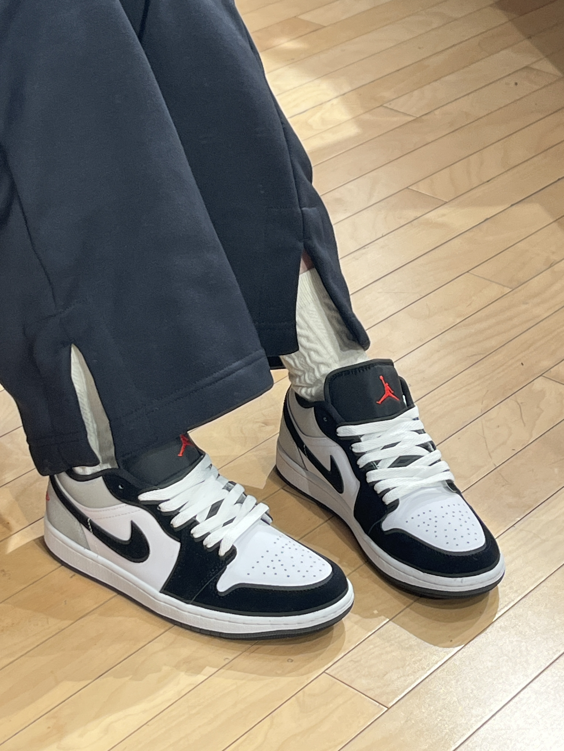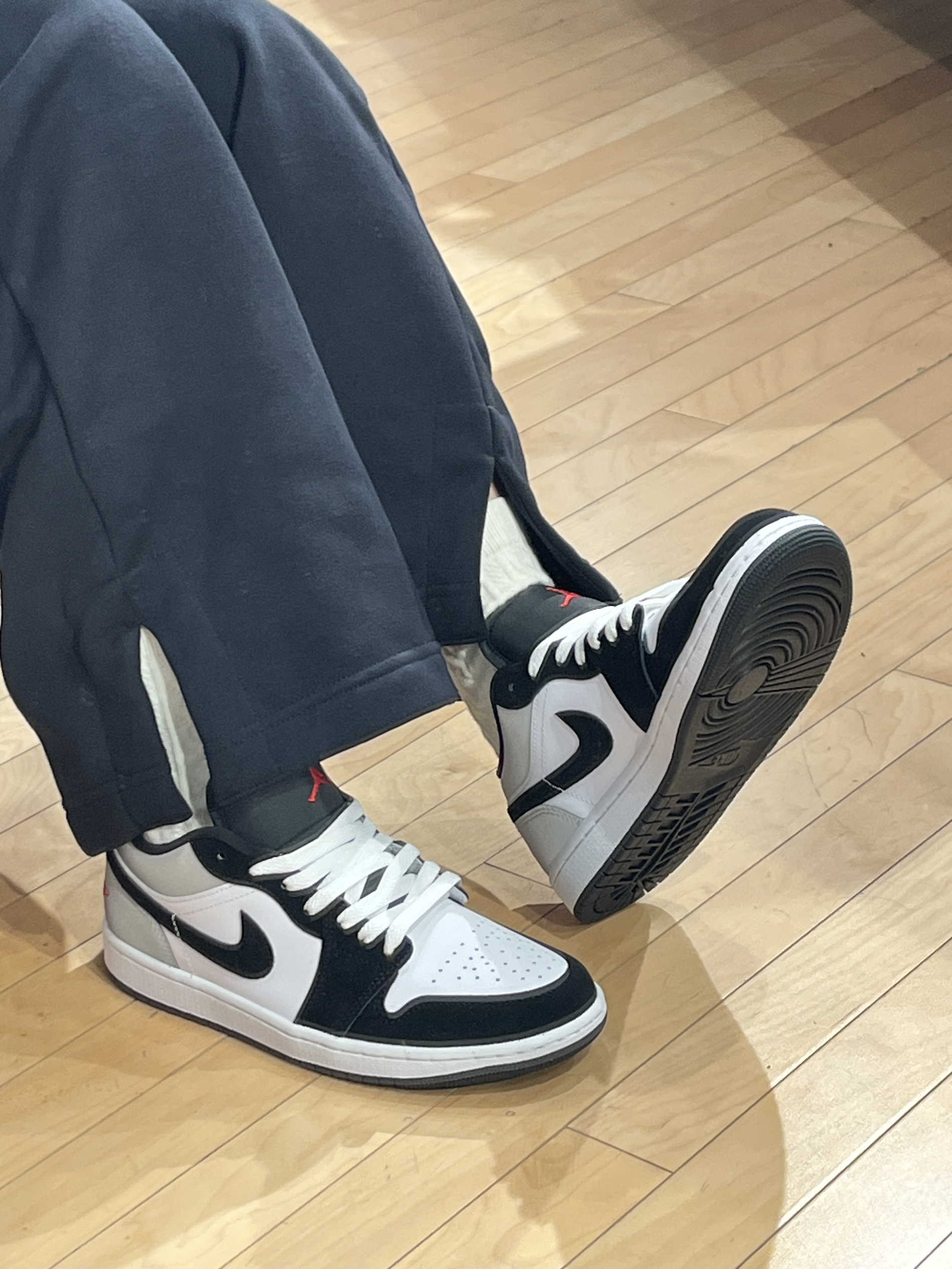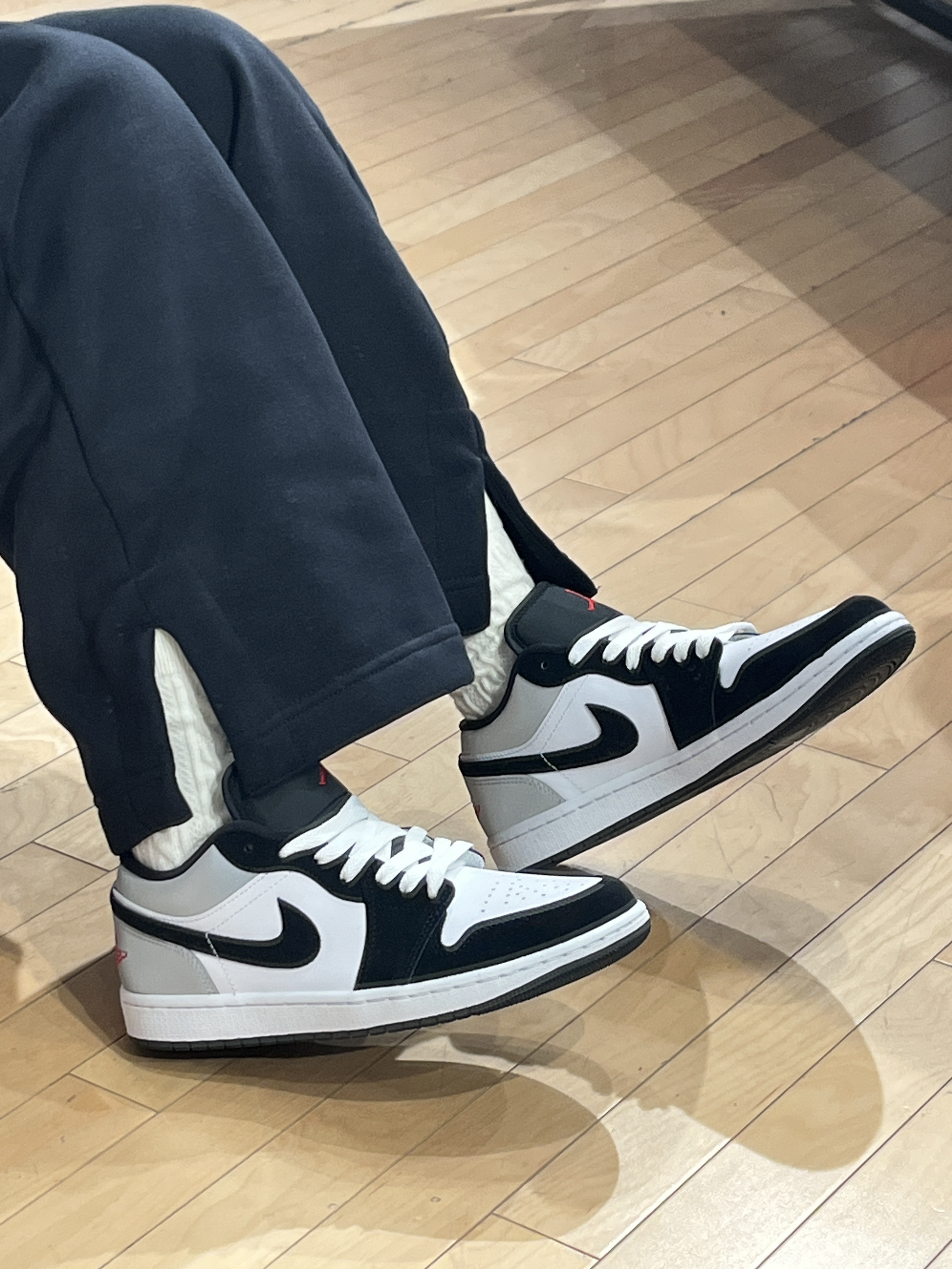 反光黑白 AJ1,细节超酷! 🥰真的超爱这款新款黑白 AJ1。 👟它以白色皮革鞋面搭配黑色麂皮框架,灰色反光后跟的设计酷帅十足。 🎈低帮鞋型,加上红色刺绣 logo 点缀,既吸睛又百搭,还充满细节感。
