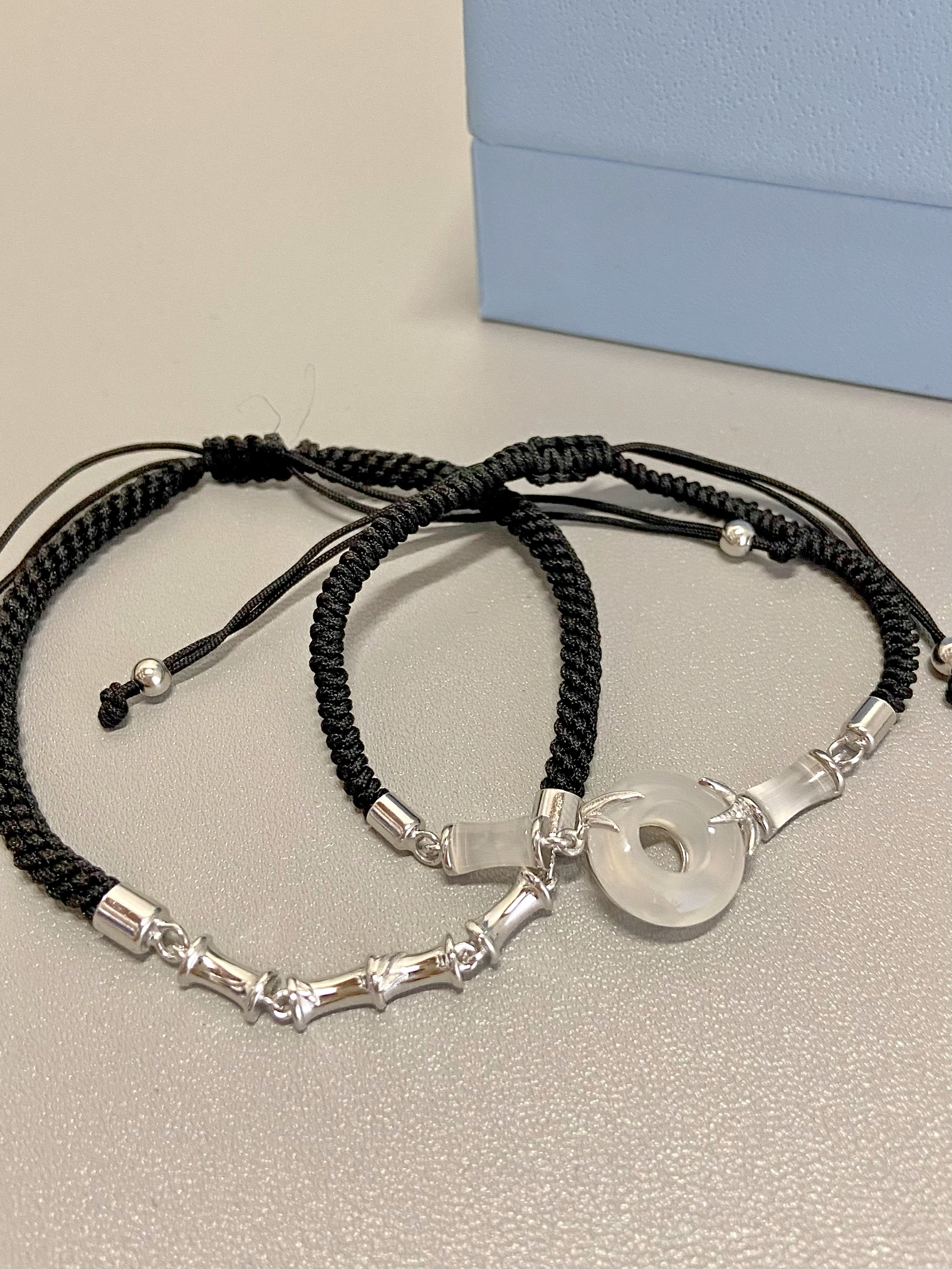 东方美学真的好有魅力 莹润饱满的玉髓搭配黑色的手工编织绳 寓意也是很好呢 平安扣和竹节🎍的设计代表着平安顺遂 节节高升~ 戴上好有清冷氛围感 男生戴也很合适 快给对象安排上吧!