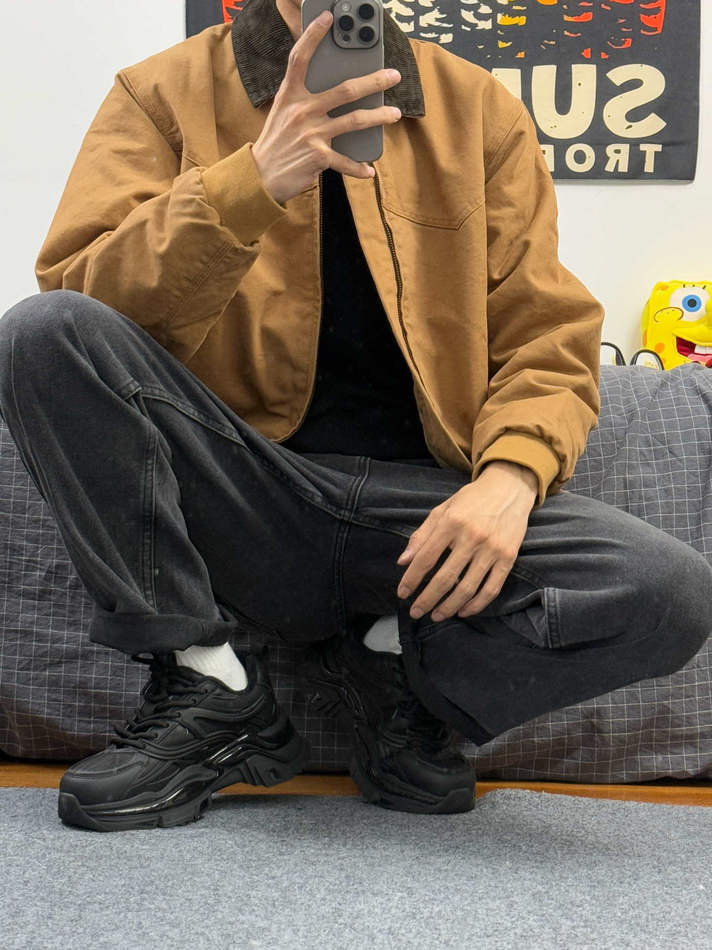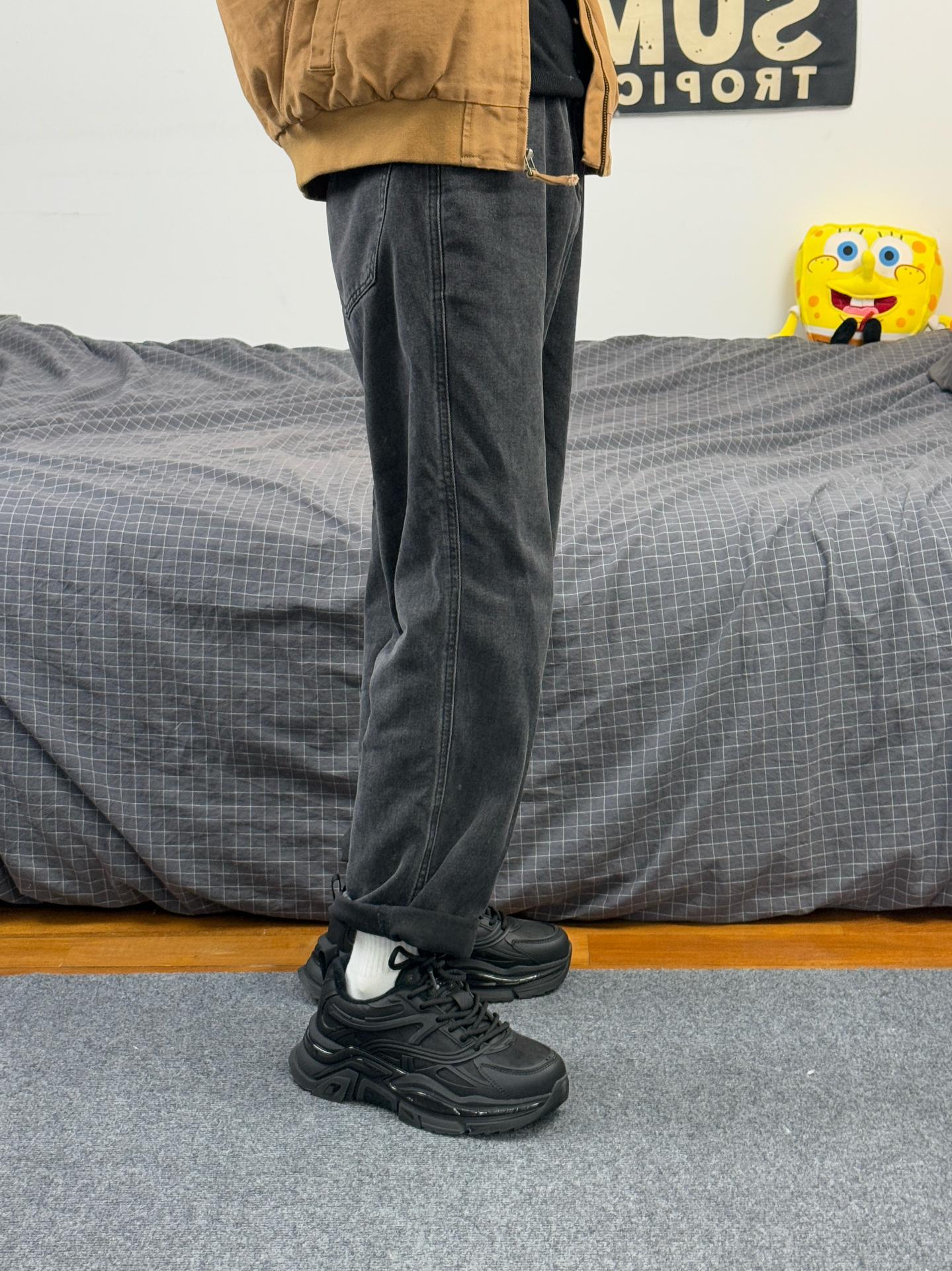 身高174体重48kg 今日上身 工装夹克+黑色牛仔+老爹鞋 👟是 #JEEP SPIRIT 家的黑色老爹鞋 黑武士系列 内带短绒设计 上脚特别保暖 加厚的大底 增高不说,还能防滑耐磨 一整套下来 既保暖还帅气…… 真没想到瘦小个子也适合工装夹克 #秋冬宝藏户外功能鞋 #秋冬增高的宝藏老爹鞋 #冬天穿这双就够了 #男生老爹鞋推荐 #男生冬季穿搭OOTD