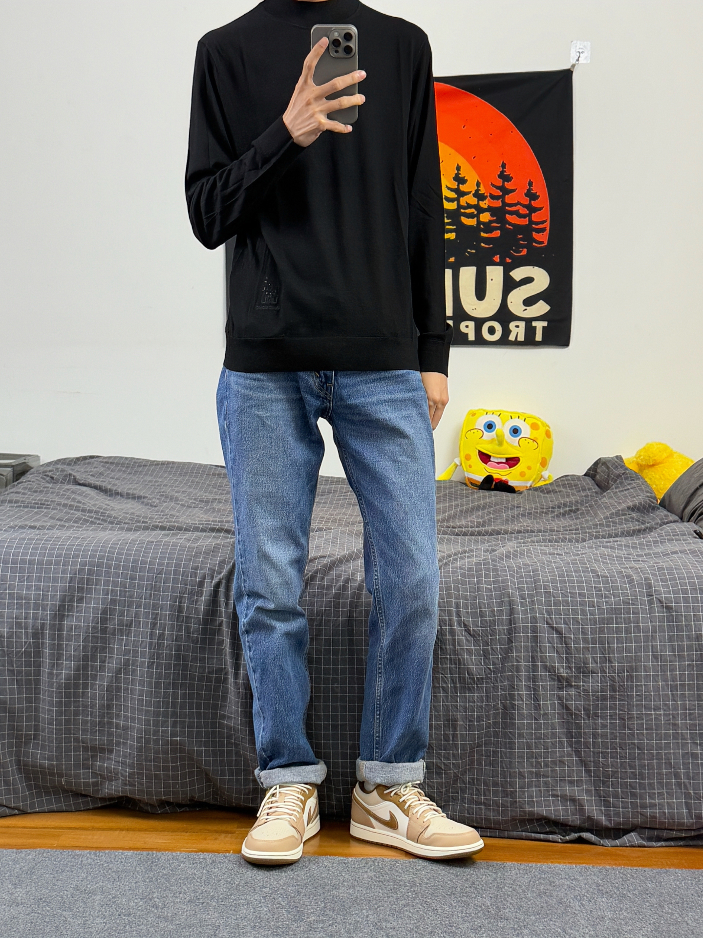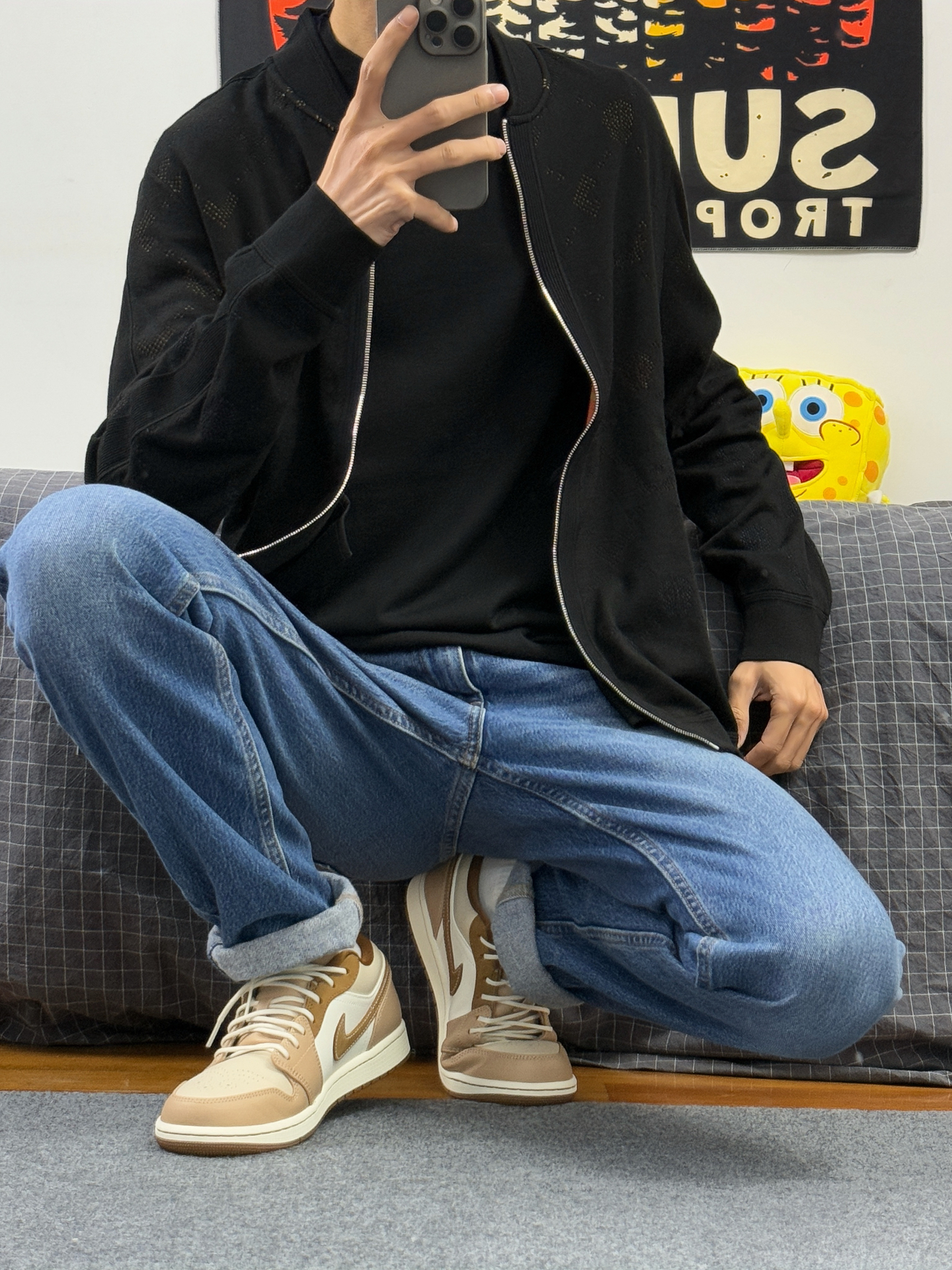身高174体重48kg 今日上身 开衫外套+牛仔裤+aj1褐色 🧥是 #LIU·JO UOMO 家的开衫 纯羊毛立领设计 上身柔软舒适 自带暗色花纹 简约百搭,上身显瘦 上身48码 内搭了黑色羊毛衫 薄款,可以贴身穿 不管内搭或者直接穿都合适 👖是这种直筒牛仔裤 上身特别修饰身材 👟是aj1褐色 掉价的aj果真香 #百搭休闲开衫针织外套 #男生冬季穿搭OOTD #晒晒你的秋冬开衫 #针织开...