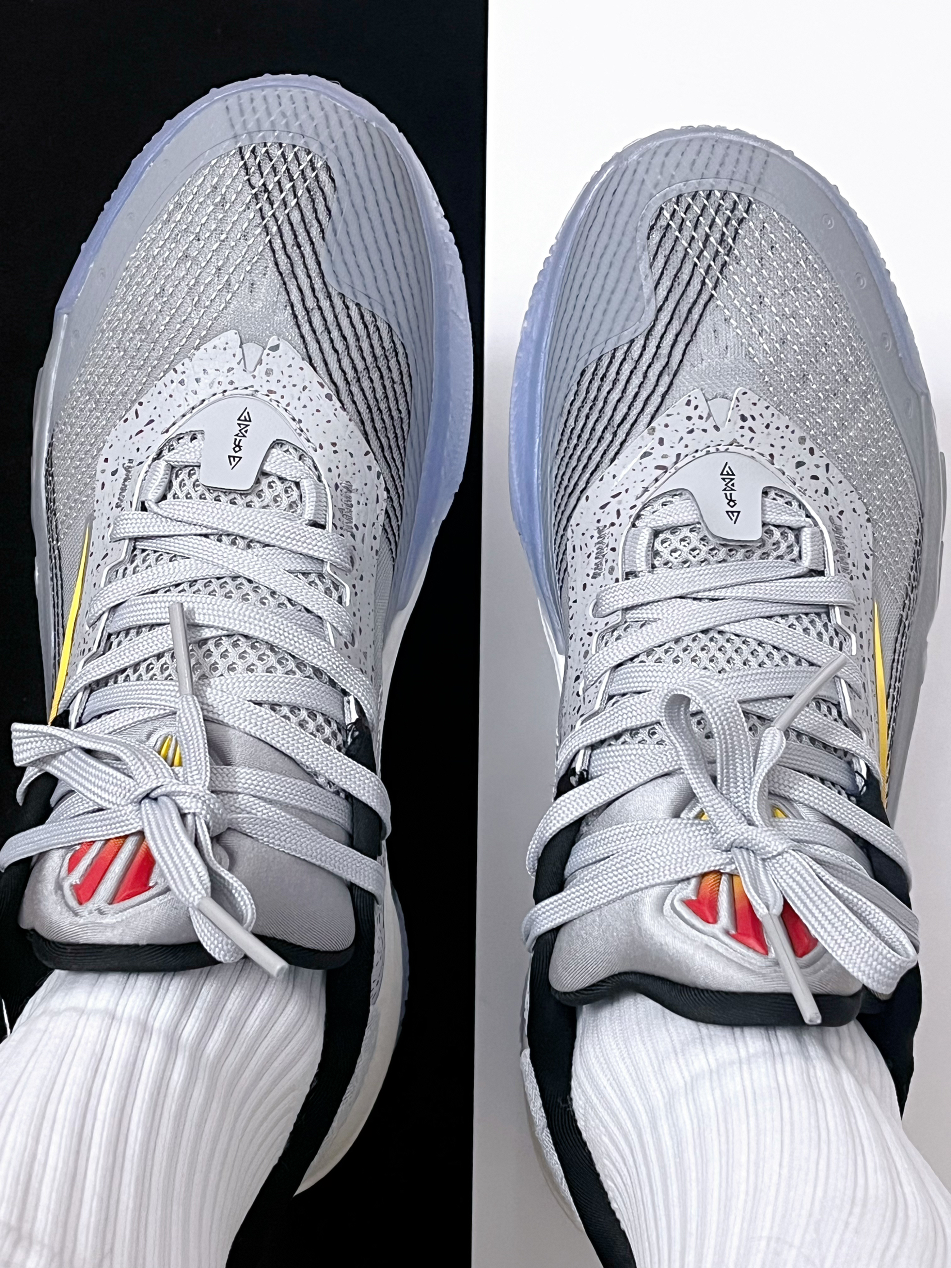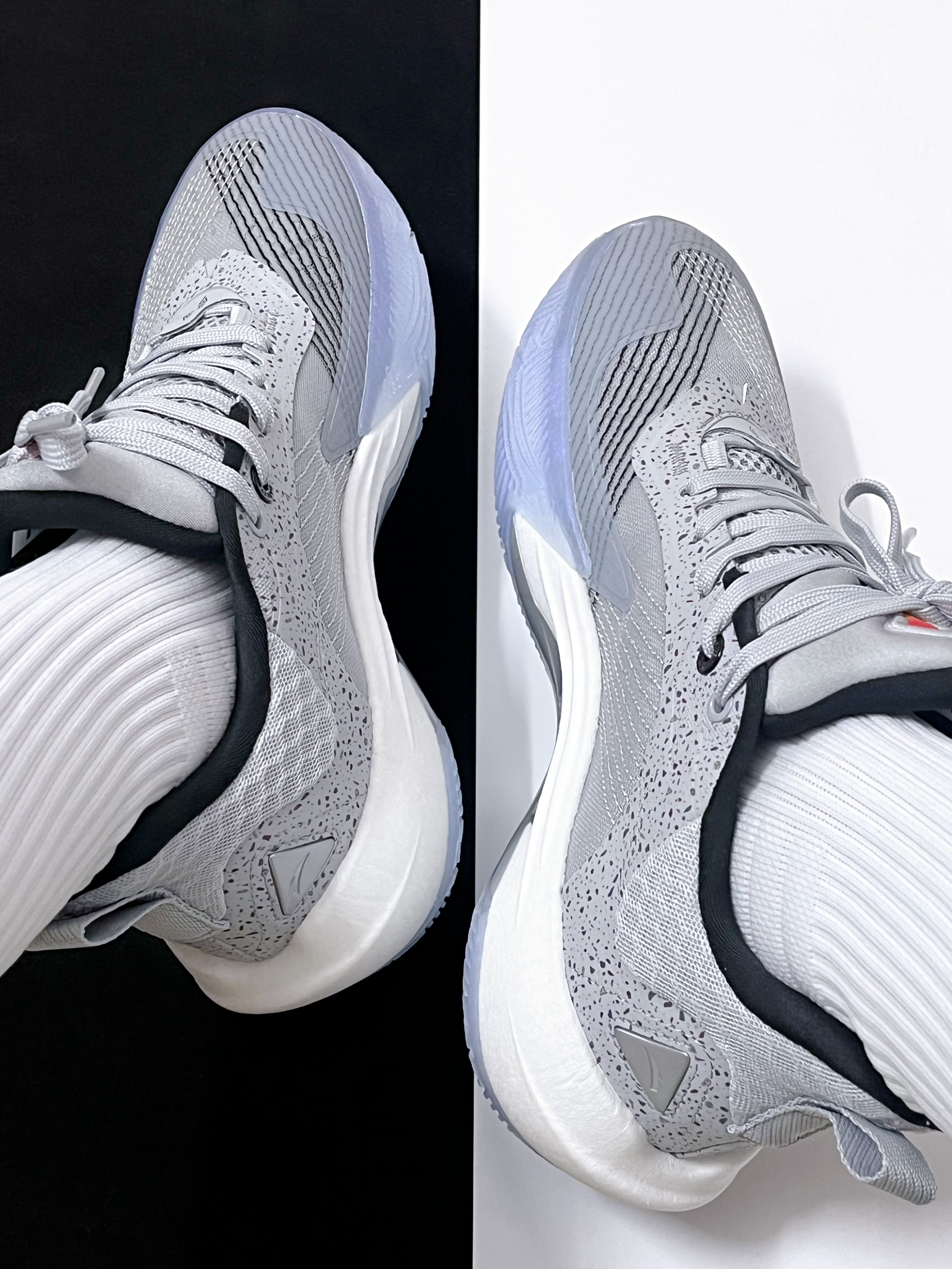 🔸这双安踏欧文先驱一代的外观设计得很流畅,它的这种浅灰色鞋面搭配冰蓝色水晶大底的设计,整体看起来蛮百搭的,很有速度感。 🔸它的中底有全掌氮科技加持,上脚脚感偏韧弹,前掌比较贴地,不会过于激进,有着不错的实战体验感。 🔸其鞋面有着较高的强度,实战过程中的稳定支撑性能蛮到位的,会更适合中小体重的后卫球员穿着,尺码方面我个人建议选大一码。
