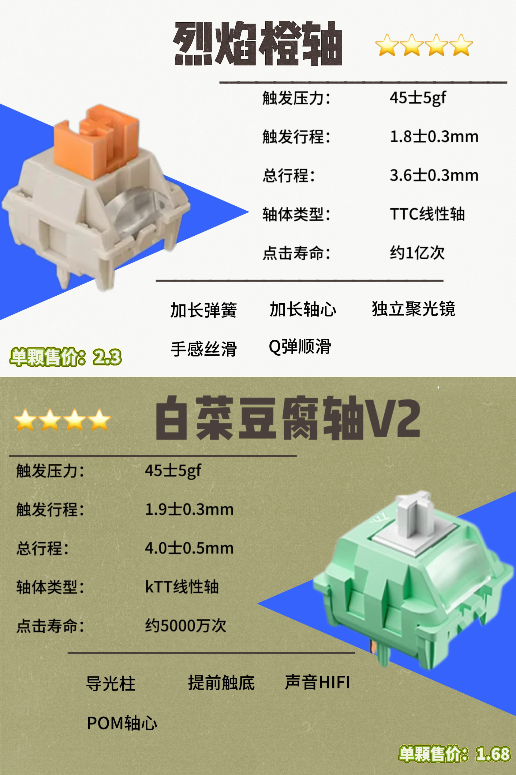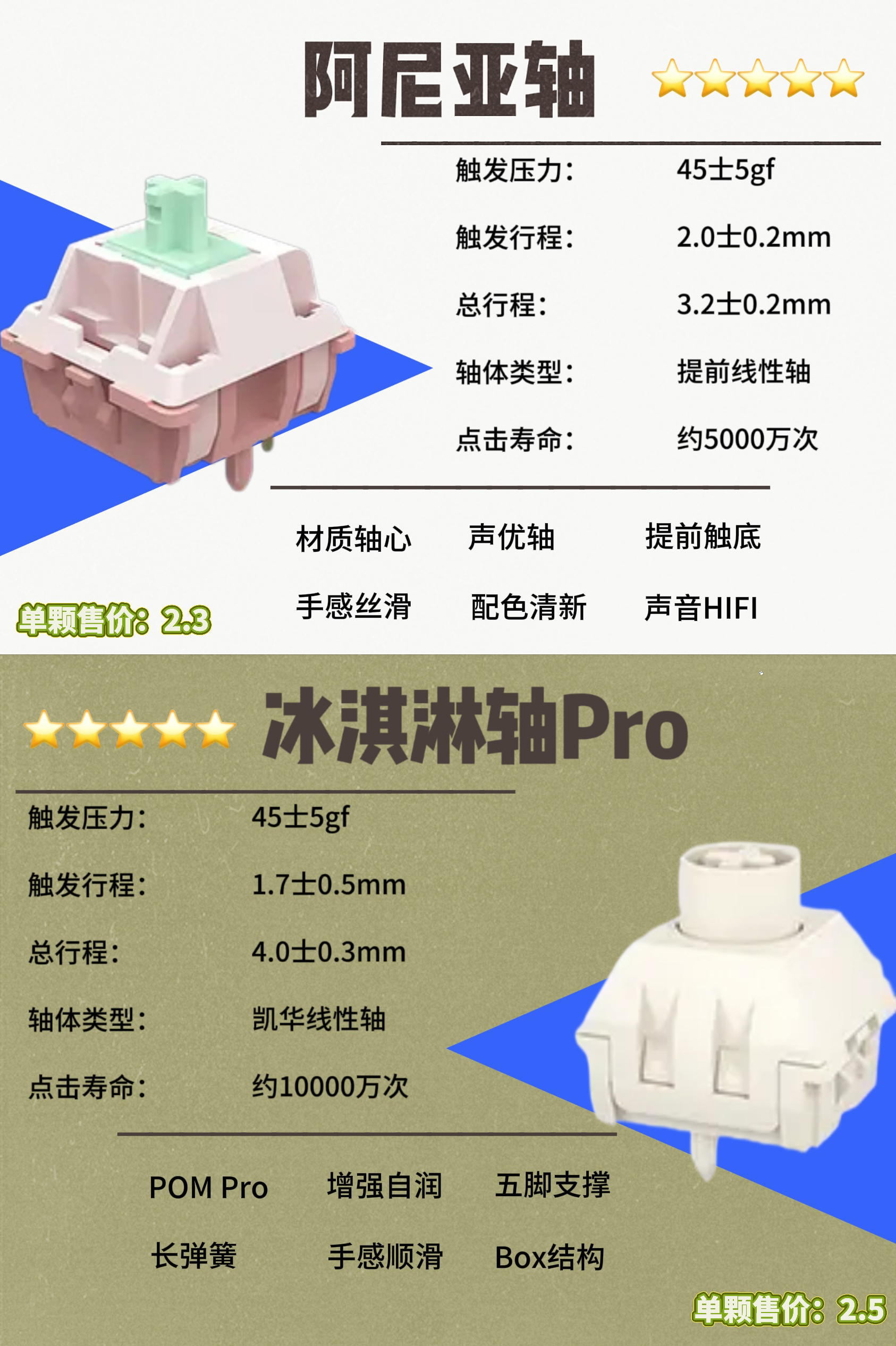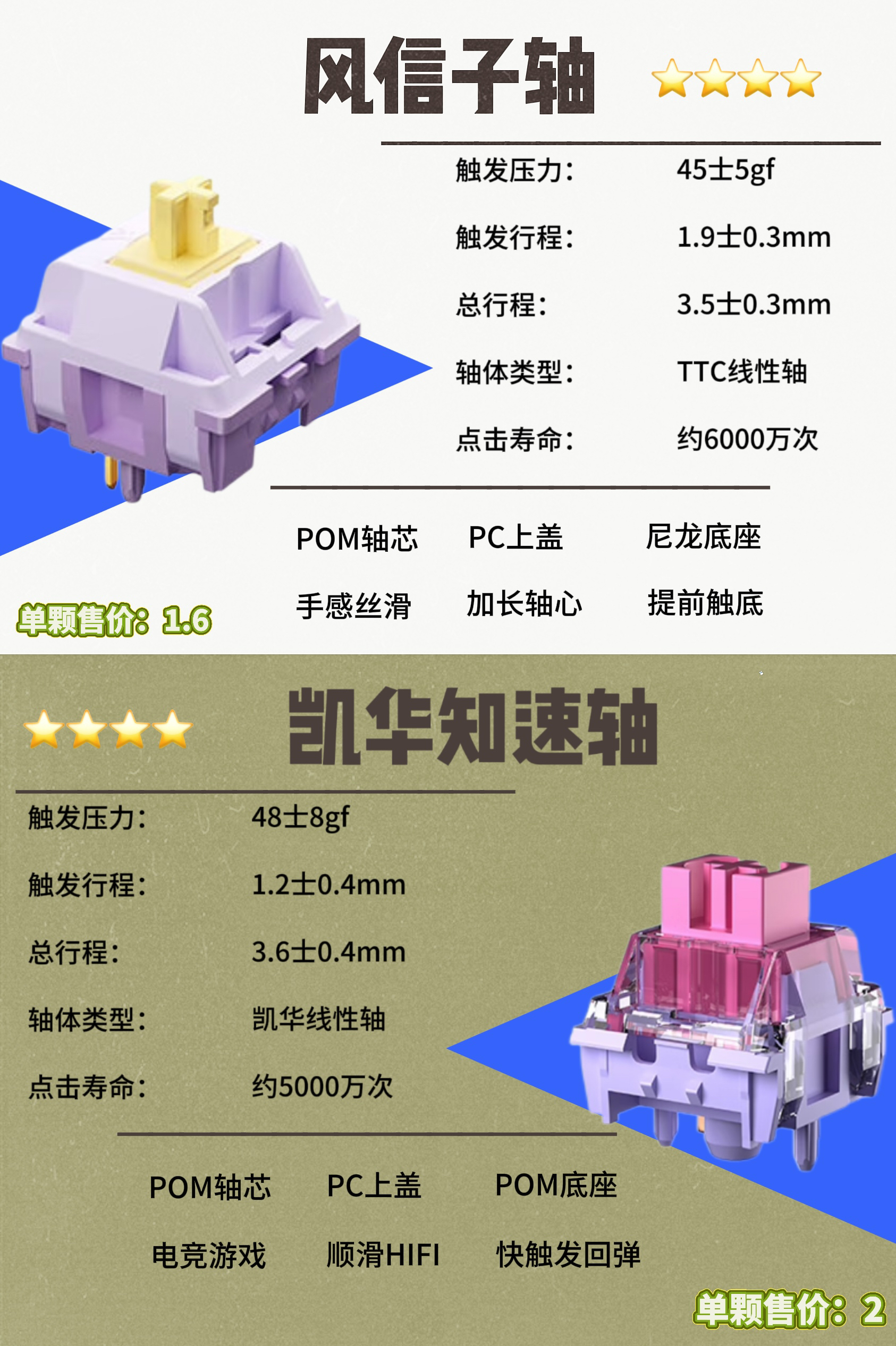 ⌨️给大家分享8款键盘轴体、皆为线性轴体! ⌨️几乎都在2块左右的价格! ⌨️客制化DIY一把专属于自己的键盘!!!!