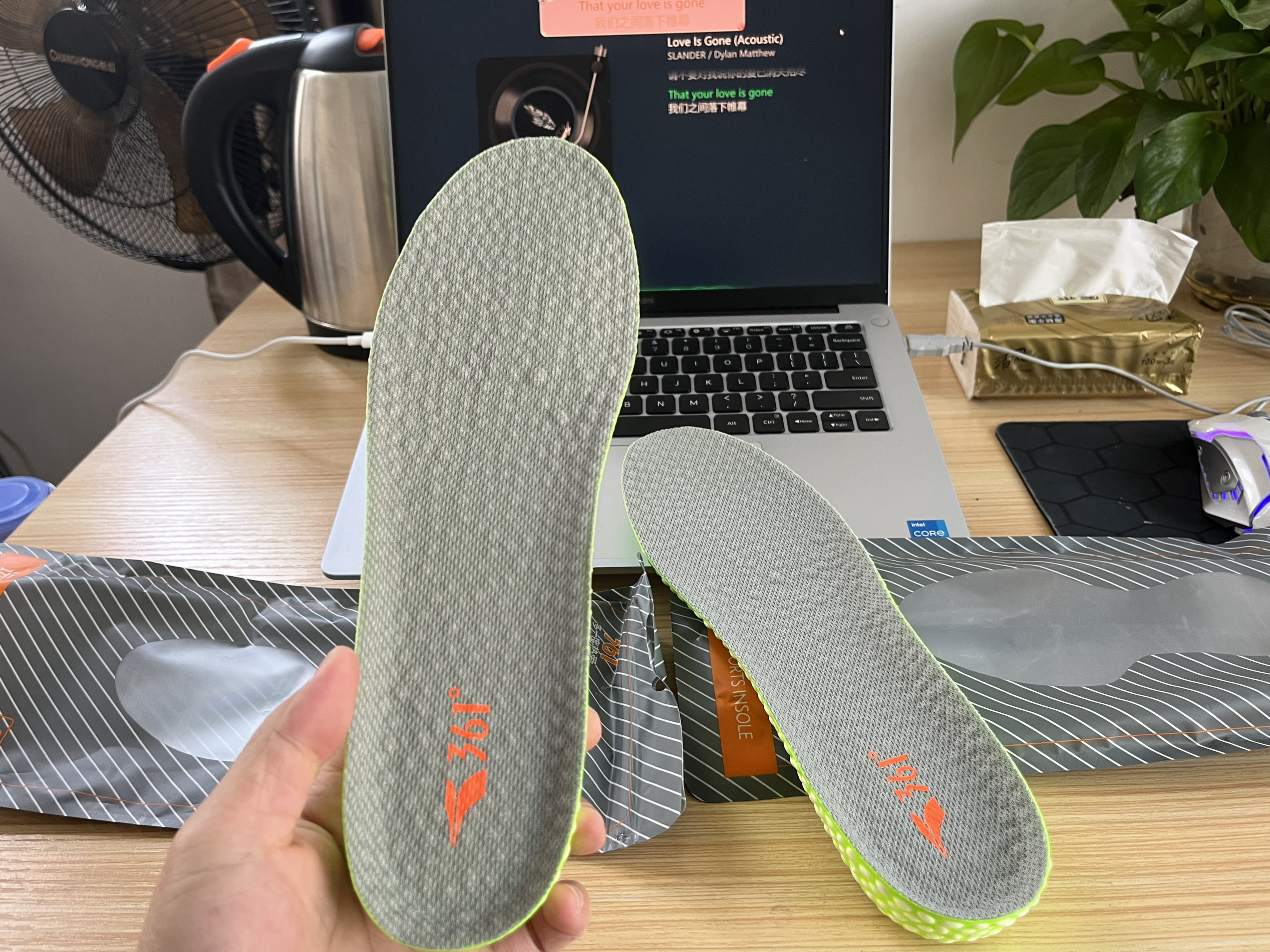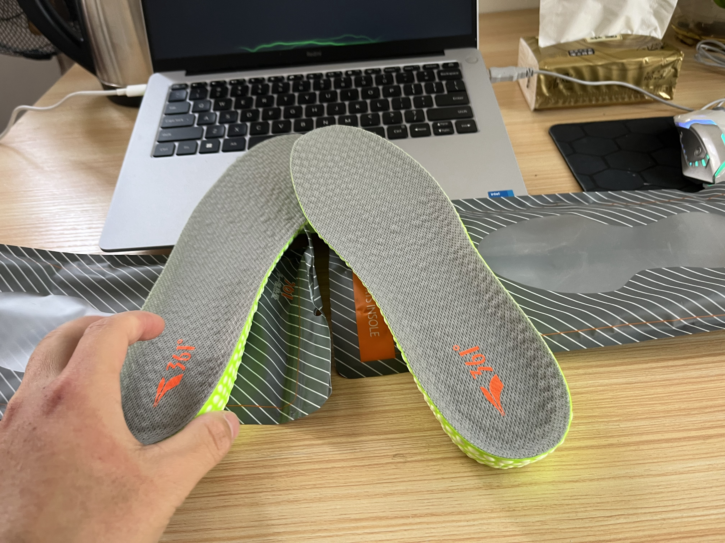 本篇笔记关联了361° boost爆米花运动隐形内增高鞋垫 柔软舒适透气 622335006不累脚 灰面绿底1.5cm等商品,为用户提供真实的使用体验和购买参考。