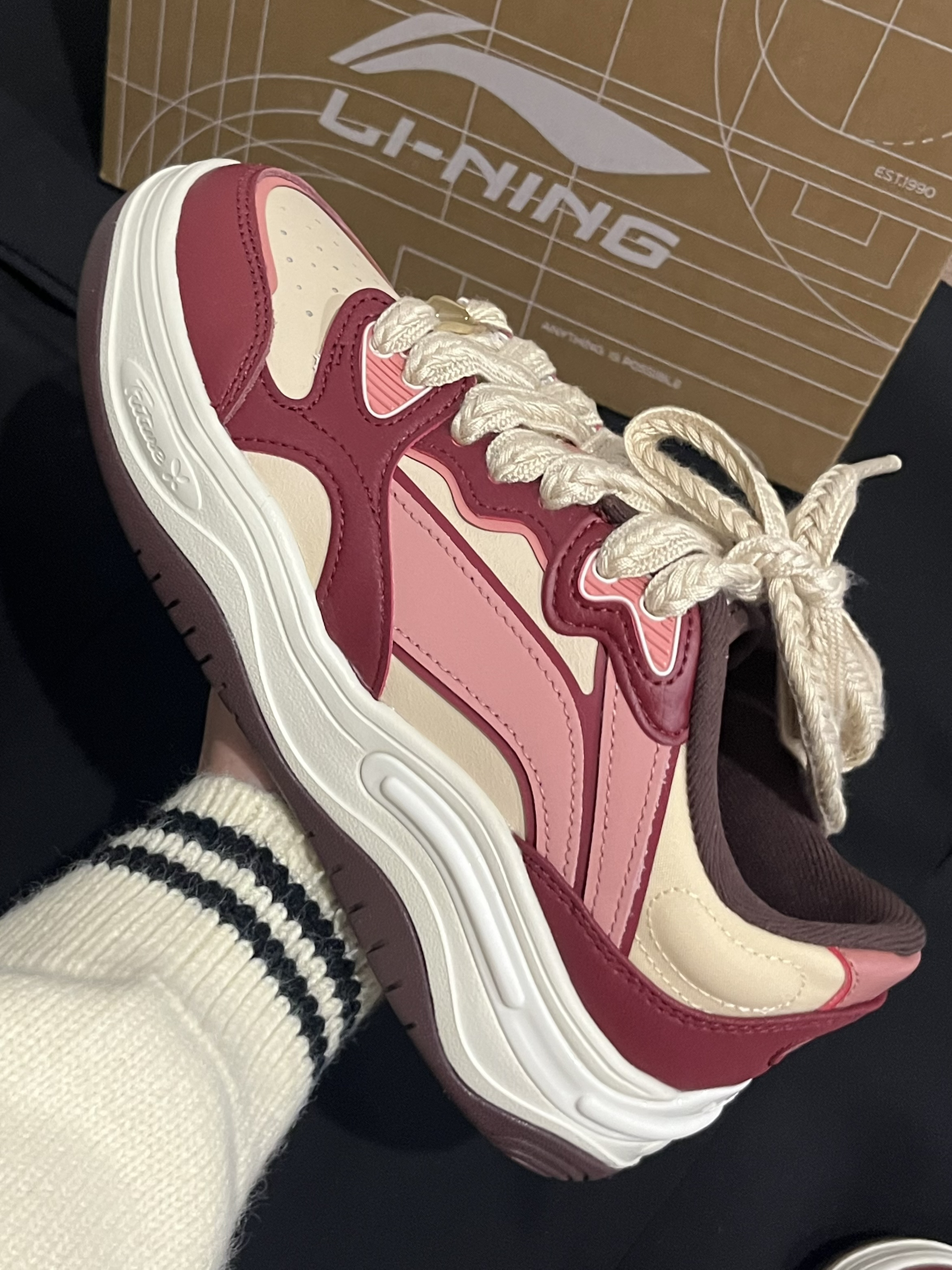 本篇笔记关联了李宁 Future Flow 软弹 增高 复古 舒适减震 支撑 面包鞋 板鞋 女款/米色/酒红色等商品,为用户提供真实的使用体验和购买参考。